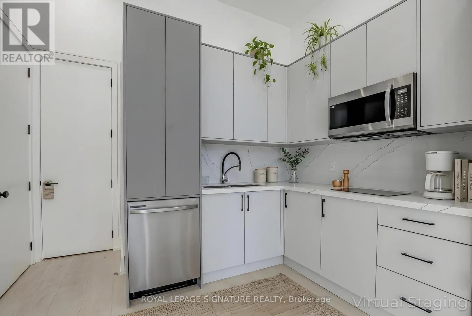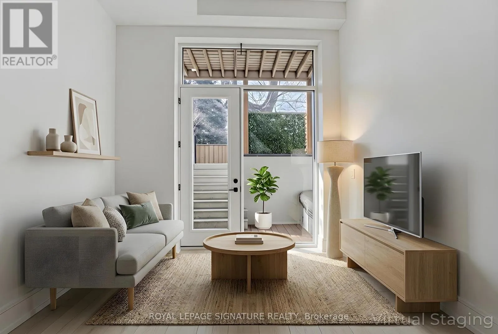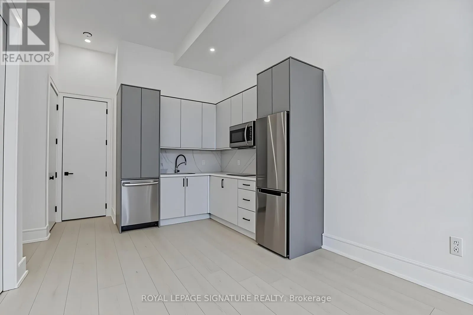 Coxwell and Cosburn Welcome to 5 Holborne Ave! A stunning, brand-new 1-bedroom apartment in the heart of East York. Featuring soaring 11-foot ceilings and floor-to-ceiling windows in the living room, this bright and airy space is a rare find that truly feels like a main-floor suite. Enjoy a private walk-out to your own patio, perfect for morning coffee or evening relaxation.The gorgeous kitchen offers stainless steel appliances, quartz countertops, and ample storage, blending style with everyday functionality. The spacious bedroom boasts large above-grade windows that flood the space with natural light. A beautifully finished 4-piece bathroom features a glass-enclosed shower and modern fixtures. Additional highlights include pot lights throughout and convenient ensuite laundry. Ideally located just steps to TTC, shops, restaurants, trails, and parks, with quick access to the DVP for an easy downtown commute. Don't miss this exceptional opportunity to live in one of East York's most sought-after communities. Utilities are additional $150 per month (flat rate), payable by the tenant and include Gas, Electricity, Water and High Speed Wireless Internet. (id:27476)