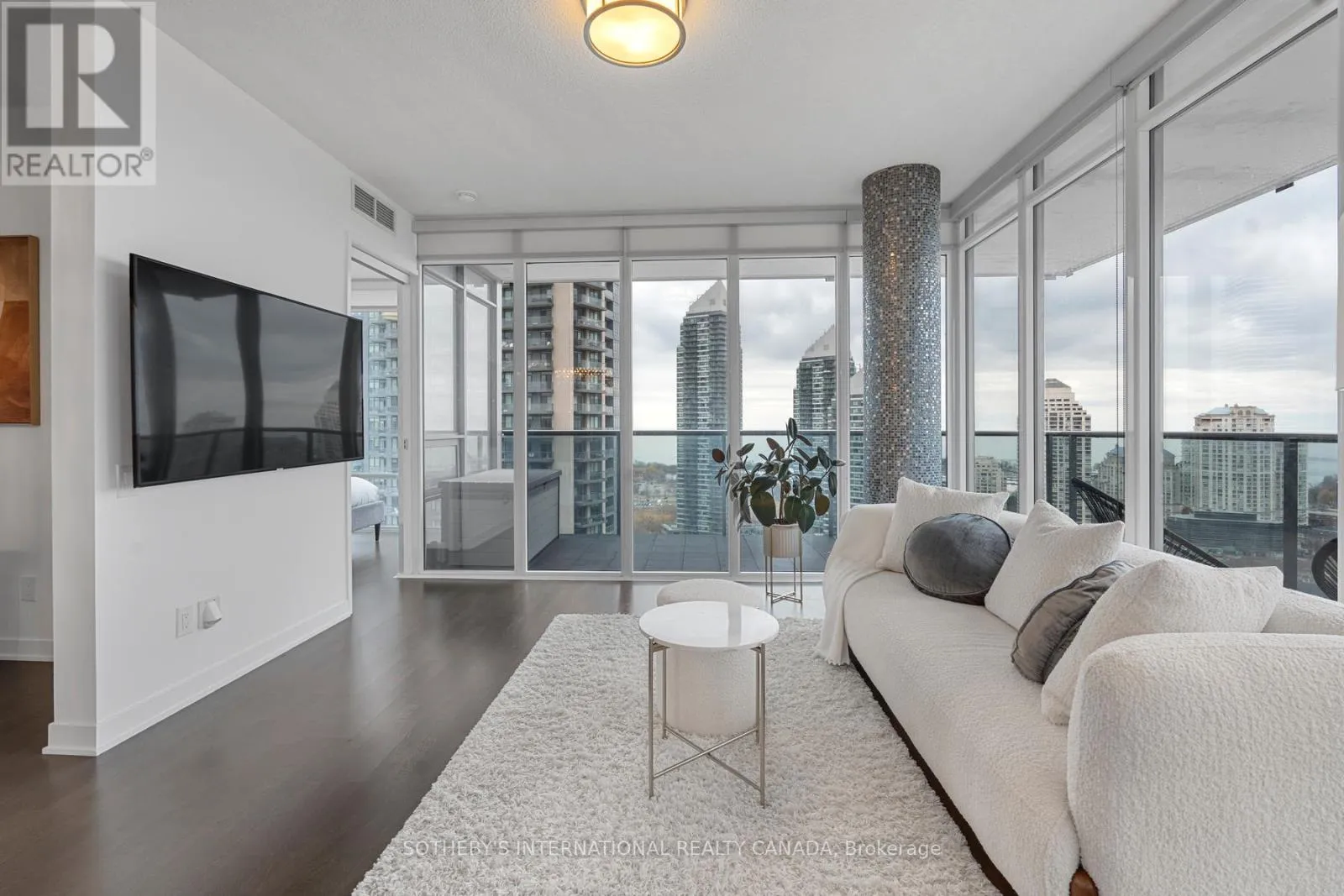 Cross Streets: Lake Shore Blvd.W./Park Lawn Rd. ** Directions: South West. Luxurious living awaits in this stunning 2 bedroom + den corner condo, offering exceptional privacy with no neighboring units overlooking the suite. The primary bedroom retreat delivers both comfort and convenience, featuring a walk-in closet, spa-inspired ensuite, and rain-head shower. Enjoy relaxing and entertaining on the expansive 242 sq. ft. wrap-around balcony, showcasing breathtaking lake views and coveted south-west exposure. The den provides excellent versatility-perfect as a home office. Located in the prestigious South Beach Condos, this home embodies modern elegance and resort-style living. Residents enjoy 5-star amenities, including indoor and outdoor pools, basketball court, two fully equipped gyms, sauna, squash court, and more. Just minutes from downtown Toronto and trendy King West, this prime location offers the perfect balance of urban convenience and tranquil lakeside living. Parking comes with EV charger as well. Don't miss this rare opportunity to own a private corner suite in one of the city's most sought-after waterfront communities! (id:27476)