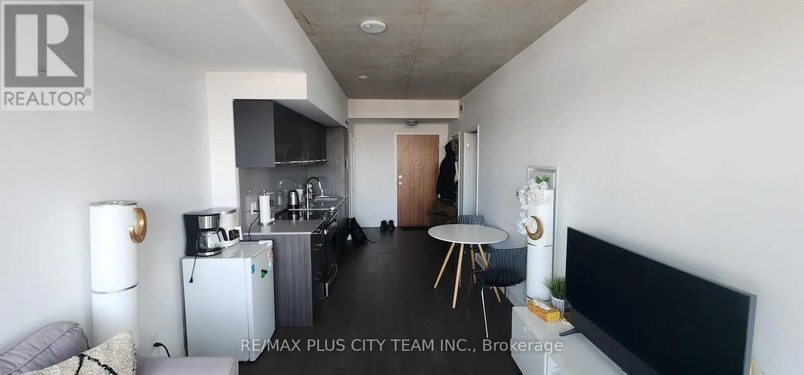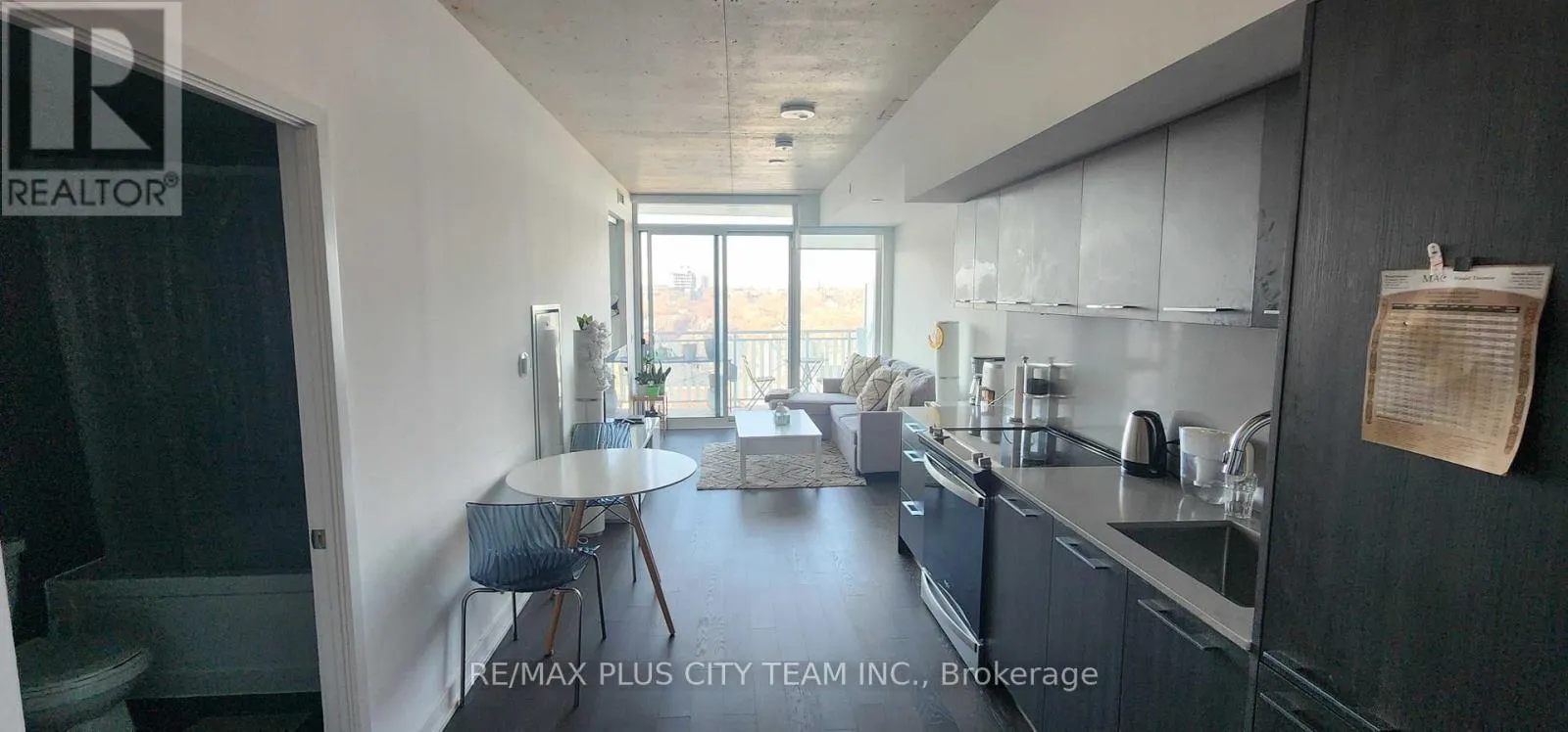 Queen & Broadview Welcome to a 1-bedroom condo in the heart of Riverside/Leslieville. Bright and thoughtfully laid out, this suite features large windows that fill the space with natural light and exposed concrete ceilings that add a modern, industrial touch.The open-concept design makes everyday living easy, whether you're relaxing at home or hosting friends. Clean, contemporary finishes throughout create a fresh and inviting feel.Set in one of the city's most vibrant neighbourhoods, you're just steps to TTC transit, parks, cozy cafés, local restaurants, and great schools. Enjoy everything the east end has to offer, with quick access to downtown whenever you need it.A great opportunity to live in a connected, energetic community while enjoying the comfort of a brand-new space. (id:27476)
