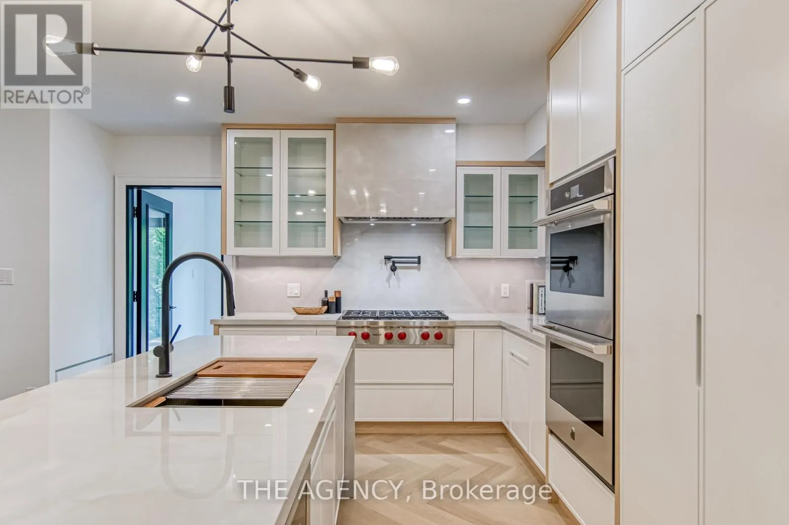 Eglinton Ave & Avenue Rd Welcome to 16 Duncannon Drive! a masterfully reimagined residence in the heart of prestigious Forest Hill. This beautifully redesigned home offers the perfect blend of timeless elegance and modern luxury, situated on a coveted street just steps from top-tier schools, parks, and vibrant local amenities. Every inch of this exceptional property has been thoughtfully renovated with high-end finishes and meticulous attention to detail. The chefs kitchen is a true showpiece, featuring a Wolf gas cooktop, double wall ovens, a fully paneled refrigerator, and sleek custom cabinetry and separate serveryideal for both everyday living and entertaining in style. The spacious living and dining areas are centered around a stunning gas fireplace, creating awarm and inviting atmosphere. Wide-plank hardwood floors, refined millwork, and expansive windows complete the sophisticated design. Upstairs, the luxurious primary suite offers a private retreat, complete with a custom dressing room and spa-inspired ensuite. Additional bedrooms are generously sized, offering comfort and versatility for family or guests. A rare find in Forest Hill, the home includes a private attached garage and a double driveway, offering ample parking in a highly walkable neighborhood. Don't miss this opportunity to own a turnkey home in one of Toronto's most sought-after locations. (id:27476)