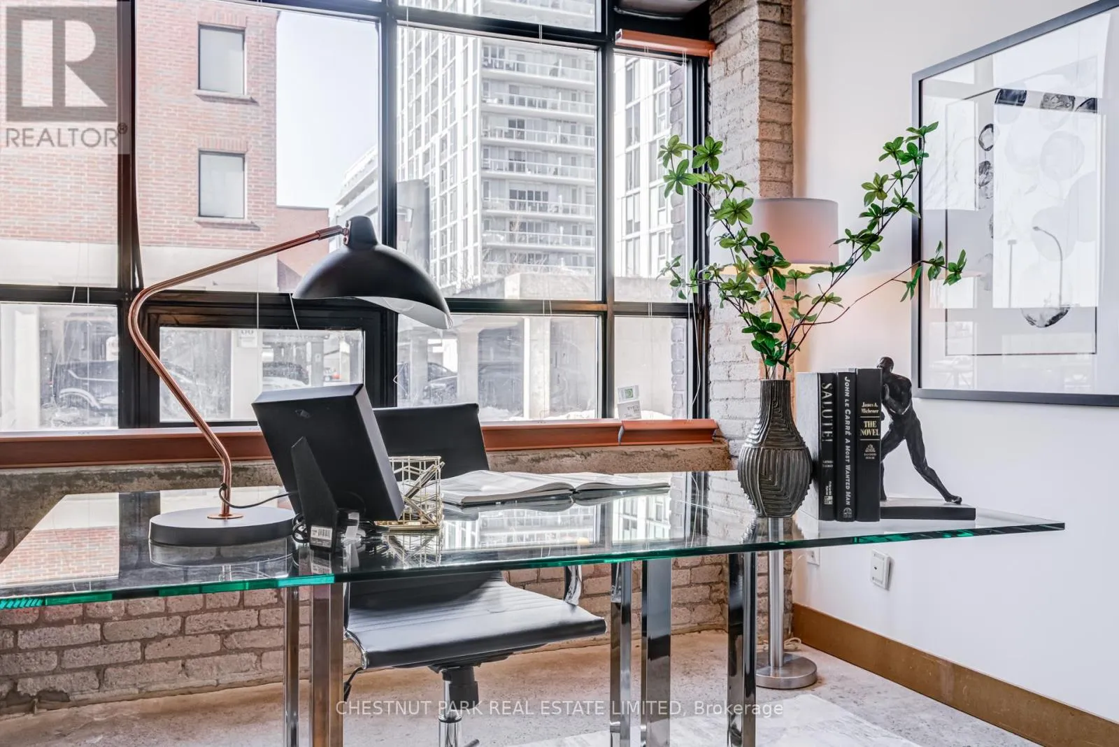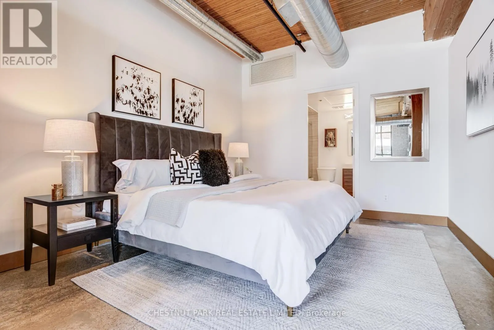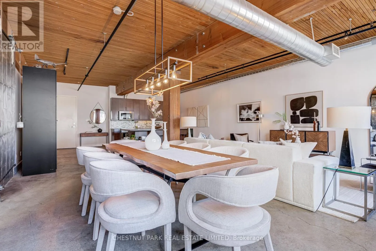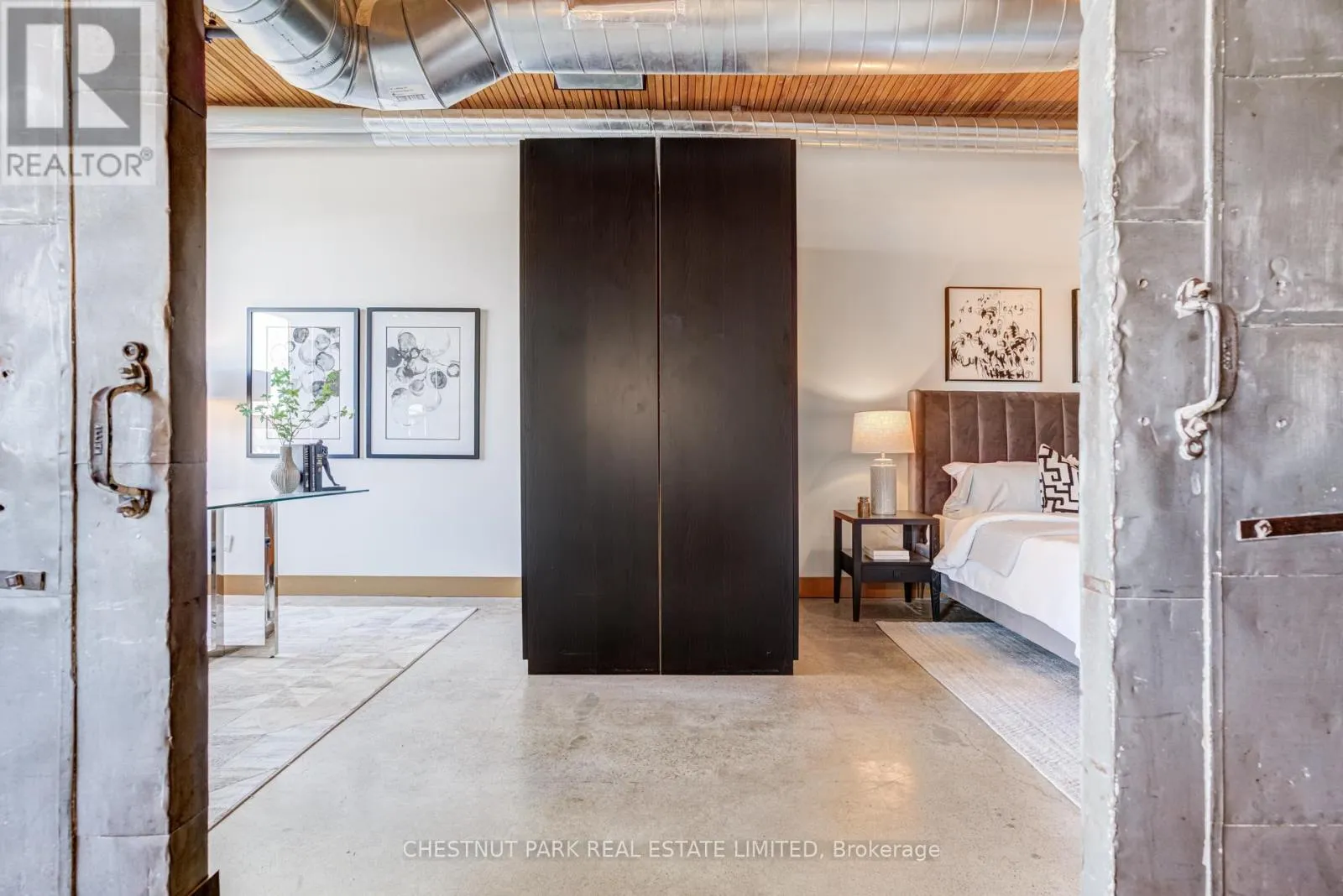 Broadview & Queen St E Spectacular brick-and-beam true hard loft in the Broadview Lofts, one of Toronto's most iconic and in the Broadview sought-after hard loft conversions. Perfectly positioned in the heart of vibrant Riverside, this rare extra-wide 2-bedroom, 2-bathroom residence offers almost 1300 sq. ft. of authentic industrial-chic living designed for those who appreciate character, scale, and style.From the moment you enter, the architectural details make a statement. Soaring 10.5 ft. wood beam ceilings, original Douglas fir posts, exposed brick walls, polished concrete floors, oversized warehouse windows, and original metal doors create a dramatic yet warm aesthetic that simply cannot be replicated in new construction. Every element reflects the building's rich history while offering the comfort and functionality modern urban professionals expect.The expansive open-concept layout provides exceptional flexibility for entertaining, working from home, or creating distinct living and dining zones without sacrificing flow. The extra width of the suite enhances the sense of volume and light, while two full bathrooms offer rare practicality in authentic hard loft living. Whether hosting dinner parties, enjoying quiet evenings in, or designing a space that reflects your personal brand and creativity, this loft adapts effortlessly to your lifestyle.Exclusive underground parking and a large locker add everyday convenience, while the surrounding neighbourhood offers some of the city's best cafés, restaurants, boutiques, fitness of the studios, and transit options just steps from your door.This is more than a condo. It is a statement space in a landmark building, offering scale, statement space authenticity, and an unmatched east-end energy that continues to define Toronto living. (id:27476)