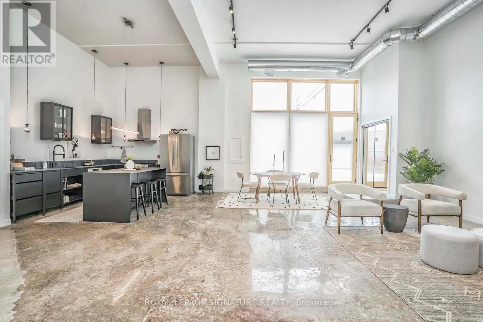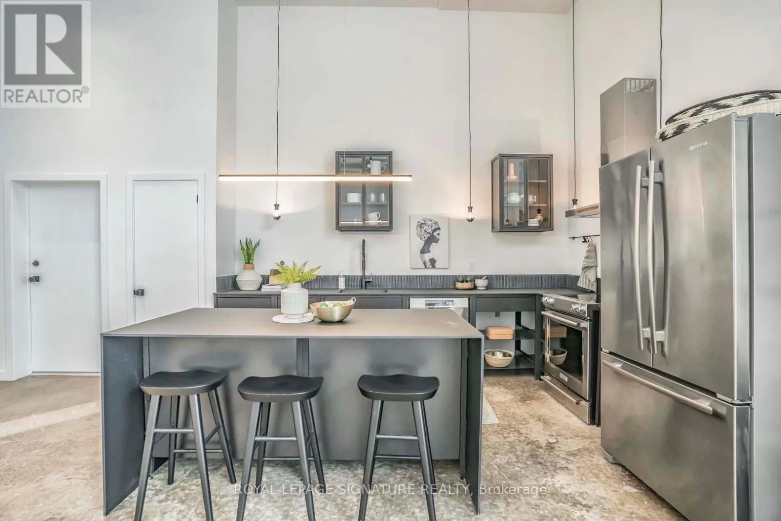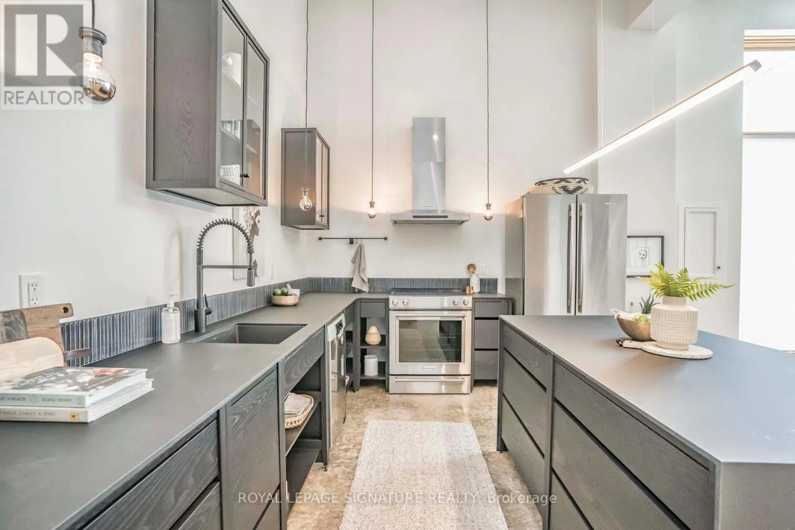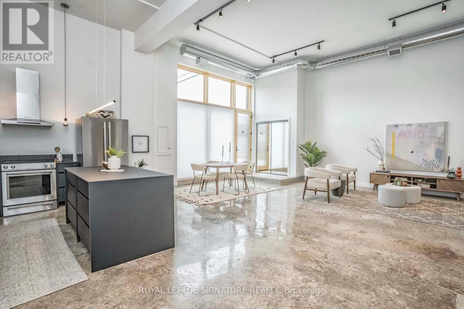 Cross Streets: Ossington Ave/Geary Ave. ** Directions: Entrance to the unit is at the back of the property through; the laneway can be accessed via Delaware Ave N or Somerset Ave, just north of Geary Ave. Experience sophisticated loft living on hip Geary Ave, where contemporary design meets expansive industrial architecture. This remarkable 2,000+ sq ft residence offers 3 bedrooms and 3 bathrooms within a dramatic open-concept layout defined by soaring 14-foot ceilings, polished concrete floors, and exposed ductwork- hallmarks of true urban loft design. Floor-to-ceiling windows flood the interior with natural light, enhancing the scale and airiness of the space while creating a seamless connection between living, dining, and kitchen areas. The sleek, modern kitchen is thoughtfully designed with high-end stainless steel appliances, Fenix countertops, and a striking waterfall island, providing both visual impact and functional workspace ideal for everyday living and entertaining.The primary suite offers a spacious retreat featuring a walk-in closet and a spa-inspired 4-piece ensuite, complete with a deep soaking tub and separate glass-enclosed shower. Two additional bedrooms provide flexibility for guests, home offices, or creative spaces, each supported by well-appointed bathrooms with contemporary finishes. Additional conveniences include a 30 sq ft storage locker and first-come-first-serve bicycle racks, adding practical functionality to this exceptional property. Situated in one of the city's most dynamic and creative neighbourhoods, this residence combines industrial character, modern finishes, and generous proportions to deliver a truly distinctive urban space. (id:27476)