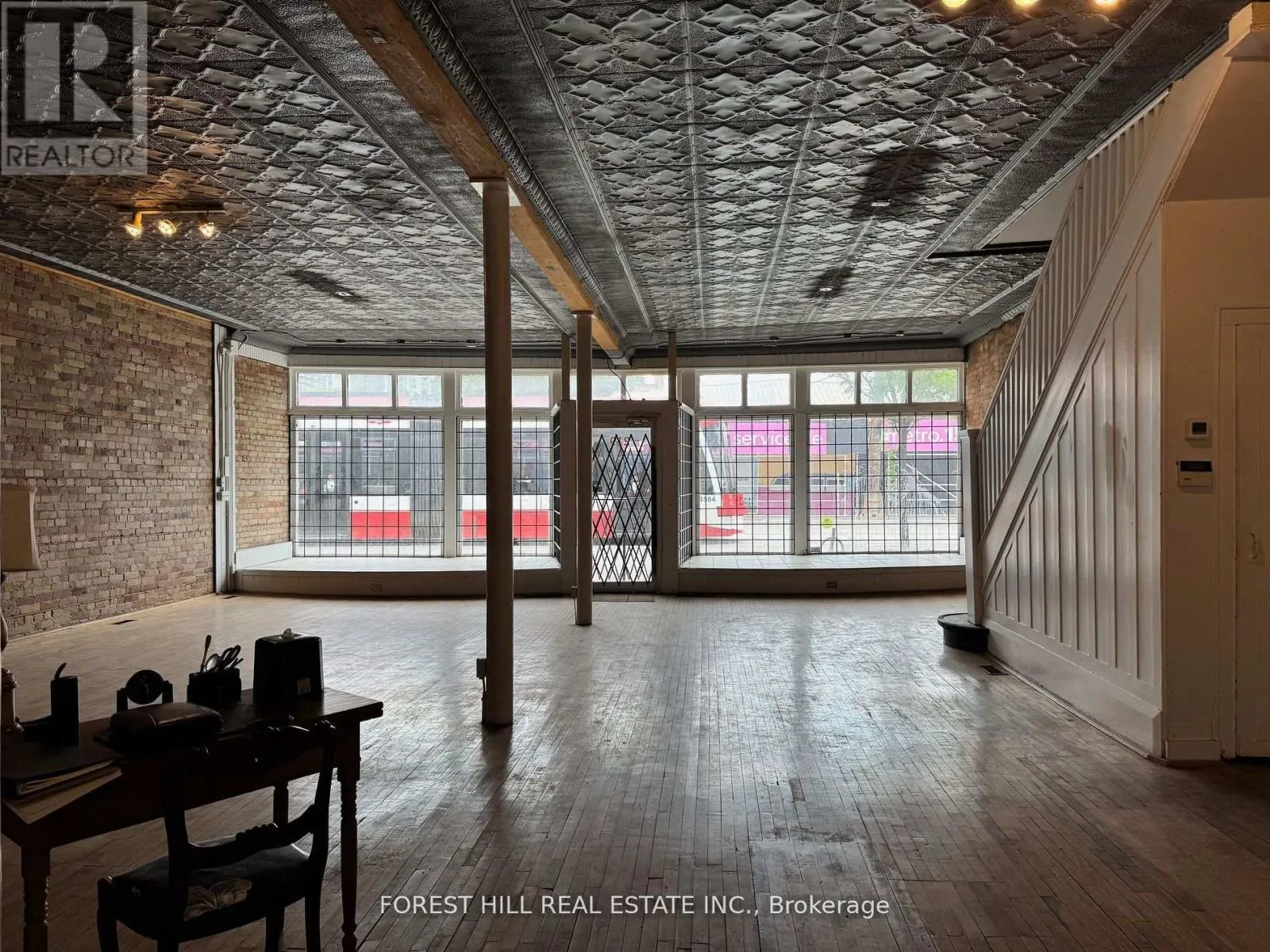 Jarvis/Queen Bright & Spacious 1500 Sf Space With 2 Large Windows Fronting On Queen St & Moss Park. Soaring Ceilings, Hardwood Floors, Exposed Brick, Original Tin Ceiling, Large Bathroom With Shower. Suitable For Retail, Art Gallery, Ofc Use. High Pedestrian And Automotive Traffic. Proximity To Yonge And Queen, Eaton Centre, New Condo Developments, St. Lawrence Market, TTC Queen Streetcar, & Street Parking. Monthly rent is a base rent of $3300 + HST, plus annual taxes ($1299.59/month for commercial taxes for 2025), plus maintenance of furnace and air conditioning units, plus monthly utilities (water, gas, hydro, commercial waste removal). Tenant also responsible for their own contents & liability insurance. Parking for up to 6 spots available at $250/month for each spot. (id:27476)