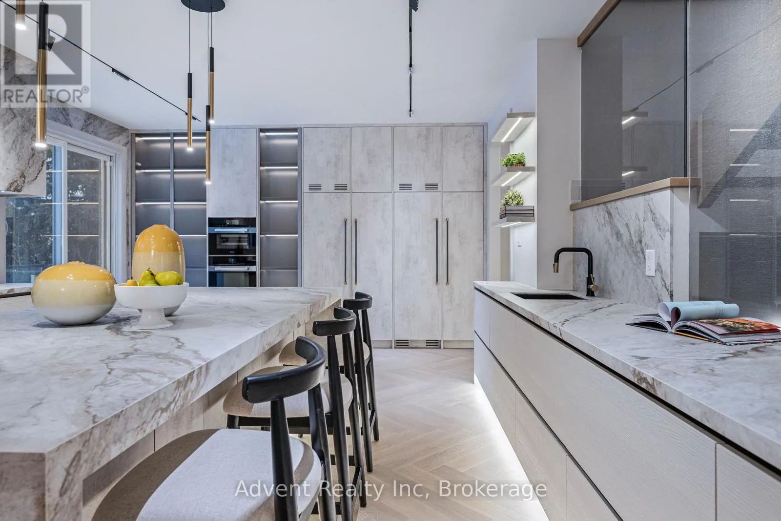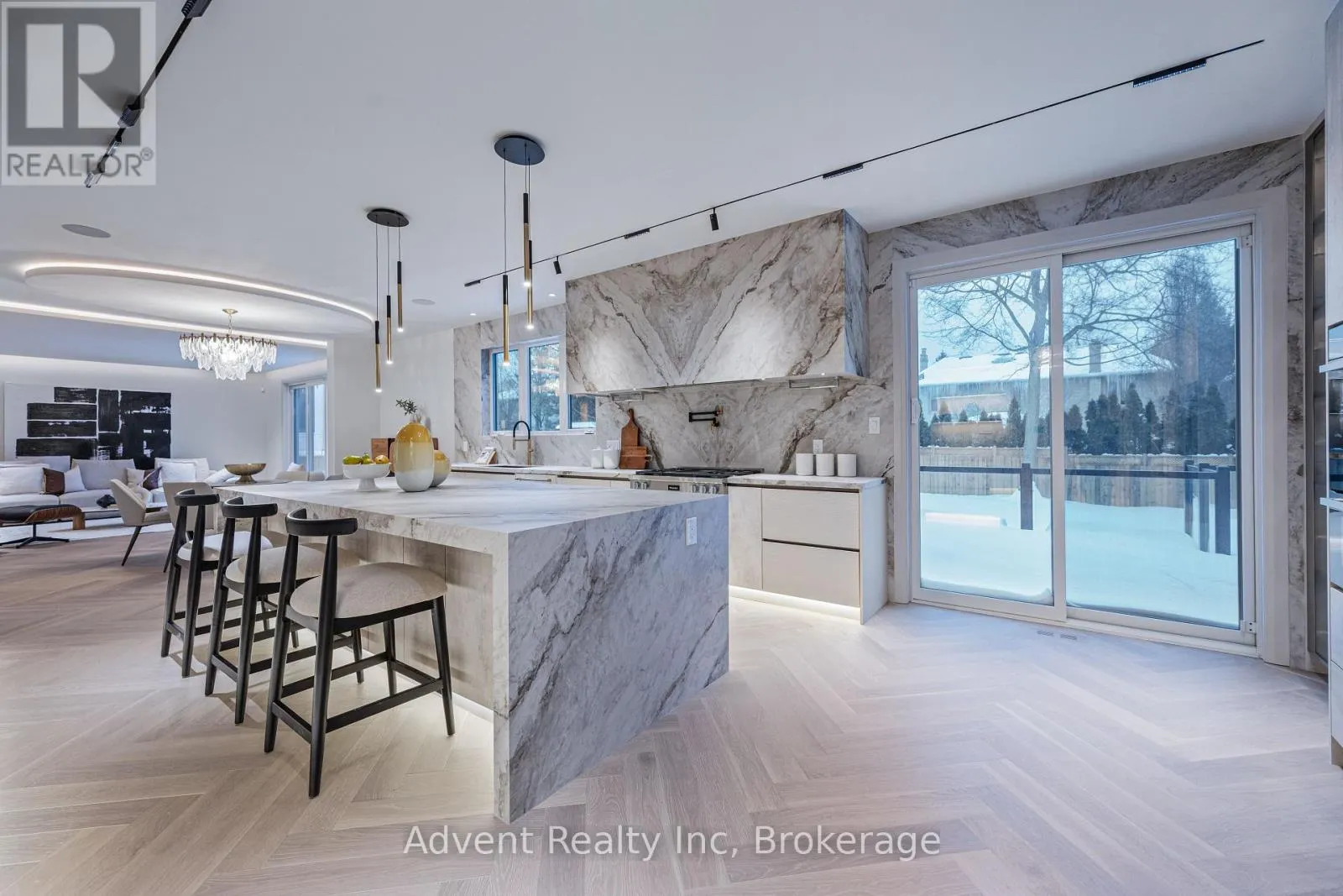 Cross Streets: BAYVIEW & YORK MILLS. ** Directions: as per google map. Executive-style, fully furnished detached home available for short- to mid-term lease in the prestigious York Mills / St. Andrews community. Ideal for corporate relocation, executive tenancy, diplomats, or families seeking a turnkey luxury rental. This newly renovated, top-to-bottom residence offers a grand foyer with porcelain slab flooring, soaring 25-foot ceiling, and skylight. The spacious living area features a modern rotating TV feature wall, perfect for comfortable everyday living or entertaining. The chef's kitchen is fully equipped with porcelain slab countertops, stainless steel appliances, and ample storage. Hardwood flooring runs throughout, complemented by a custom-built staircase. The second floor provides five generously sized bedrooms, each with a private ensuite, offering privacy and comfort for multiple occupants. The primary suite features double doors, a walk-in closet with custom built-ins, and a luxurious 6-piece ensuite.The walk-up basement includes a self-contained nanny suite, recreation room, wet bar, and sauna-ideal for extended family, guests, or additional living space. Fully furnished and move-in ready, with flexible lease terms available. Prime location close to top-ranked schools, shopping, York Mills subway, and quick access to Highway 401. (id:27476)