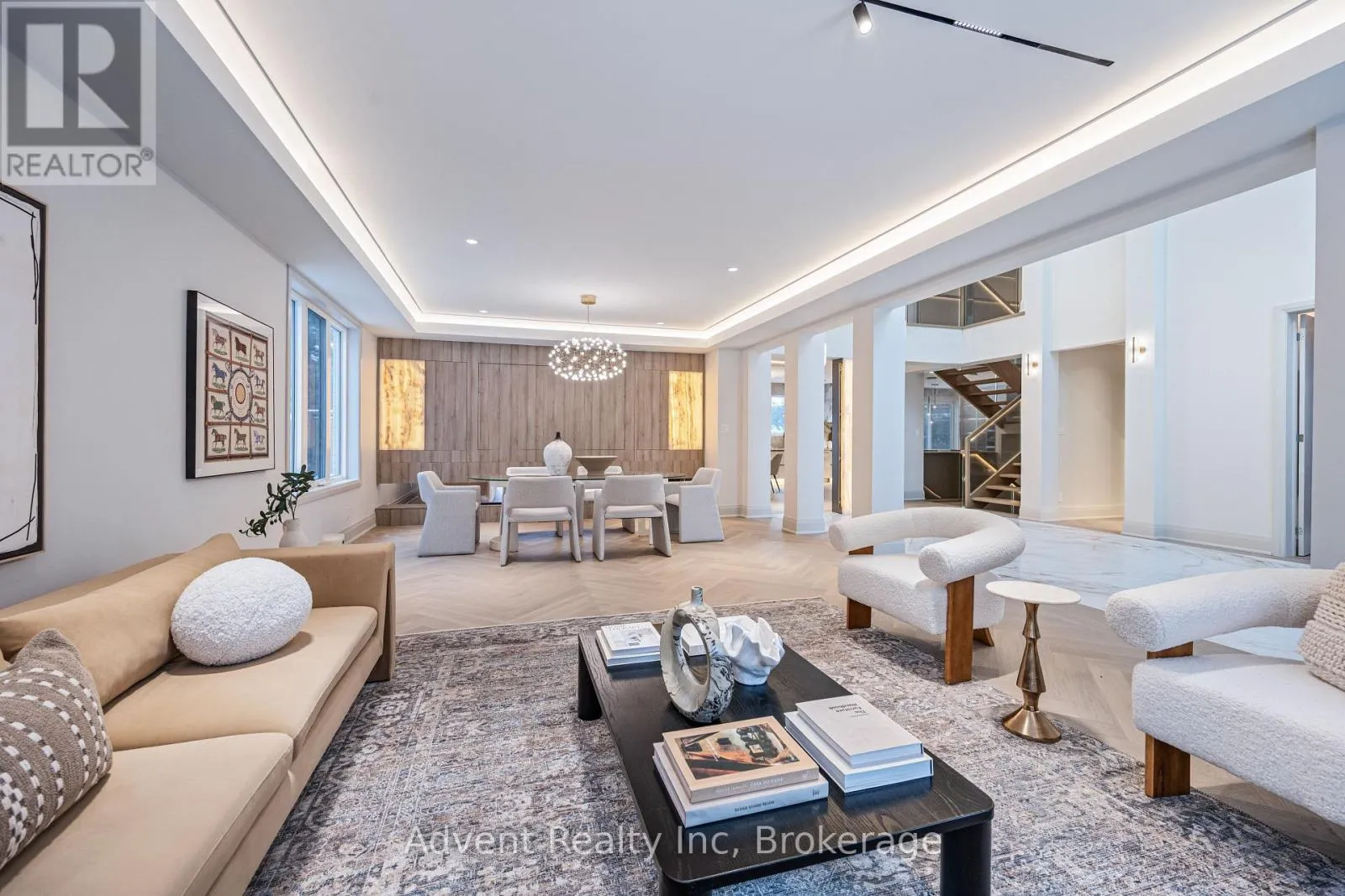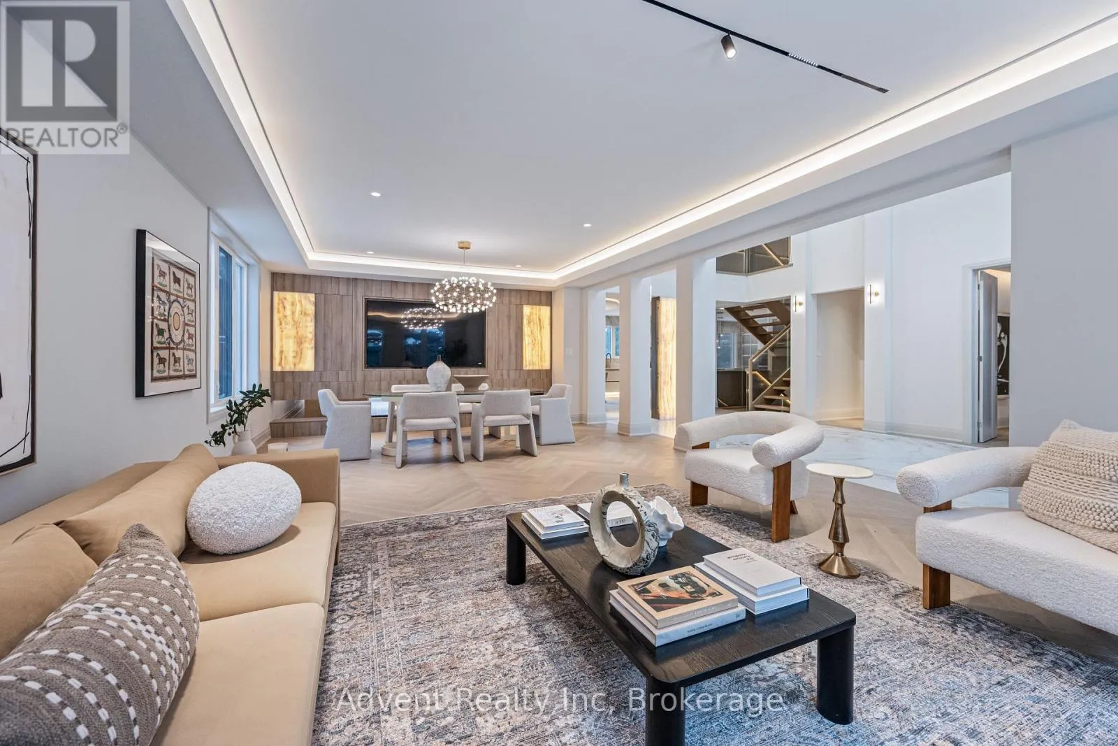 Cross Streets: Bayview & York Mills. ** Directions: As per google map. Luxurious Detached Home in Prestigious York Mills / St. AndrewsNestled in the highly sought-after York Mills / St. Andrews neighbourhood, this exceptional detached residence showcases outstanding craftsmanship and refined modern elegance throughout.Step into the grand foyer featuring breathtaking porcelain slab flooring, a dramatic 25-foot ceiling, and a stunning skylight that fills the space with natural light. The expansive living room is highlighted by a sleek, contemporary rotating TV feature wall - a true statement piece.The designer kitchen is a showstopper, appointed with porcelain slab countertops, premium stainless steel appliances, and sophisticated finishes. Hardwood flooring flows seamlessly throughout the home, complemented by a custom-built staircase that enhances the property's modern aesthetic.The second floor offers five spacious bedrooms, each with its own private ensuite, providing ultimate comfort and privacy. The luxurious primary retreat features double-door entry, a custom walk-in closet with built-in shelving, and a spa-inspired 6-piece ensuite.The fully finished walk-up basement includes a nanny suite, sauna, wet bar, and a large recreation room - ideal for extended family living and entertaining.This exceptional home is loaded with exquisite details, high-end finishes, and quality upgrades throughout.Conveniently located close to top-rated schools, shops, York Mills Subway Station, and with easy access to Highway 401.A rare offering in one of Toronto's most prestigious communities. (id:27476)