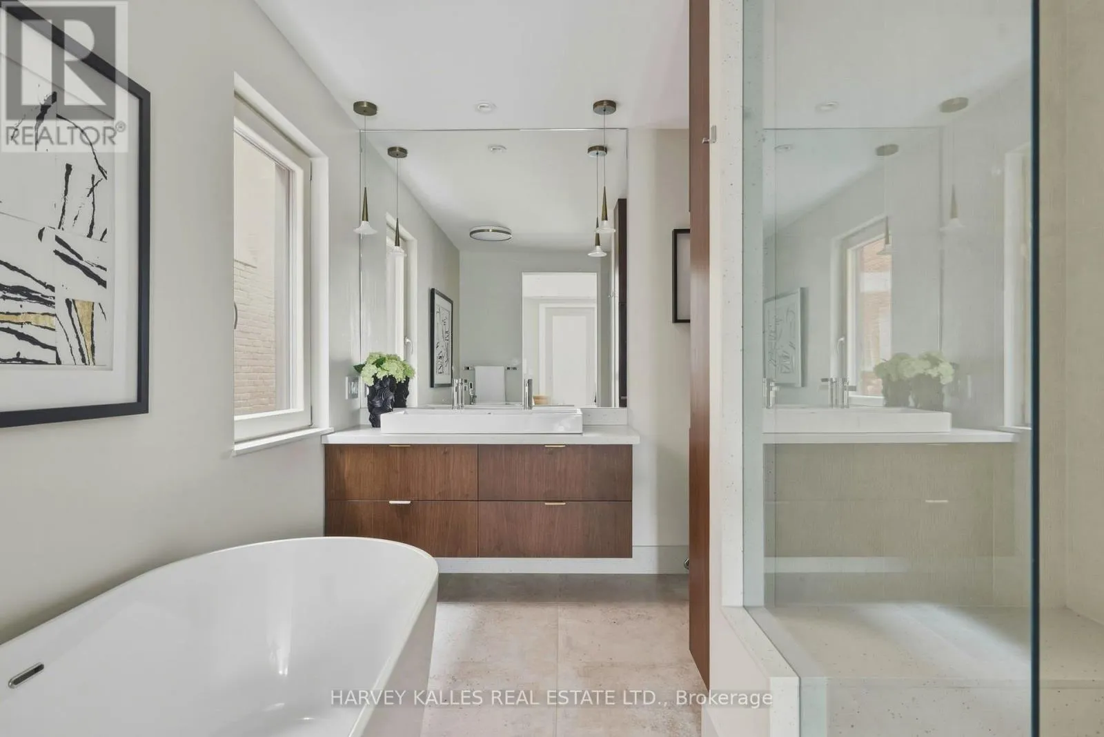 Admiral & Bernard Spectacular opportunity in to live in a rare 2019 custom built and spacious semi-detached home on the most sought-after street in the heart of the Annex. Complete with a one bedroom self contained lower level apartment, this home is perfect for buyers who want to supplement the mortgage with rental income, for extended family stays, or for a private home office! This three-storey home greets you with a classic red brick exterior, and reveals a modern and sleek interior, with an impressive west-facing rear window wall that lets in an abundance of light to every level. The main floor offers elegant living and dining spaces as well as an oversized kitchen with abundant breakfast seating and a walk-out to a fully landscaped urban backyard. In the lower level, there is a family room with heated floors, a large family room with spectacular views and a full-height walk out to the back yard as well as self-contained nanny suite with a separate side entrance. The third floor has a spectacular loft, perfect for showcasing artwork, and with an oversized skylight, and large open terrace. Located steps from Yorkville, this home offers the best shops and restaurants the city has to offer right at your doorstep. (id:27476)
