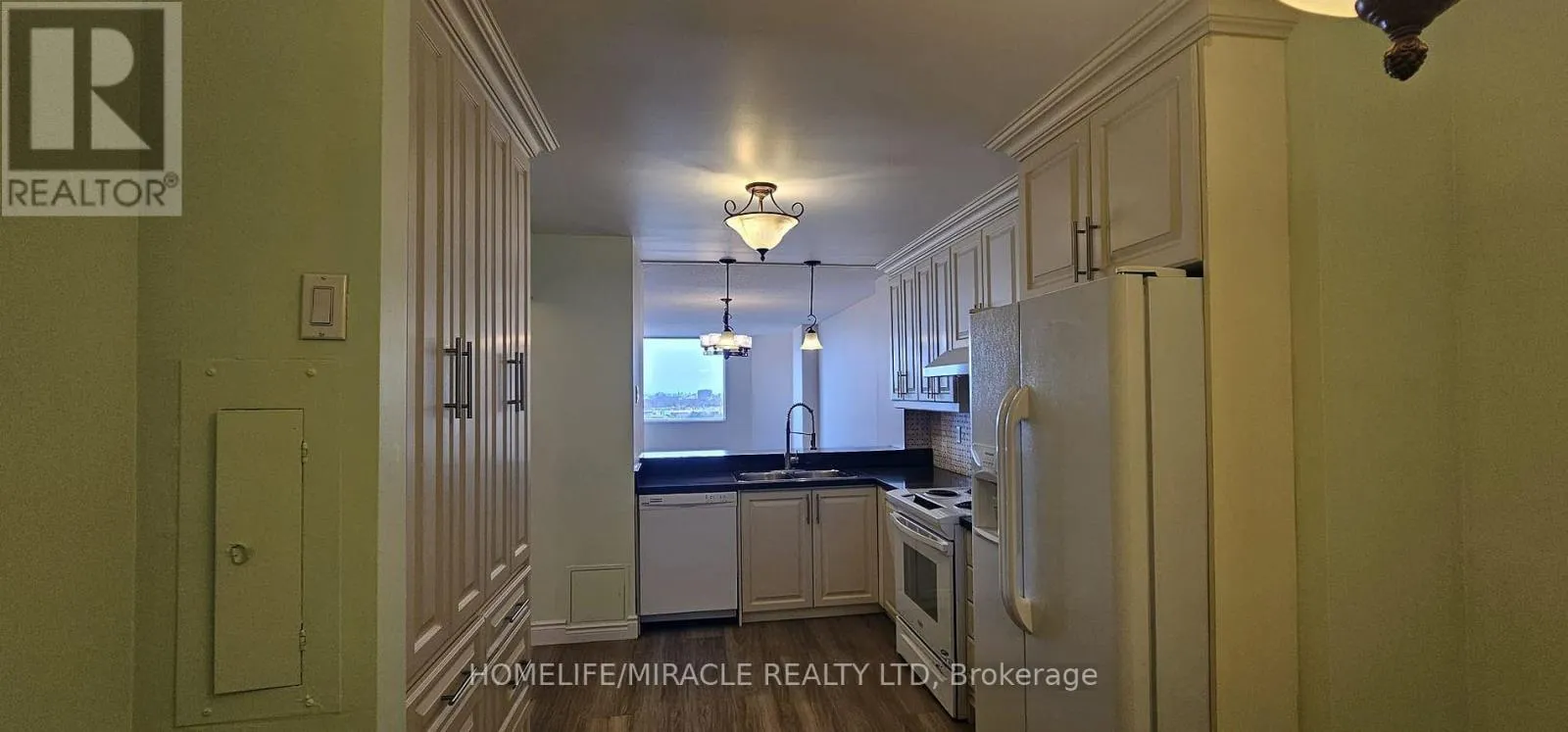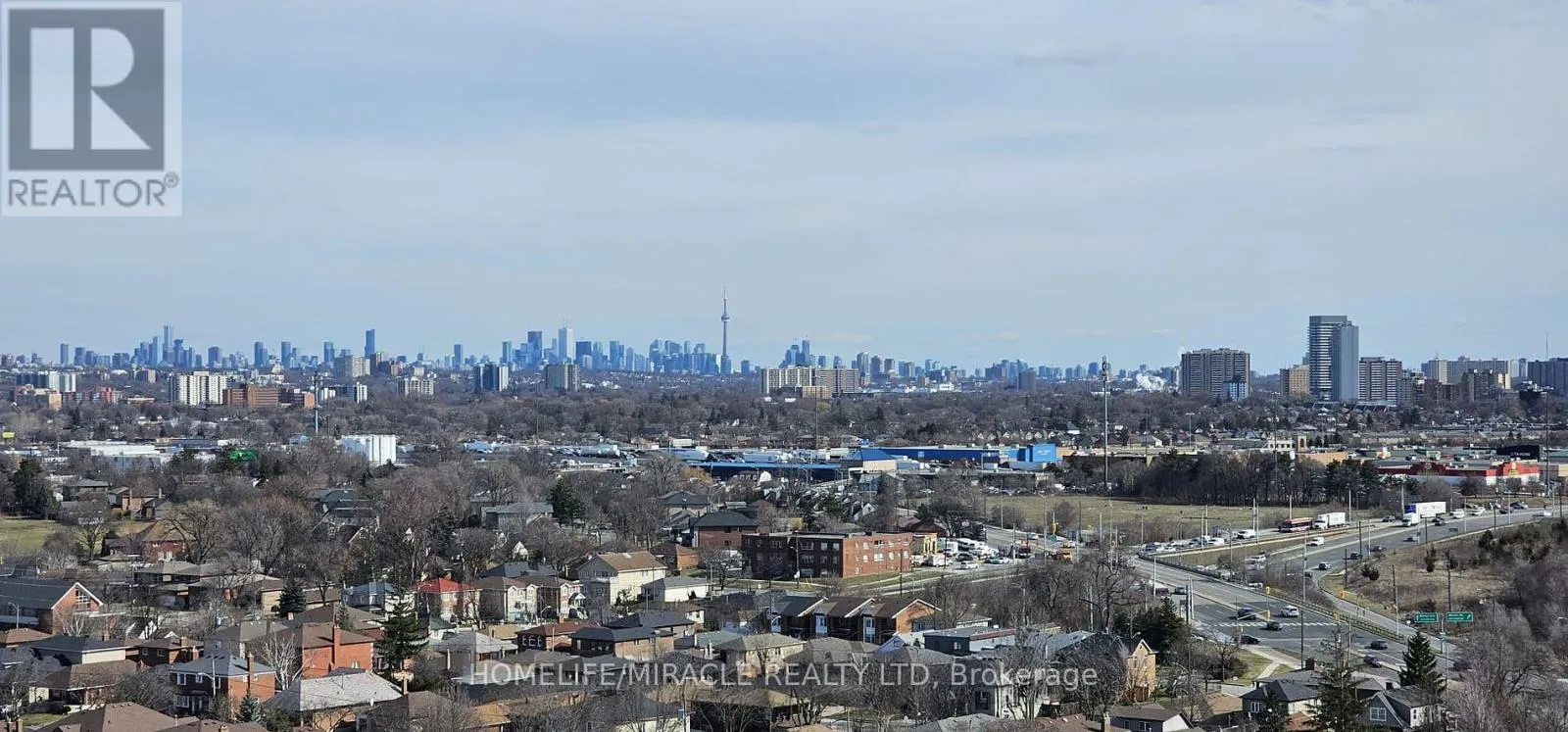 Albion Rd/Weston Rd ** Penthouse Living with Spectacular City Skyline Views ** Welcome to this beautifully renovated penthouse condo offering comfort, elegance, and an unbeatable location. This stunning 2-bedroom, 1-bathroom residence features a bright open layout with large windows that fill the home with natural light and showcase breathtaking city skyline views. The spacious eat-in kitchen is a true highlight, offering abundant cabinetry, generous counter space, and modern appliances, perfect for everyday living and entertaining. The home features laminate flooring throughout, creating a clean, modern look. Step outside to your large private balcony and enjoy spectacular views of the city - the perfect place for morning coffee or evening relaxation. This unit also includes the rare bonus of two underground parking spaces and in-suite laundry for added convenience. Maintenance fees include: heat, CAC , hydro, water, building insurance, and access to excellent building amenities including: Outdoor swimming pool Gym / fitness center, Party room, Sauna, Located in a highly convenient neighborhood, you are just minutes from major highways, main roads, schools, parks, and places of worship, making this an ideal home for first-time buyers, investors, and downsizers, With low annual property taxes, a completely renovated interior, and move-in ready condition, this penthouse offers the perfect blend of luxury, lifestyle, and value. Move in and start enjoying spectacular penthouse living today. (id:27476)