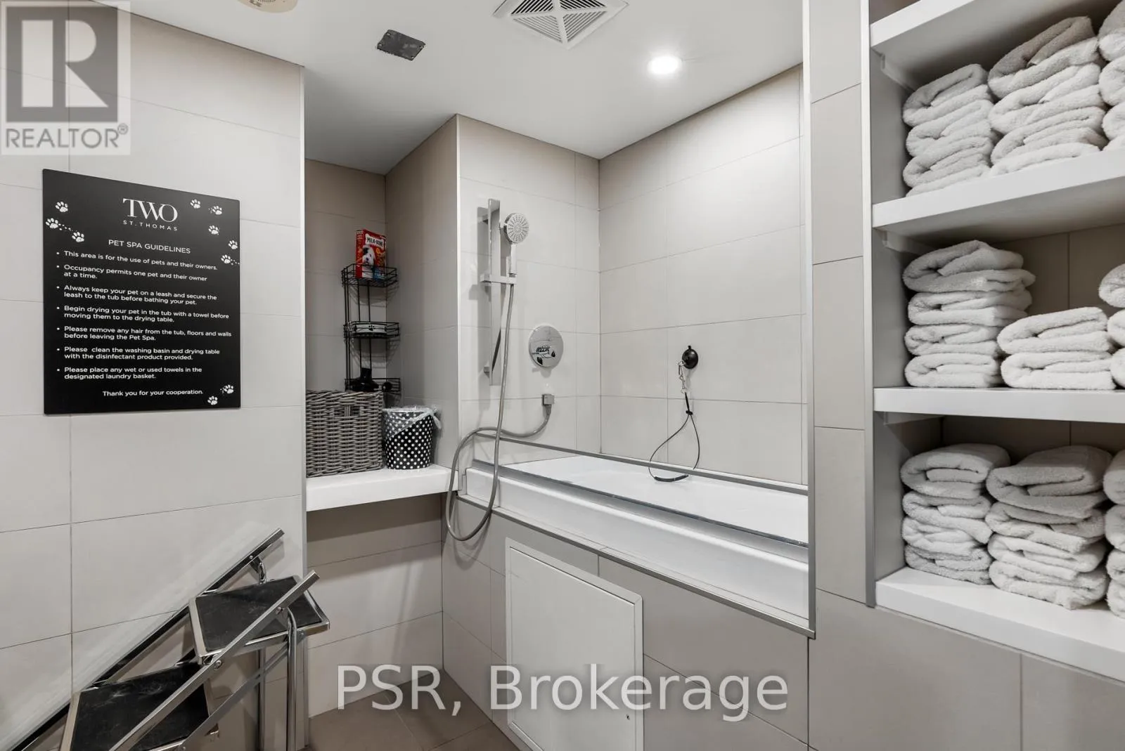 Bay & Bloor Welcome to Two St. Thomas, where luxury living meets exceptional service with Yorkville at your doorsteps. This stunning 3-bedroom corner suite spans over 1,400 sq. ft. and offers a spacious split-bedroom layout flooded with natural light. The modern kitchen includes a large island and a custom pantry with ample storage, seamlessly flowing into the open-concept living and dining areas. Enjoy gorgeous west-facing views from the main living space and a large private balcony perfect for outdoor relaxation. The primary bedroom includes a luxurious ensuite and a walk-in closet, while the second and third bedrooms share a well-appointed bathroom with dual access, providing both convenience and privacy. Residents of Two St. Thomas enjoy world-class amenities, including a concierge, state-of-the-art fitness centre, rooftop terrace with BBQs and lounge areas, party room, and an in-house pet spa. Experience elevated luxury living surrounded by the very best Yorkville has to offer! (id:27476)