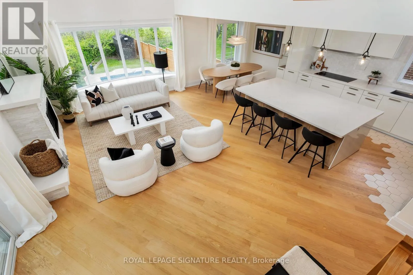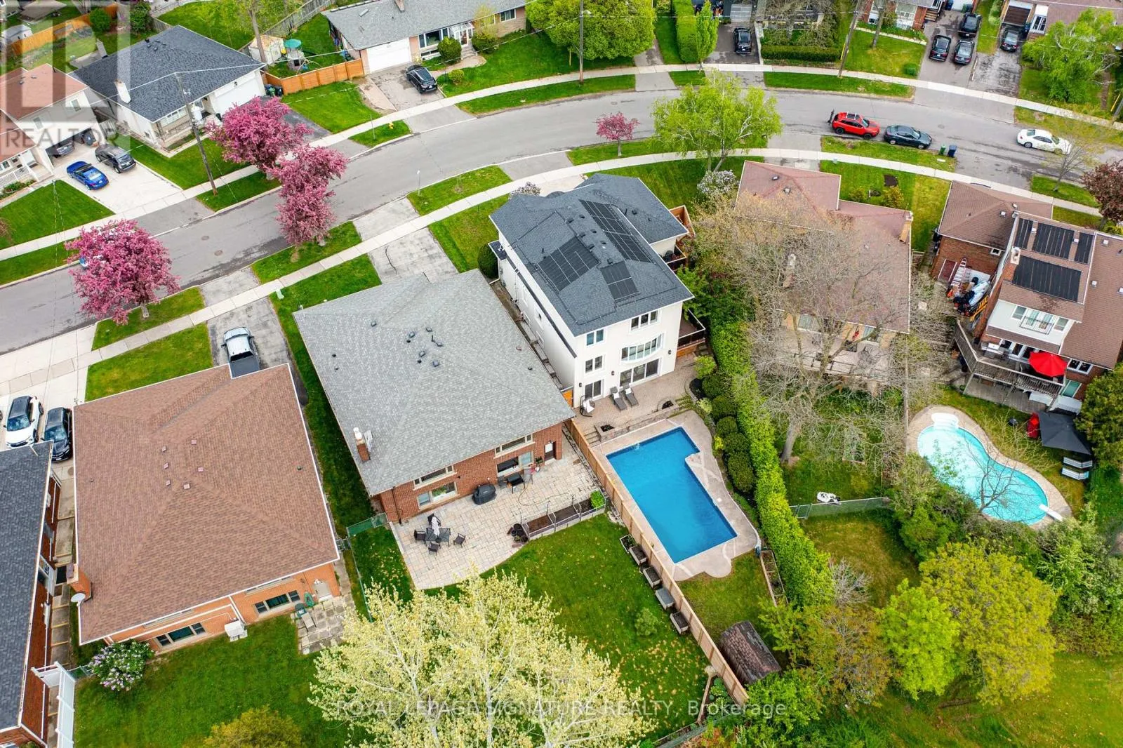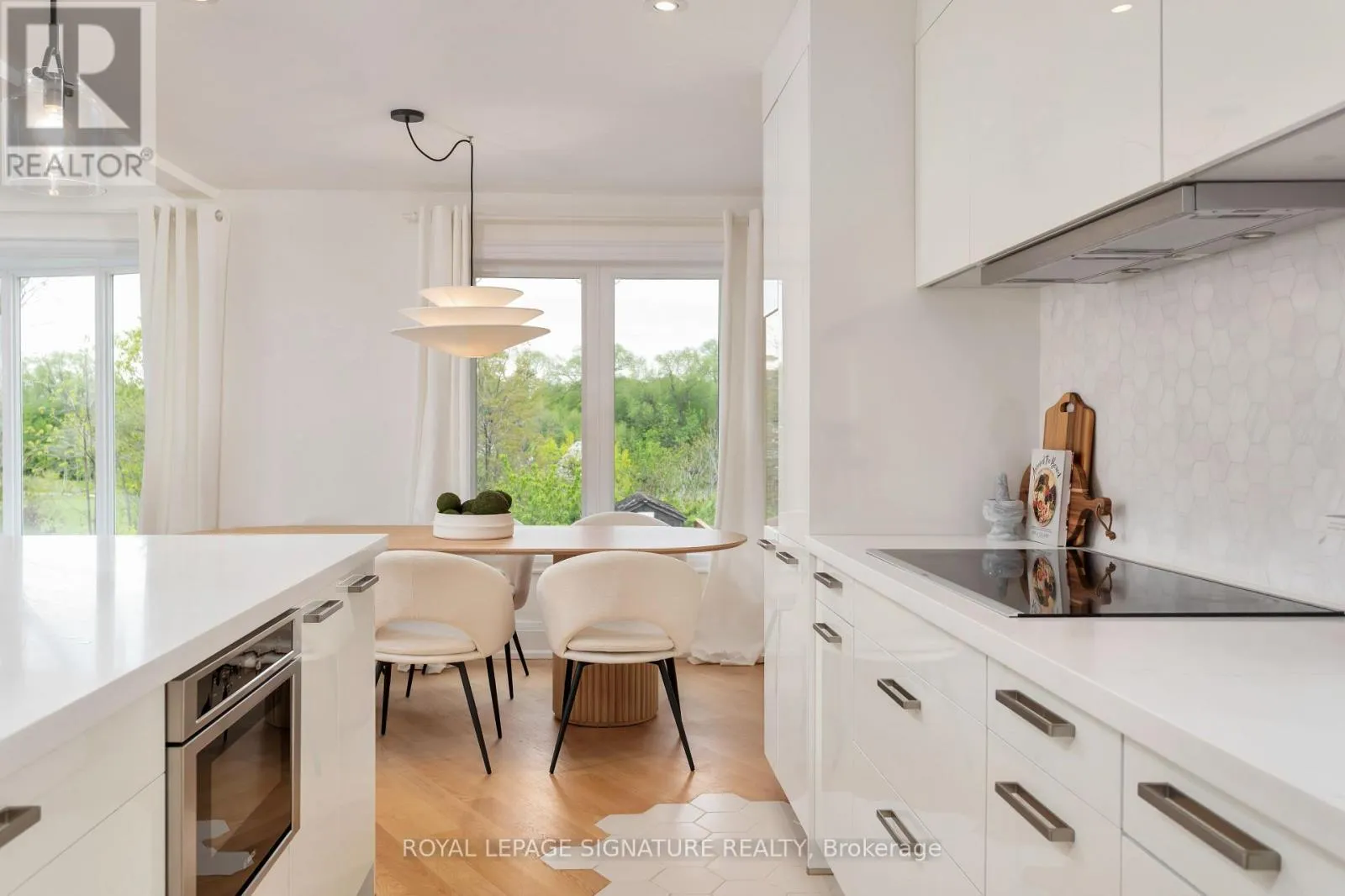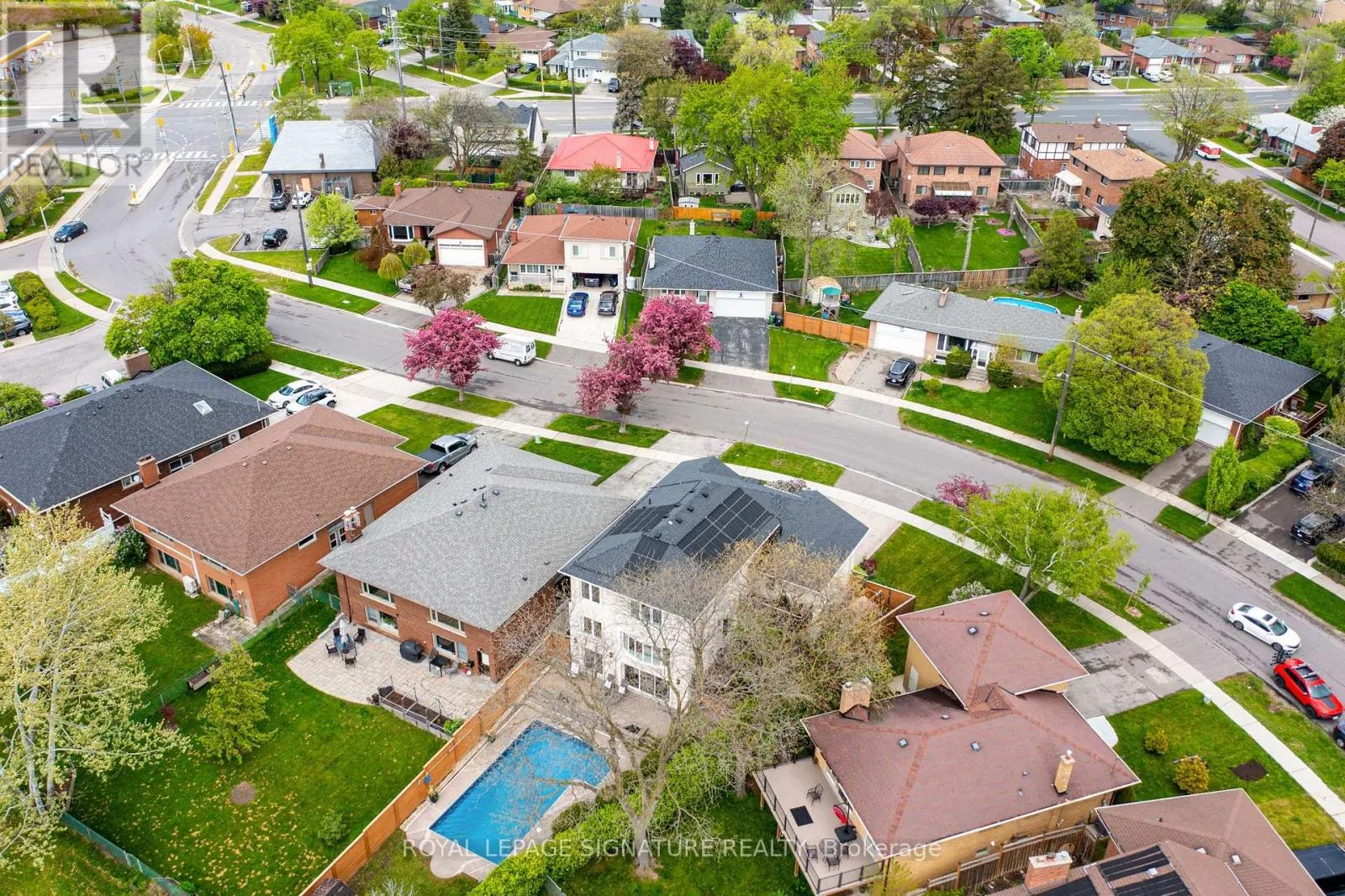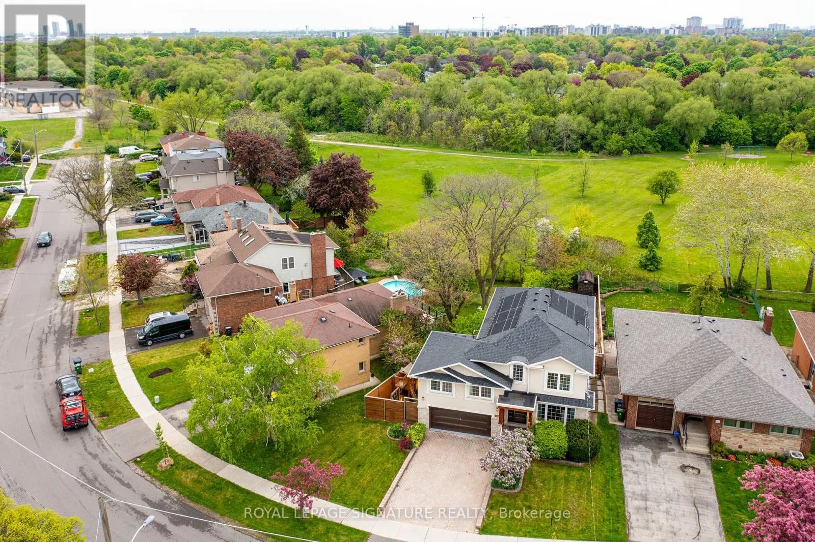 Burnhamthorpe & Saturn Life's better on Saturn! Why settle for ordinary when you can have a house that is out of this world? This 5 bed, 5 bath custom built home is perfectly situated on a 74 X164 lot backing on to green space,with a solar heated, salt water swimming pool, turfed Playground, and 2 outdoor patios with composite flooring, all surrounded by greenery and privacy (and a cherry tree that you can pick right from your patio seat!). Indoors you will be greeted by a nearly 19ft ceiling in the great room. Windows on every wall ensure this space is sun drenched. The kitchen is a custom German Leicht build, with smart storage solutions, and possesses a steam oven and In sinkerator. Diagonally laid hardwood playfully transitions to a modern hexagon tile in the kitchen. Gas and electric heated fireplaces will keep you warm in the winter months, but if that's not enough, the home has a Sauna with health-benefitting infrared or traditional rock heating. A main floor bedroom with ensuite is perfect for anyone with mobility issues or for guest. Upstairs, the primary bedroom is tucked away on its own floor. The Garage offers two parking spots, epoxy floor & EV Charger. W/O Basement, 3 under deck storage. So much more! 20 minutes to DT core, 10 minutes to Pearson International Airport. W/in coveted St Clements Catchment area. Walk to Etobicoke Farmers Market! (id:27476)