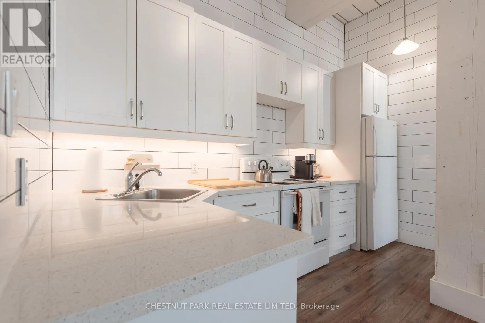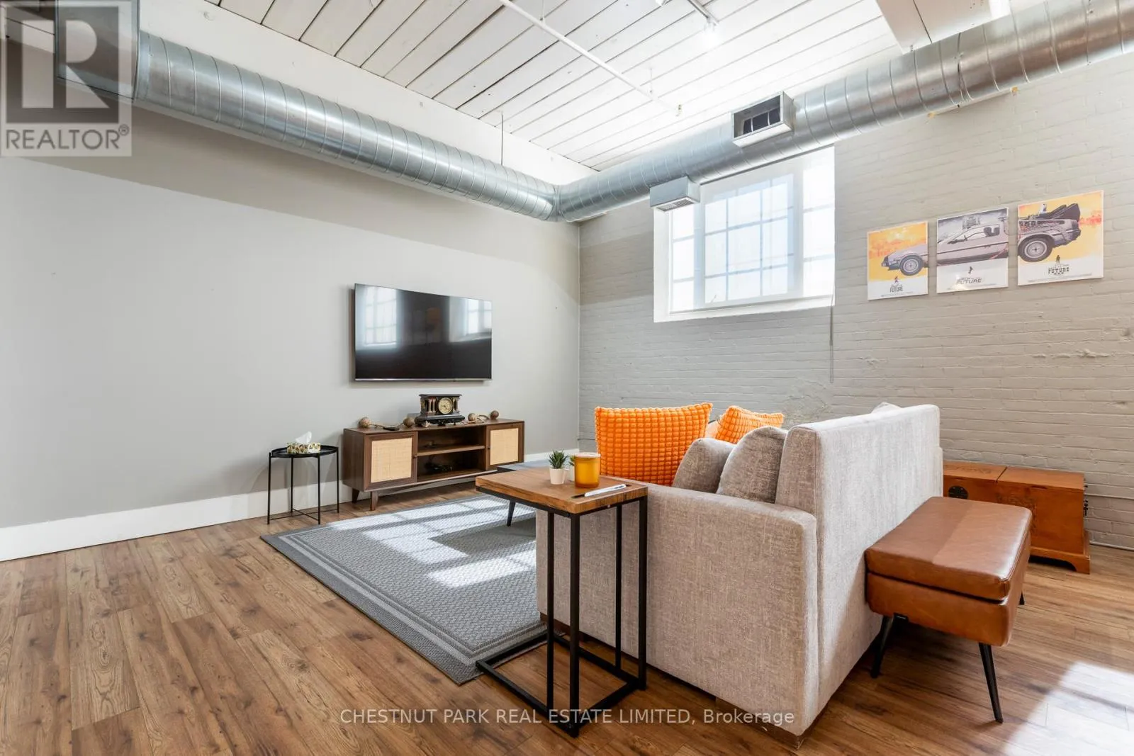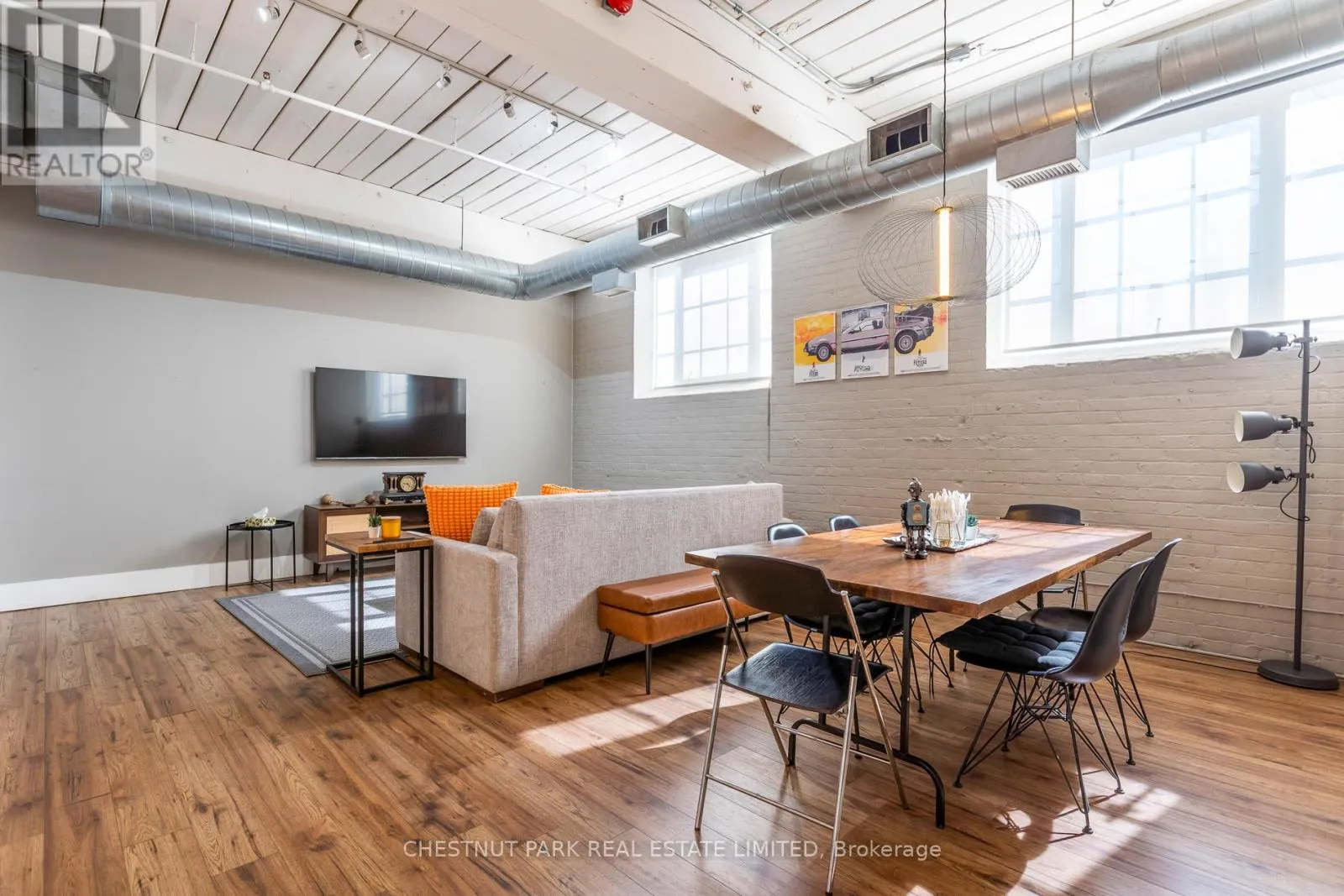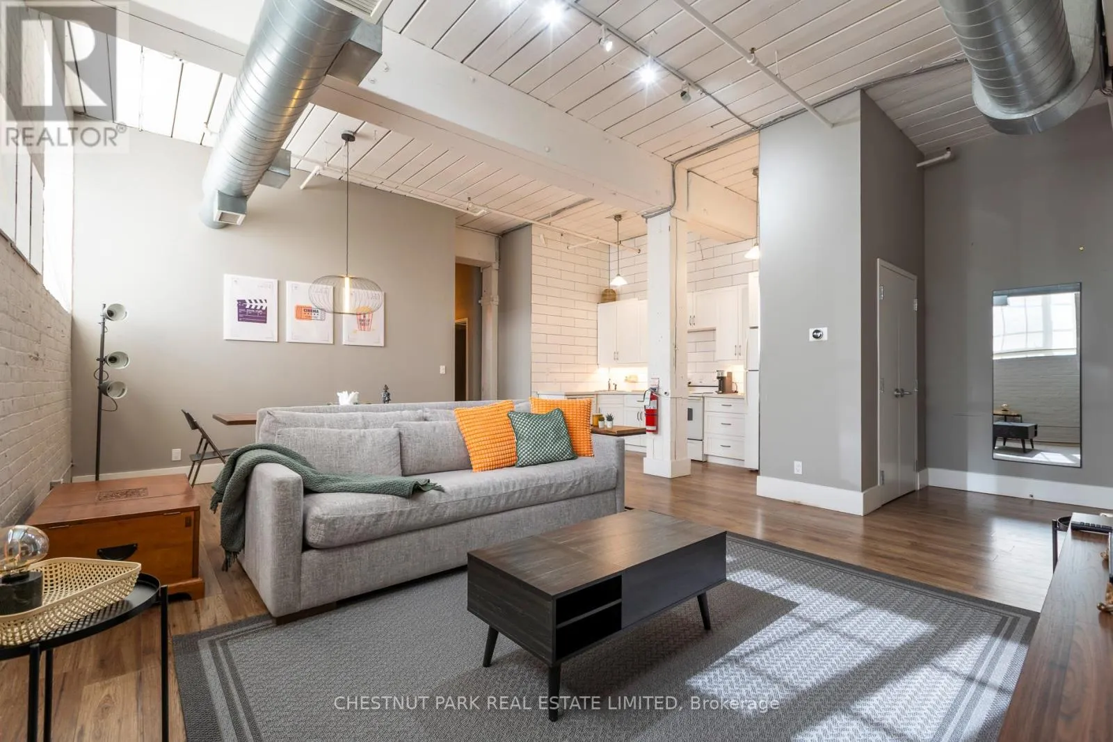 Cross Streets: Dundas & Carlaw. ** Directions: Via google maps. A thoughtfully curated turnkey loft offering appx. 1,000 sq.ft of distinctive living space. Soaring ceilings and oversized south-facing windows create an open, airy feel and draw in beautiful natural light throughout the day. Exposed brick and beams add warmth and architectural character, giving the space depth and texture. Fully furnished with carefully selected, high-quality pieces, the loft is entirely move-in ready and inclusive of all utilities - hydro, water, heat, CAC, and internet! The building is very well maintained, contributing to a comfortable and easy living experience. Positioned just north of Queen St. E and south of Gerrard St., this loft is within walking distance of cafés, boutiques, and a wide range of five star dining options. Conveniently located near everyday amenities and just steps to public transit lines, it offers seamless access to the city while maintaining a sense of retreat. Available immediately for short- or long-term lease, with preference for longer-term arrangements. Parking can be arranged if needed. A rare offering that combines character, scale, and understated style in one of the east end's most established neighbourhoods. (id:27476)