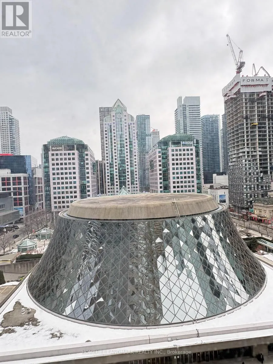 Cross Streets: Wellington and Simcoe Street. ** Directions: WELLINTION/UNIVERSITY. Wrapped in the charm of King & University, this suite sits in the heart of the city with a Walk Score of 100, directly across from the timeless beauty of Roy Thomson Hall-Symphony Place at its most poetic. Tucked within a classic boutique building, this one-bedroom plus den feels like a quiet retreat above the rhythm of the Entertainment District, shared with only a handful of neighbours on the same floor.The home opens into a spacious layout where calm and comfort meet. The primary bedroom features a serene 5-piece ensuite with a jacuzzi-your own private sanctuary-while a separate powder room welcomes guests with ease. The custom kitchen, rich with storage and character, includes a charming pass-through window perfect for sharing late-night snacks, morning coffees, or a glass of wine as music drifts in from the city below.An exclusive parking space sits beside an oversized private locker room, offering rare convenience in the downtown core. Steps from St. Andrew Station, theatres, restaurants, and the PATH, this is a place where the city's energy surrounds you, yet your home remains a peaceful escape. (id:27476)