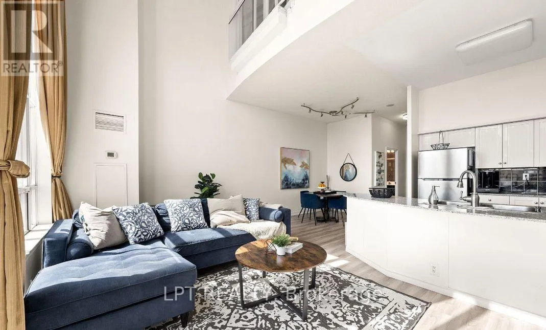 Don Valley Pkwy / Sloan Welcome To This Stunning Two-Bedroom, Two-Bathroom Loft-Style Suite That Seamlessly Blends Style, Comfort, And Everyday Convenience. Offering Over 1,100 Square Feet Of Well-Designed Living Space With Ground-Floor Access, This Home Is Perfect For Pet Owners And Those Seeking Easy Entry. Step Inside And Be Impressed By The Dramatic 18-Foot Ceilings In The Living Room, Creating A Bright And Airy Atmosphere. The Open-Concept Layout Paired With Sleek Laminate Flooring Throughout Provides A Smooth And Modern Flow Between Living Areas. The Spacious Kitchen Is Ideal For Cooking And Entertaining, Featuring Granite Countertops, Stainless Steel Appliances, A Large Breakfast Bar, And Plenty Of Cabinet And Storage Space. The Expansive Terrace Extends Your Living Space Outdoors, Perfect For Relaxing Or Hosting Guests. Enjoy The Comfort Of A Private Primary Bedroom With Its Own Ensuite Bathroom, Along With The Added Convenience Of Ensuite Laundry. This Unit Also Includes One Parking Space And One Locker For Additional Storage. Located Just Minutes From Schools, Highways, Shopping, And Everyday Essentials, With Public Transit Conveniently Right At Your Door. Residents Enjoy Fantastic Building Amenities Including A Lounge With Pool Table, Fitness Centre, Outdoor Pool, Tennis Court, Guest Suites, And Ample Visitor Parking. Experience Exceptional Urban Living In A Prime Location. (id:27476)