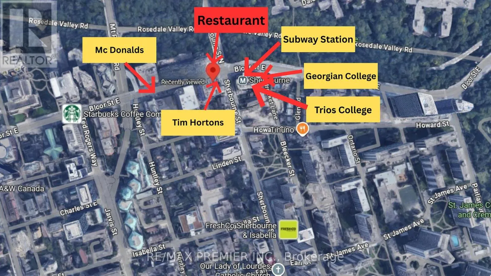 Bloor St E & Sherbourne St Exceptional Turnkey Restaurant Opportunity Offering A Rare Combination Of Prime Bloor Street Location, Attractive Asking Price, Competitive Rent And Strong Growth Potential. Positioned Directly Between Tim Hortons And McDonald's On The Busy Bloor Street East Corridor With Exposure To Approx. 15,000-20,000 Vehicles Daily And Thousands Of Pedestrians. Steps To Sherbourne Subway Station And Surrounded By The Extremely Dense St. James Town Community Featuring Over 19 Residential Towers And 17,000+ Residents Within Walking Distance. Short Walk To Georgian College At ILAC and Trios College Bringing Thousands Of Students To The Area Year-Round And Creating Strong Demand For Take-Out And Casual Dining. Located In A Proven Food Corridor With Consistent Lunch, Evening And Late-Night Traffic. Recently Renovated With All Equipment In Great Condition. The Buyer Can Continue The Current Concept And Branding Or Easily Convert The Space To Another Food Concept. With A Strong Established Customer Base And Competitive Rent Of $7,290 Including TMI and Hst, This Turnkey Operation Presents An Excellent Opportunity For Entrepreneurs Seeking A Profitable Business In A High-Demand Downtown Location With Significant Upside Potential. (id:27476)
