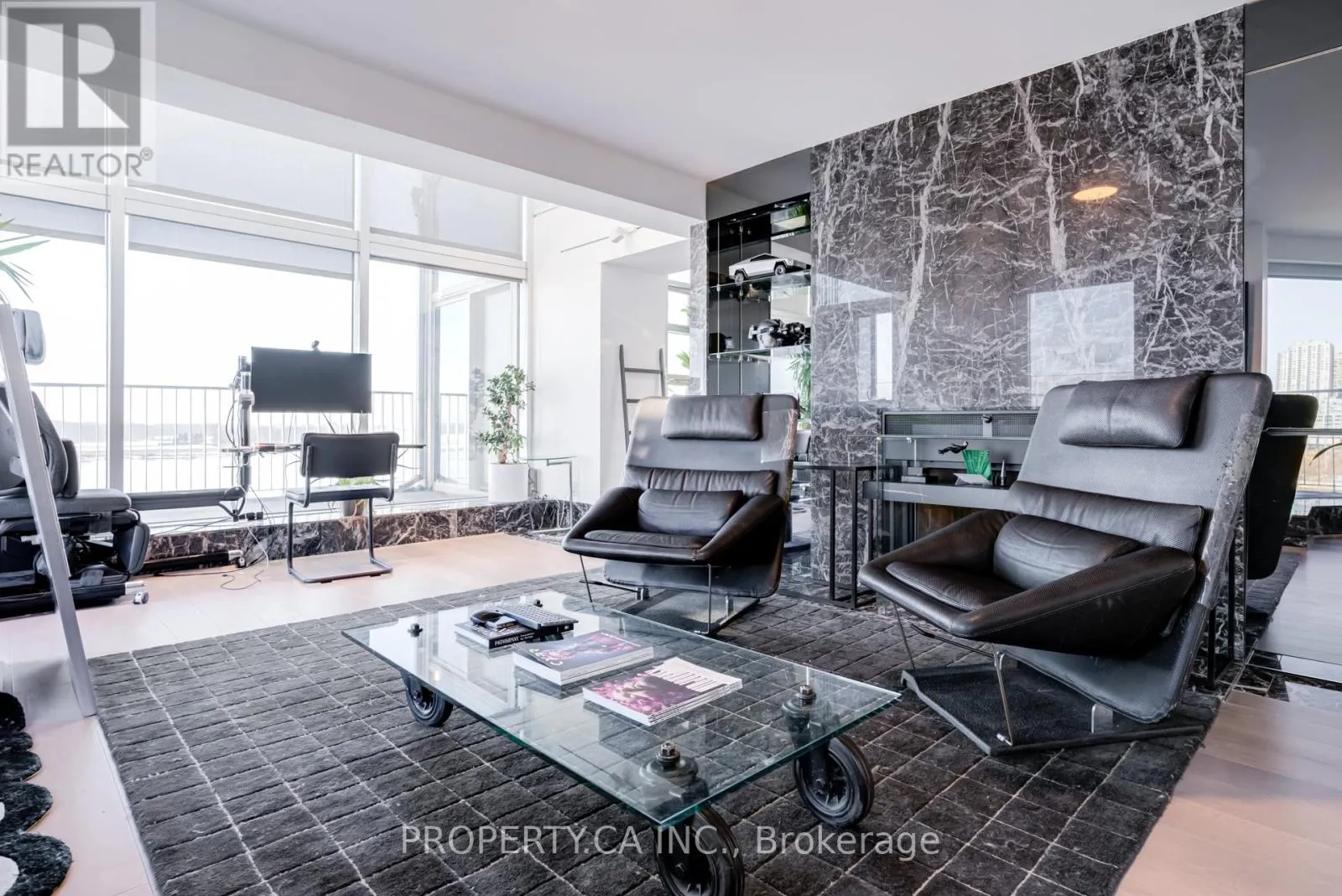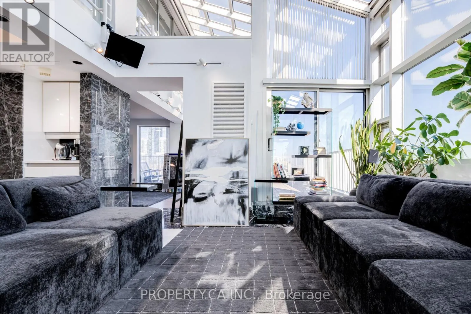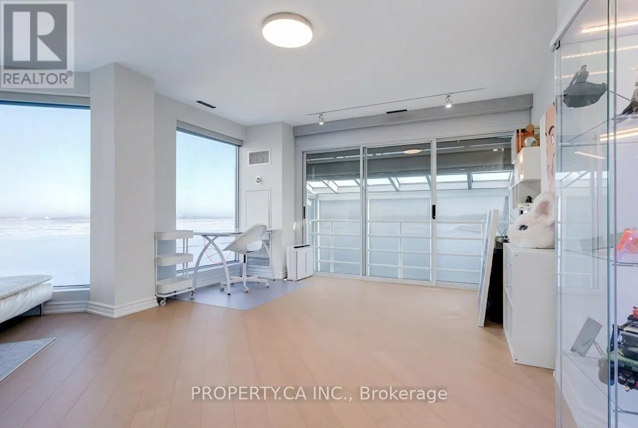 Cross Streets: Queens Quay W/Spadina. ** Directions: South side of Queens Quay W, east of Spadina. Welcome to this exceptional two-storey, 2 bedroom, 1,837 sq ft corner suite with a 218 sq ft balcony at the award winning "Harbour Terrace". Offering an impressive blend of space, natural light, and waterfront living, this rare loft-style residence features expansive principal rooms, fireplace, soaring ceilings, skylight, and floor-to-ceiling windows showcasing stunning lake and CN Tower views. Thoughtfully designed for both everyday living and entertaining, the generous two-level layout includes two separate entrances and offers remarkable scale and privacy. Enjoy your private 218 sq ft balcony retreat overlooking the vibrant waterfront setting. Residents enjoy resort-style amenities including 24-hour concierge, indoor pool, fitness centre, rooftop terrace, and visitor parking. Building does not permit dogs on the 4th floor or higher. Ideally situated along the waterfront, steps to Harbourfront, TTC, parks, restaurants, and the downtown core, this is a rare opportunity to live in a truly unique suite in one of the city's most sought-after communities. (id:27476)