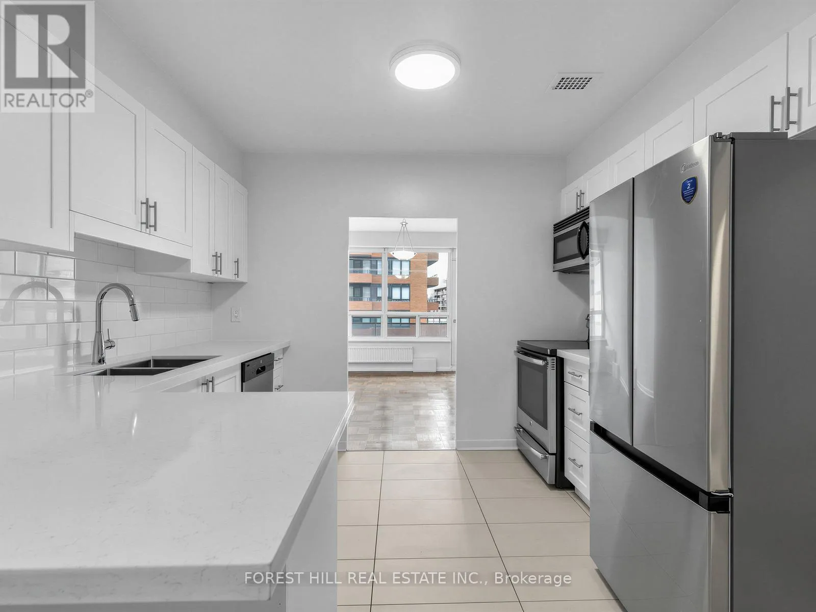 Bathurst St /Eglinton Ave Prime opportunity in the highly sought-after Forest Hill North neighbourhood. This spacious, renovated 2 bedroom, 2 bathroom suite in the Eldorado offers comfortable and stylish living. The family sized kitchen features stainless steel appliances, ample pantry storage, and an eat in area. Combined living and dining rooms with parquet floors open to a private balcony. Additional features include central air conditioning and custom window coverings. Ideally located just steps from Bathurst and Eglinton, with easy access to top rated schools, restaurants, shops, places of worship, and a TTC stop directly in front of the building. Enjoy nearby walks along the Beltline Trail and the abundance of surrounding green space. Move in and enjoy everything this prestigious area has to offer! (id:27476)