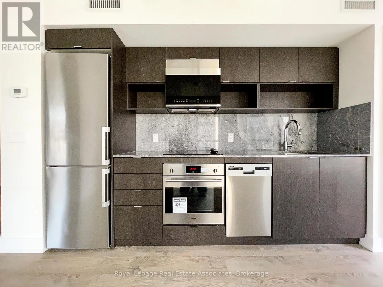 Bloor & Islington Welcome to Islington Terrace at 7 Mabelle Avenue, offering modern design and efficient living in the heart of Islington-City Centre West. This well-planned 2-bedroom, 2-bathroom suite spans approximately 692 sq. ft. and features a bright, carpet-free interior with a functional open-concept layout. The contemporary kitchen is equipped with built-in stainless steel appliances and sleek cabinetry, flowing seamlessly into the combined living and dining area. Floor-to-ceiling windows enhance natural light, while a walk-out from the dining area leads to an open balcony, extending the main living space outdoors. The primary bedroom includes a walk-in closet and a private 4-piece ensuite, while the second bedroom features its own closet and floor-to-ceiling window. A separate 3-piece bathroom adds convenience, and in-suite laundry is neatly tucked into a dedicated closet. One parking space and an exclusive locker are included. Residents enjoy access to building amenities including concierge service, fitness centre, guest suites, games room, and business centre. Ideally located steps from Islington Station, parks, and everyday conveniences, this suite offers comfortable, connected urban living in a sought-after Etobicoke community. (id:27476)