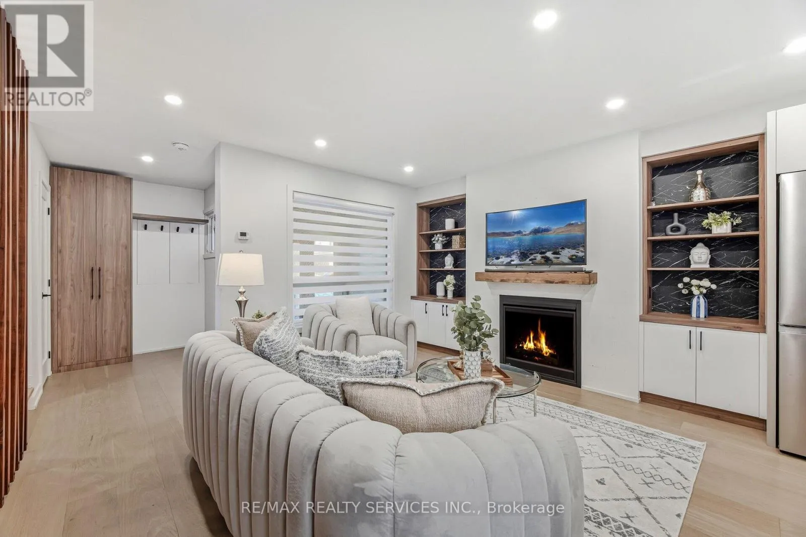 Mclevine & Morningside Welcome to this beautifully designed home which has been professionally renovated from top to bottom with high-quality materials, meticulous detail, and skilled craftsmanship. The functional main floor has too many upgrades to list. The chef's kitchen features quartz island and pantry, high end Franke (Swiss) sink and flush under-mount lighting. The Dining space features walnut bench seating, LED and accent lighting, and walk-out to the large yard. Heated floors are found in the entrance foyer and the main floor powder room. White oak hardwood floors run throughout the home; .The Living room boasts a gas fireplace, built-in shelving, and a stunning walnut beam feature wall. The second level offers 3 bedrooms, including a primary with his & hers custom built closets, a luxurious 3-piece ensuite & heated floors. The finished basement has an additional living room, bedroom and a 3 pc bath. (id:27476)
