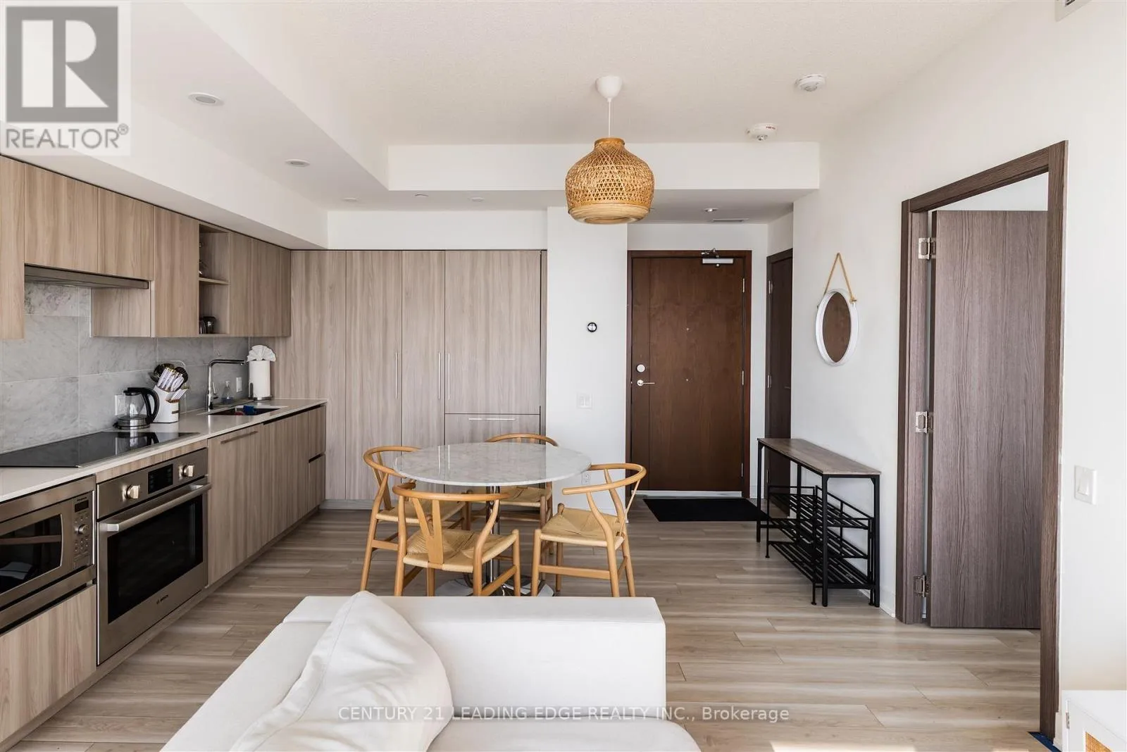 Bathurst St./Lakeshore Shore Blvd. The View: A Panoramic Masterpiece Perched on the 39th floor, this rare Southwest corner suite offers an unobstructed, bird's-eye view of Lake Ontario and the city skyline. The open concept living space with natural light. At this height, you are soaring far above the Gardiner Expressway, ensuring a serene, quiet sanctuary in the heart of the city. The Suite: Sophisticated & Spacious. A True 3-Bedroom Layout: A rare find downtown. Perfect for executive couples or a high-end home office setup. Gourmet Kitchen: Featuring the building's signature Bosch appliance package, integrated cabinetry, Carrara marble backsplash, and premium quartz countertops. Luxury Finishes: Modern laminate flooring throughout (no carpet), 9' ceilings, and spa-inspired bathrooms with marble tile and sleek chrome fixtures. Efficiency: Full-sized ensuite washer/dryer and ample storage throughout. The Lifestyle: West Block Excellence Living at 17 Bathurst means having the city's best conveniences literally at your doorstep: The Podium: Direct indoor access to Flagship Loblaws, LCBO, and Shoppers Drug Mart. The Amenities: a sky-view gym, indoor pool, hot tub, sauna, and a 47th-floor rooftop lounge with BBQs. The Location: Steps to the Martin Goodman Trail, Waterfront parks, The Bentway, and the Billy Bishop Airport. 1 private parking spot and locker included! (id:27476)