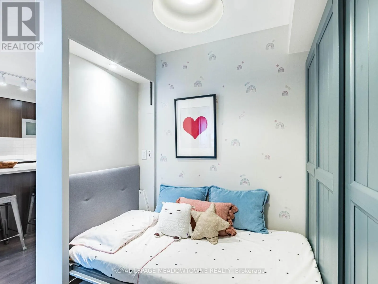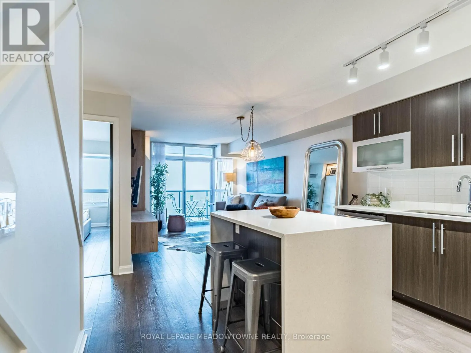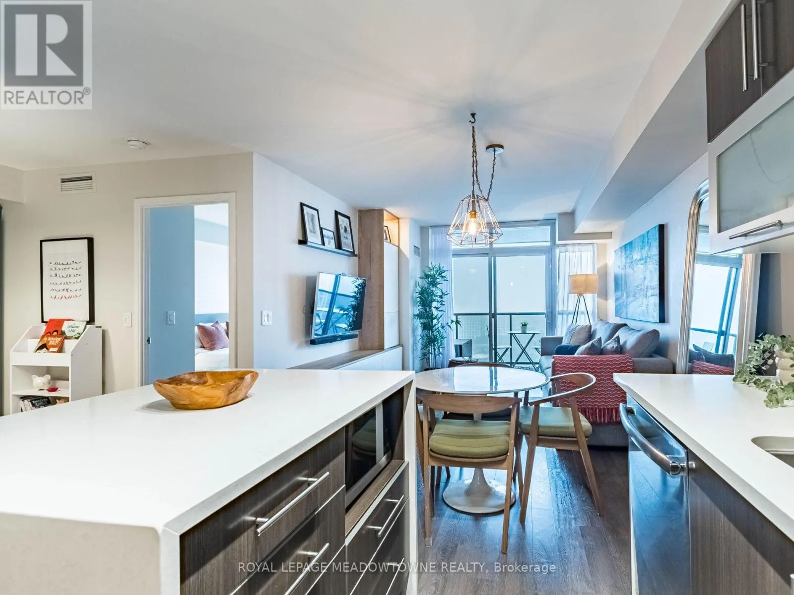 Islington/Bloor Bright and inviting 1+Den suite offering 670 sq. ft. of well-designed living space in the heart of vibrant Islington City Centre. This functional open-concept layout is designed for both comfort and function. Featuring a modern & Sleek kitchen with quartz countertops, Sink faucet(2023) stainless steel appliances, ample cabinetry, and a convenient breakfast centre-island, seamlessly flowing into the spacious living and dining area. This smart open layout filled with thoughtful upgrades is perfect for both everyday living and entertaining. Upgrades includes a custom made entertainment centre organizer, to help you keep everything in place. Den provides excellent flexibility as a second bedroom with more convenient upgrades, first a custom built-Murphy bed, excellent for a kid room or guest area, also could easily change into a baby-nursery or office space & second, a built-in custom made closet space for more storage.Windows fill the unit with natural light, while the private balcony offers beautiful sunset and south city views from a high floor. The generous primary bedroom includes large double closets, complemented by laminate flooring throughout and the convenience of ensuite reading/working nook area. Residents enjoy access to exceptional building amenities including a 24-hour concierge, fully equipped fitness centre, indoor pool, sauna, theatre room, party and meeting rooms, games room (billiard, cards, etc.), and ample visitor parking. Ideally located just steps from Islington Subway Station and close to Kipling GO Station, with easy access to Highway 427, the QEW, and Toronto Pearson Airport. Surrounded by parks such as Michael PowerPark, as well as local cafes, restaurants, shops, and everyday conveniences. Prime location, directly across from the upcoming "Etobicoke Civic Centre" with a new library, Community Centre and more, this location offers the perfect blend of comfort, connectivity, and urban lifestyle. (id:27476)