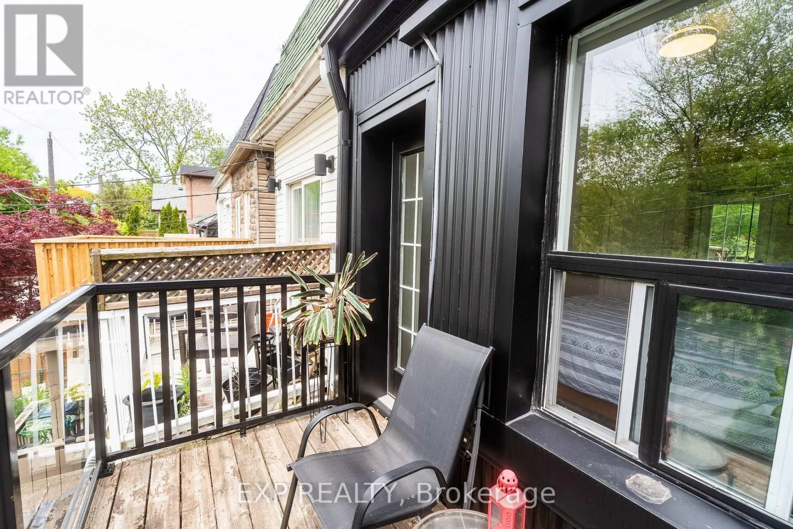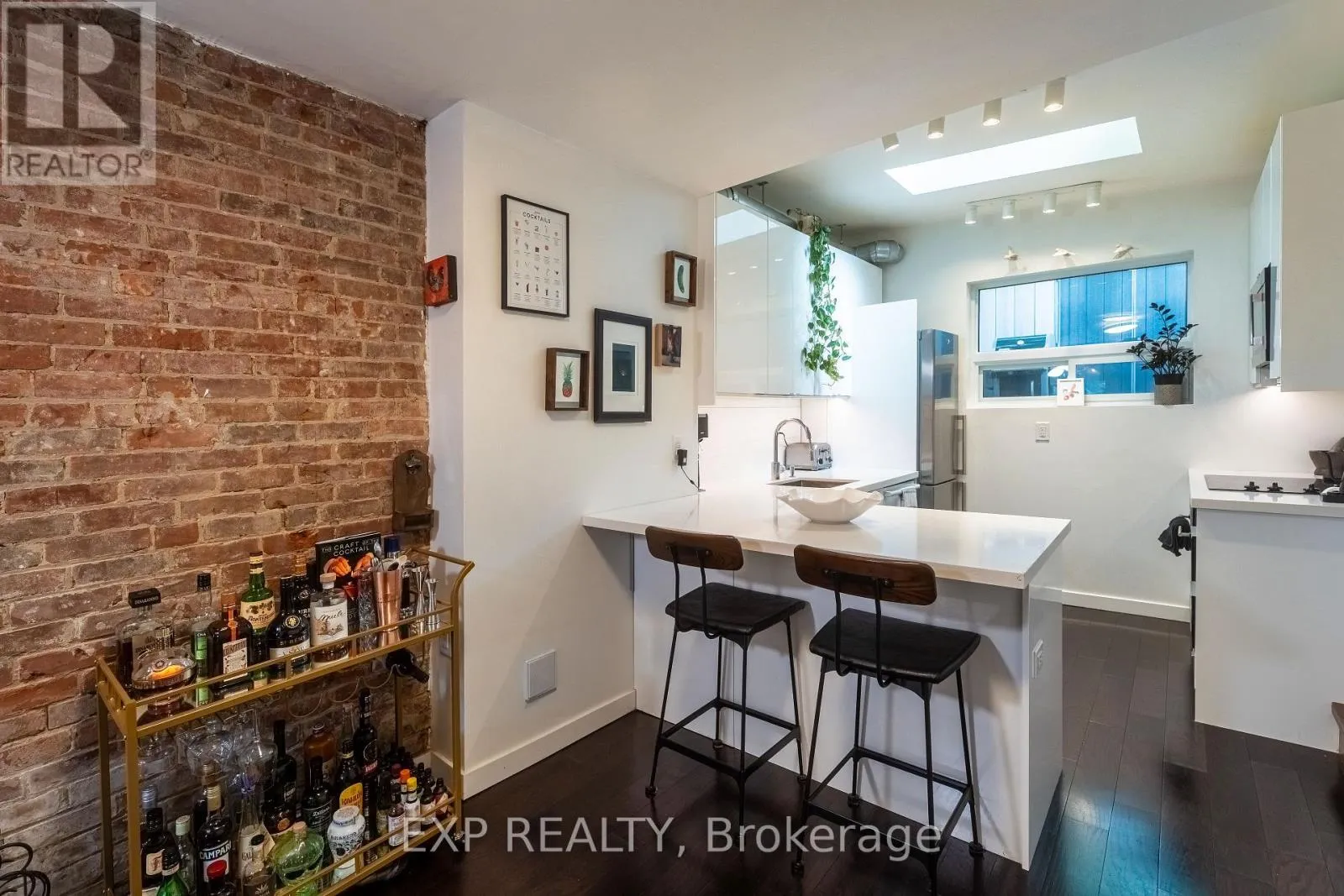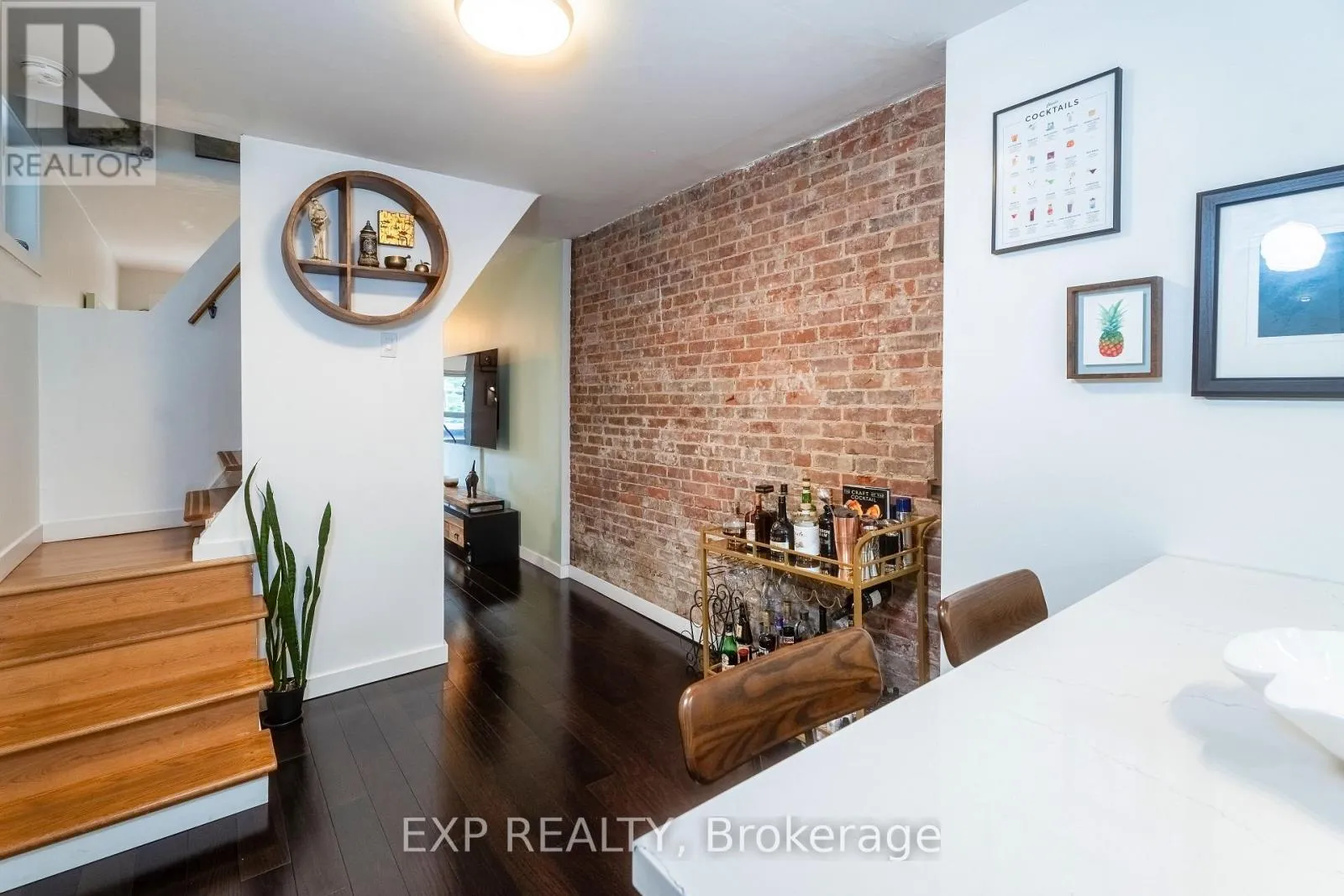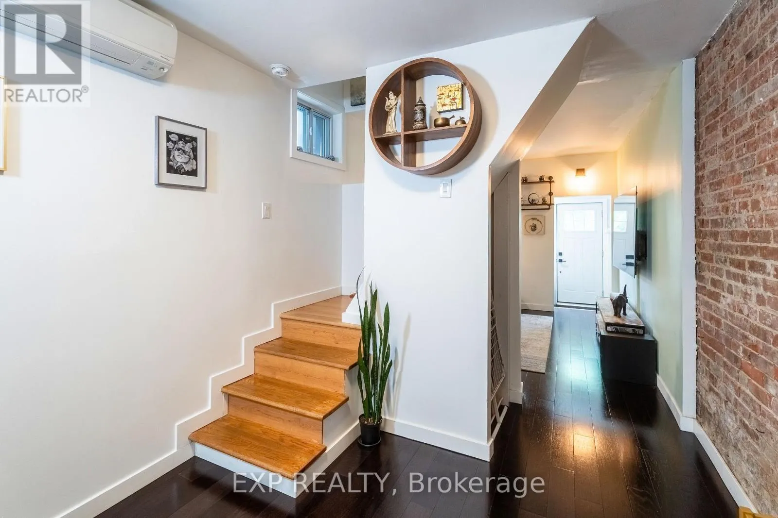 Cross Streets: Gerrard & Coxwell. ** Directions: https://maps.app.goo.gl/ZPGXFrrJLGEPwF8n6. Why settle for a condo when you can own a freehold home in one of Toronto's most vibrant east end neighbourhoods? Welcome to 819 Craven Rd, a stylish, renovated semi-detached home that offers all the benefits of a 2-bedroom condo without the monthly maintenance fees or shared walls above or below. Inside, you'll find warm hardwood floors throughout, a light-filled front Sun Room with heated flooring, and a beautifully upgraded kitchen with quartz countertops, stainless steel appliances, and a breakfast bar. The open-concept living and dining area is anchored by a striking exposed brick feature wall - adding warmth, texture, and a touch of urban charm that sets this home apart. Upstairs features two bright bedrooms, including a primary with a walk-out balcony and large closet. The spa-like 4-piece bathroom includes heated floors for extra comfort. Outside, relax or entertain on your private backyard patio; your own slice of outdoor space in the city. Located steps to transit, parks, shops, and restaurants, this home is perfect for anyone looking at a condo but would rather own a free-hold property, first-time buyers, downsizers, or anyone looking for that hard-to-find blend of style, character, and full homeownership in Toronto. (id:27476)