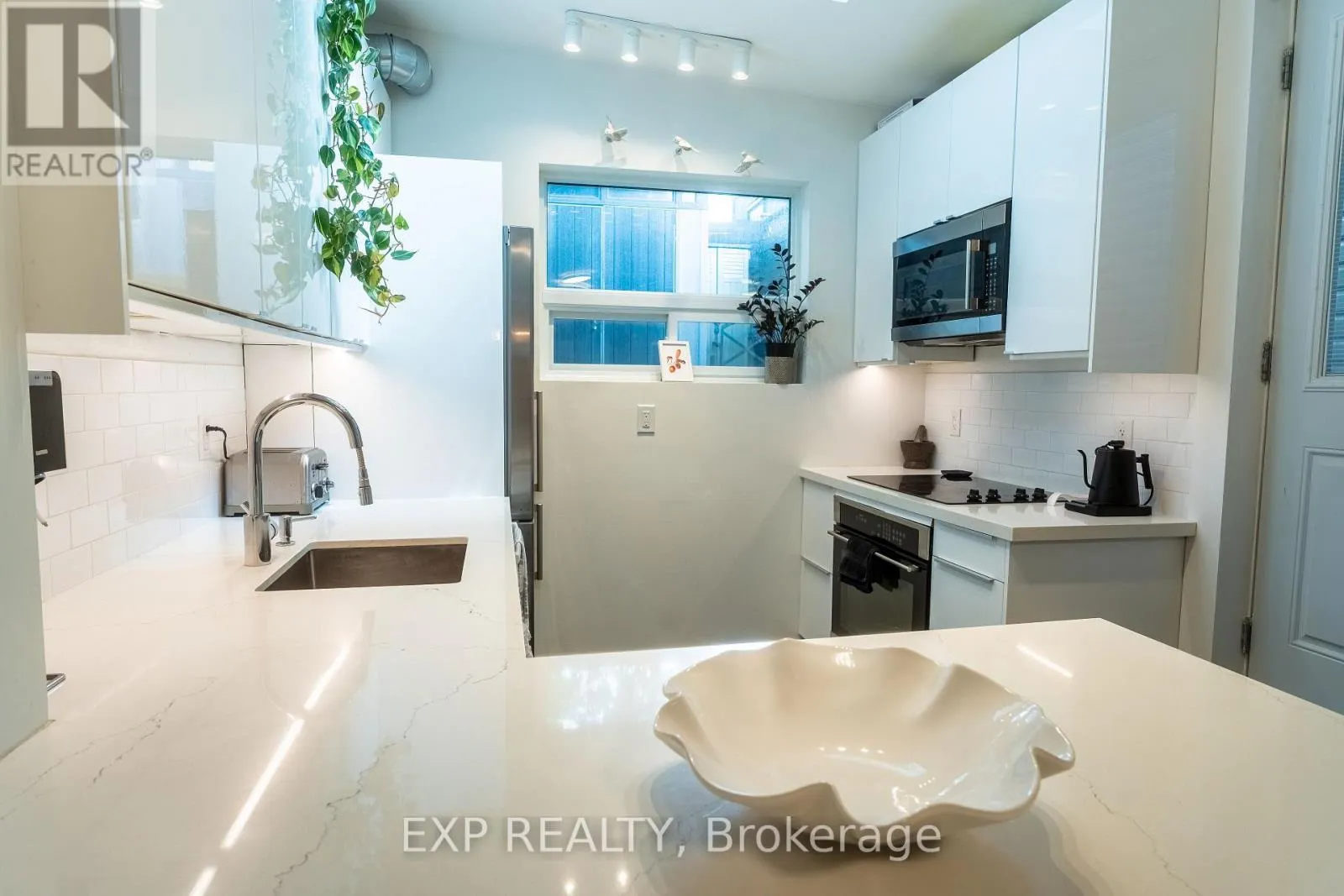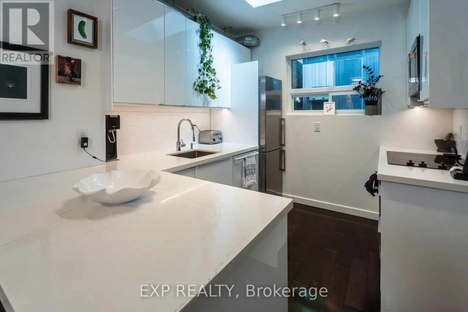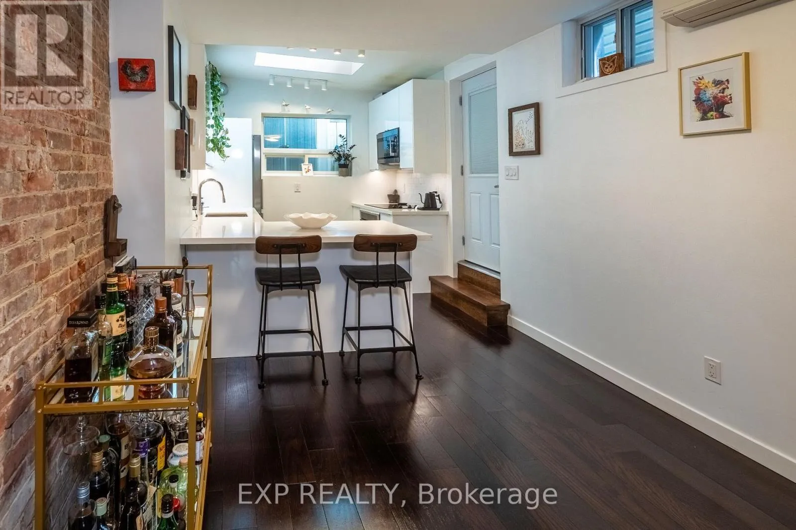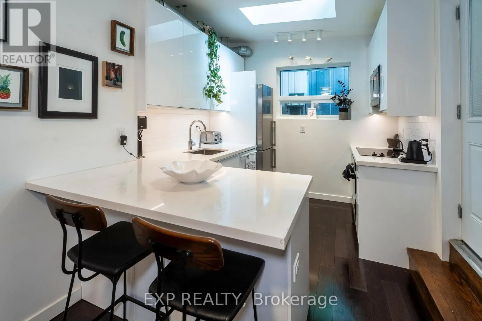 Cross Streets: Gerrard & Coxwell. ** Directions: https://maps.app.goo.gl/ZPGXFrrJLGEPwF8n6. Why settle for a condo when you can own a freehold home in one of Toronto's most vibrant east end neighbourhoods? Welcome to 819 Craven Rd, a stylish, renovated semi-detached home that offers all the benefits of a 2-bedroom condo without the monthly maintenance fees or shared walls above or below. Inside, you'll find warm hardwood floors throughout, a light-filled front Sun Room with heated flooring, and a beautifully upgraded kitchen with quartz countertops, stainless steel appliances, and a breakfast bar. The open-concept living and dining area is anchored by a striking exposed brick feature wall - adding warmth, texture, and a touch of urban charm that sets this home apart. Upstairs features two bright bedrooms, including a primary with a walk-out balcony and large closet. The spa-like 4-piece bathroom includes heated floors for extra comfort. Outside, relax or entertain on your private backyard patio; your own slice of outdoor space in the city. Located steps to transit, parks, shops, and restaurants, this home is perfect for anyone looking at a condo but would rather own a free-hold property, first-time buyers, downsizers, or anyone looking for that hard-to-find blend of style, character, and full homeownership in Toronto. (id:27476)