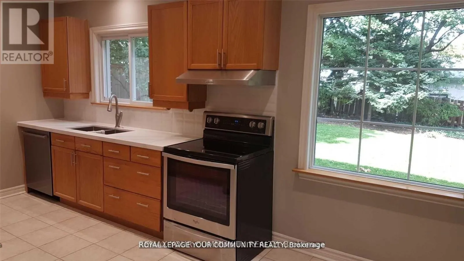 Leslie and 401 Elegant, bright and fully renovated home Tucked away on a child-safe cul-de-sac in the prestigious St. Andrew-Windfields community, is a bright and renovated detached 2-storey home offering a functional layout ready for immediate move-in. This 4+1 bedroom boasting a gorgeous private backyard with matured trees and an L-shaped dining room that walks out directly to the rear patio. The main floor features a sun-filled living room with a south-view bay window and a modern eat-in kitchen upgraded with gorgeous countertops, pot lights, and stainless-steel appliances. For daily convenience, the home includes a mudroom with a 2-piece bath and direct access to the single attached garage, which provides one of the four total parking spaces. The second level is home to four bedrooms with hardwood floors, including a primary bedroom with a double closet and a central 4-piece washroom. Downstairs, the finished basement provides a full bathroom, a large recreation room and a room can be used as a bedroom or an office with a window to the outside. (id:27476)