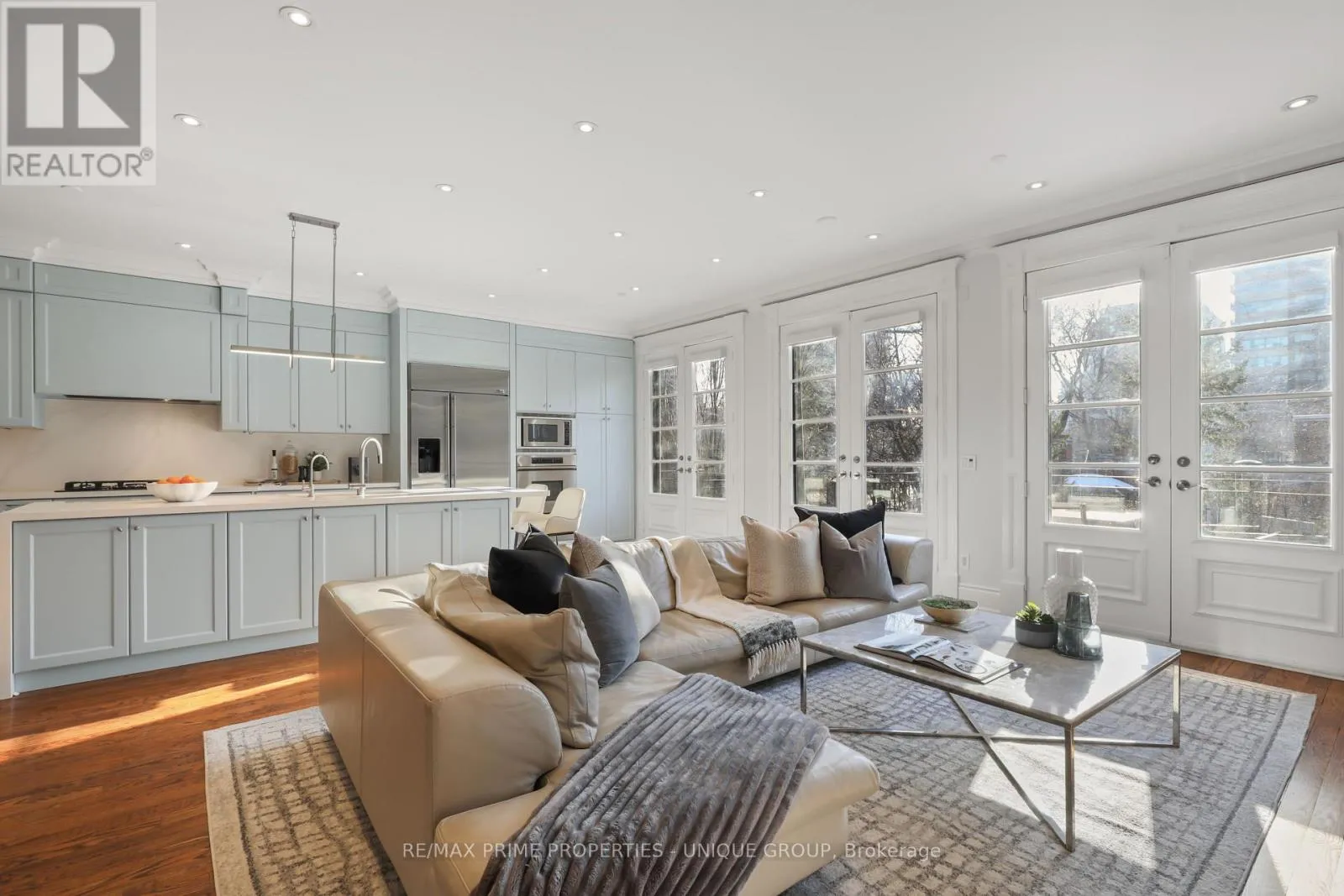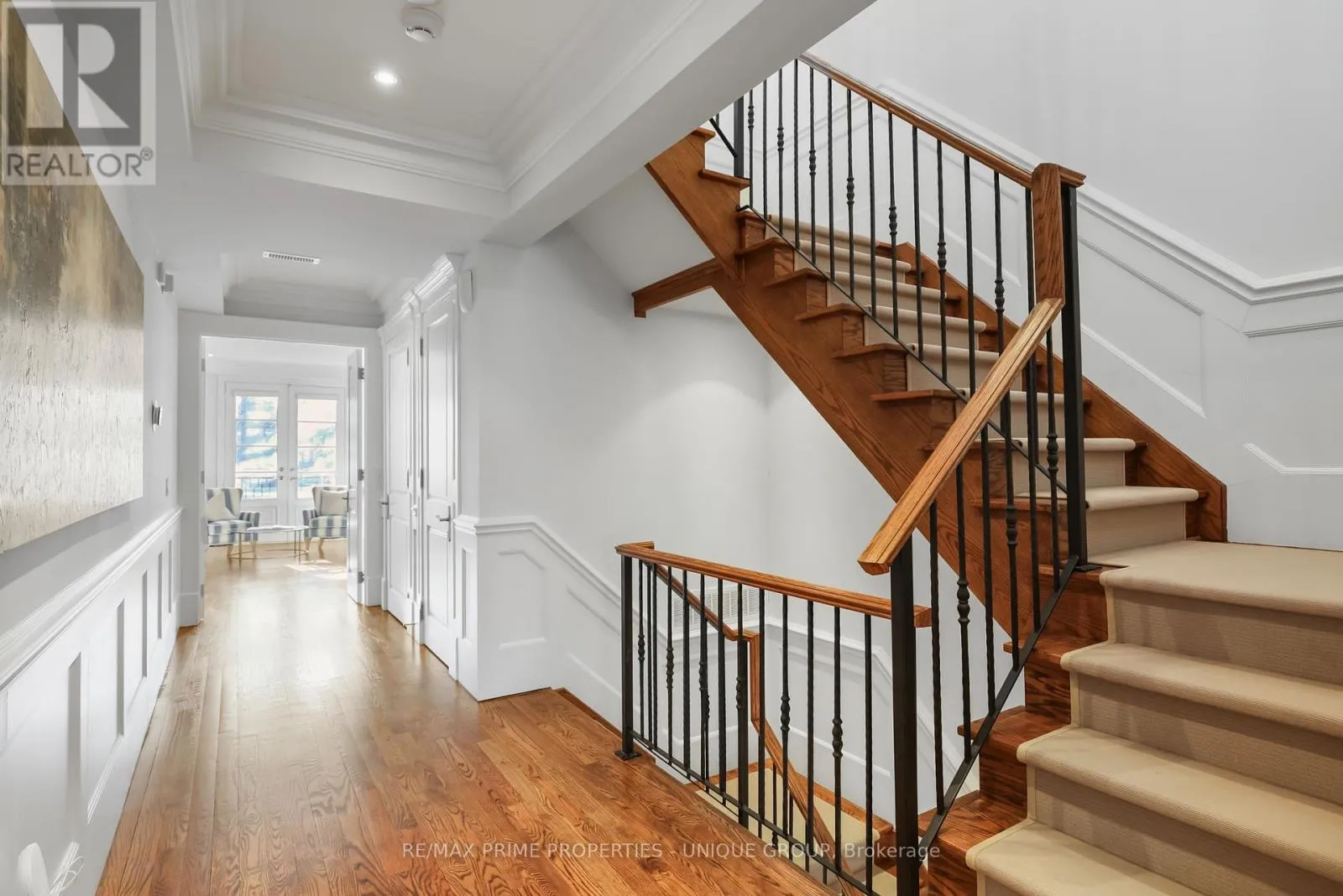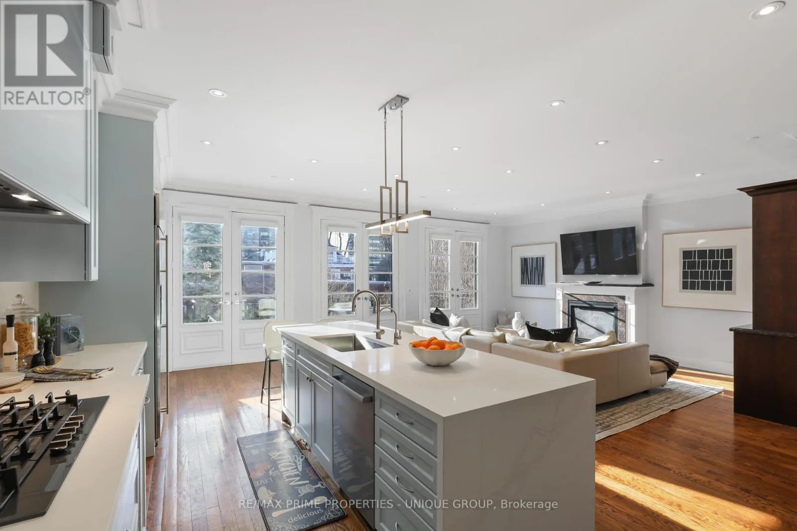 Cross Streets: Yonge and St. Clair. ** Directions: Yonge and St.Clair. Luxurious Midtown Property. A Detached 2 1/2-storey Georgian-style home with 4,960 sq ft of beautifully finished living space.Custom built in 2008, this exceptional property showcases soaring ceilings, expansive principal rooms, and an open-concept layout ideal for both everyday living and elegant entertaining.Situated on a premium 30 x 174 ft pool-sized lot, set back from the street for added privacy, this remarkable home is located north of St. Clair in prime Midtown Toronto, between Yonge Street and Avenue Road.This 4-bedroom, 5-bathroom residence has been extensively updated, including a stunning new kitchen (2025) featuring quartz counters and modern cabinetry. The main floor offers a private den, and an impressive open-concept dining room, kitchen, and family room. Three sets of double doors open from the great room to a spectacular west-facing terrace - perfect for seamless indoor-outdoor living. Gas fireplaces are located in both the living room and family room.The second floor features a luxurious primary retreat with abundant closet space and a spa-inspired 5-piece ensuite. A second bedroom on this level includes a walk-in closet and private 3-piece ensuite.The third floor offers a beautiful third bedroom suite with a 4-piece ensuite and sliding glass doors leading to a secluded west-facing terrace. A spacious den/storage area on this level presents the option for an additional bedroom.The bright, above-grade lower level boasts a large recreation room and a fourth (or fifth)bedroom. Three double doors lead to an expansive deck with stairs descending to a generous fenced backyard - ideal for family enjoyment and entertaining. Elevator access from the garage services all levels of the home, providing exceptional convenience. A long private driveway with side parking pad and garage offers ample parking options. Steps to fine restaurants, banks, subway, groceries, LCBO, and premier shopping. (id:27476)