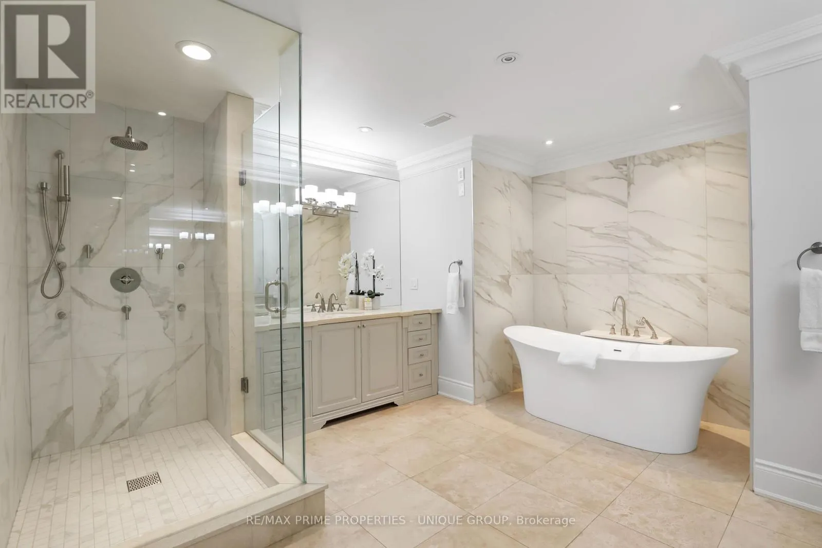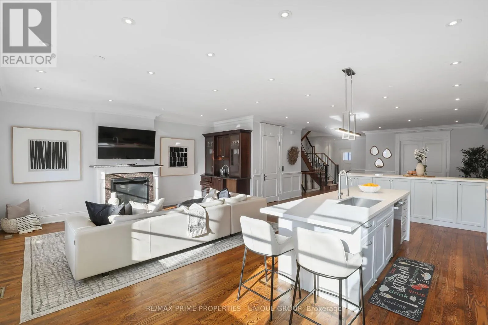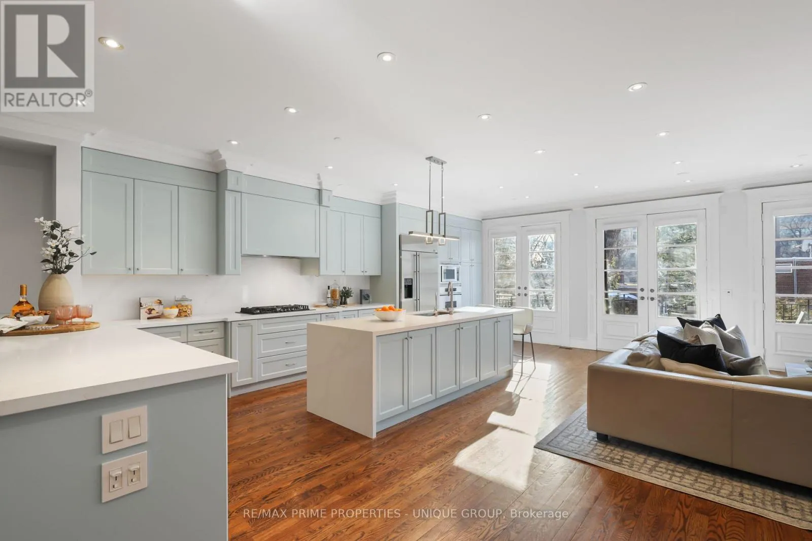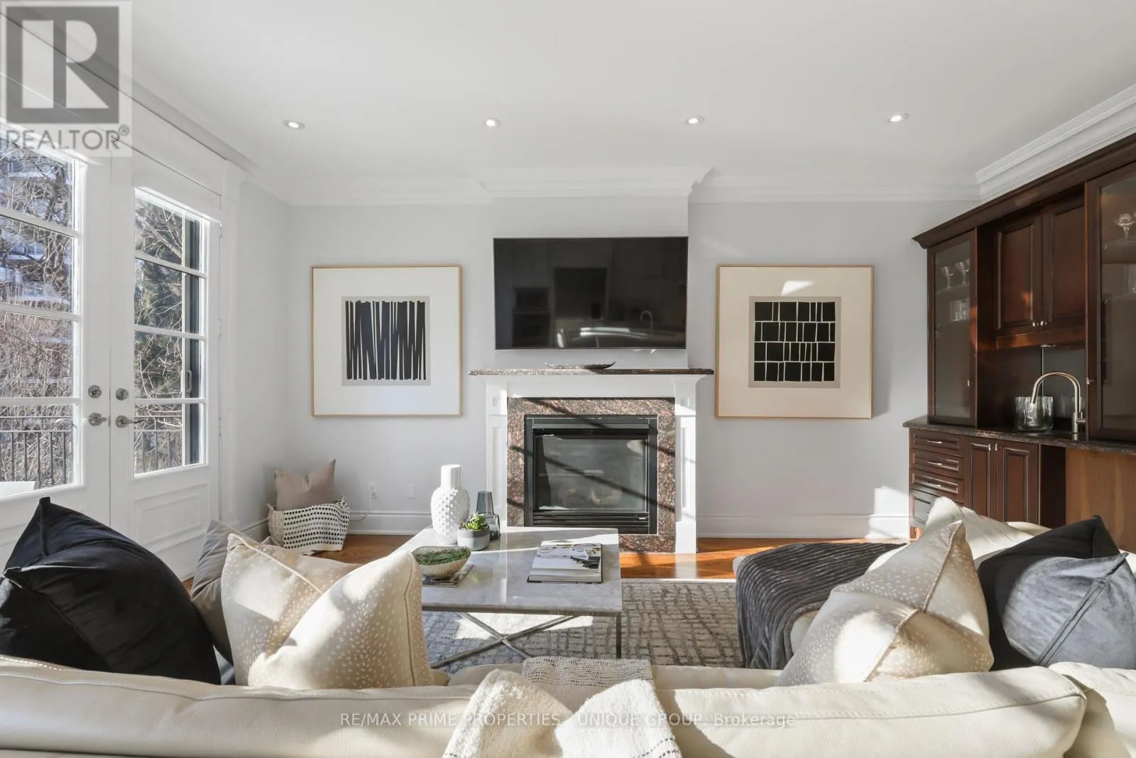 Cross Streets: Yonge and St. Clair. ** Directions: Yonge and St.Clair. Luxurious Midtown Property. A Detached 2 1/2-storey Georgian-style home with 4,960 sq ft of beautifully finished living space.Custom built in 2008, this exceptional property showcases soaring ceilings, expansive principal rooms, and an open-concept layout ideal for both everyday living and elegant entertaining.Situated on a premium 30 x 174 ft pool-sized lot, set back from the street for added privacy, this remarkable home is located north of St. Clair in prime Midtown Toronto, between Yonge Street and Avenue Road.This 4-bedroom, 5-bathroom residence has been extensively updated, including a stunning new kitchen (2025) featuring quartz counters and modern cabinetry. The main floor offers a private den, and an impressive open-concept dining room, kitchen, and family room. Three sets of double doors open from the great room to a spectacular west-facing terrace - perfect for seamless indoor-outdoor living. Gas fireplaces are located in both the living room and family room.The second floor features a luxurious primary retreat with abundant closet space and a spa-inspired 5-piece ensuite. A second bedroom on this level includes a walk-in closet and private 3-piece ensuite.The third floor offers a beautiful third bedroom suite with a 4-piece ensuite and sliding glass doors leading to a secluded west-facing terrace. A spacious den/storage area on this level presents the option for an additional bedroom.The bright, above-grade lower level boasts a large recreation room and a fourth (or fifth)bedroom. Three double doors lead to an expansive deck with stairs descending to a generous fenced backyard - ideal for family enjoyment and entertaining. Elevator access from the garage services all levels of the home, providing exceptional convenience. A long private driveway with side parking pad and garage offers ample parking options. Steps to fine restaurants, banks, subway, groceries, LCBO, and premier shopping. (id:27476)