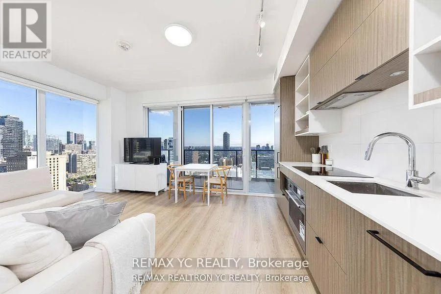 Yonge & Dundas Welcome Home! This exceptional residence is situated in the prestigious downtown core, offering clear and unobstructed views to the North and East, ensuring an abundance of natural light throughout the day-truly a rare find in downtown. The unit features 9ft ceilings and anopen-concept living and dining area that flows seamlessly onto a spacious balcony. High-end built-in appliances enhance the modern aesthetic, while all bedrooms boast large windows, providing ample daylight and eliminating any interior bedrooms or sliding doors. The primary bedroom includes an ensuite shower for added convenience. This prime location is surrounded by renowned amenities, including the Eaton Centre, TMU, major banks, restaurants, and shops. Conveniently located just steps from Dundas Subway Station, this unit comes with one parkingspace and one locker, making it ready for immediate move-in. Don't miss this opportunity to experience downtown living at its finest! *Includes One Parking and One Locker (id:27476)