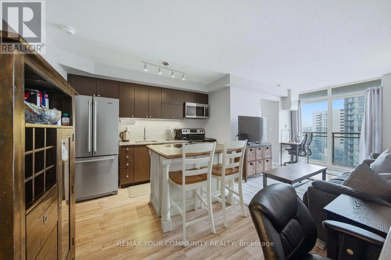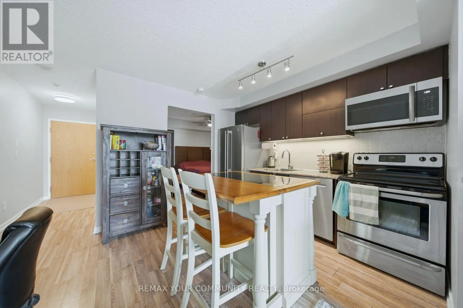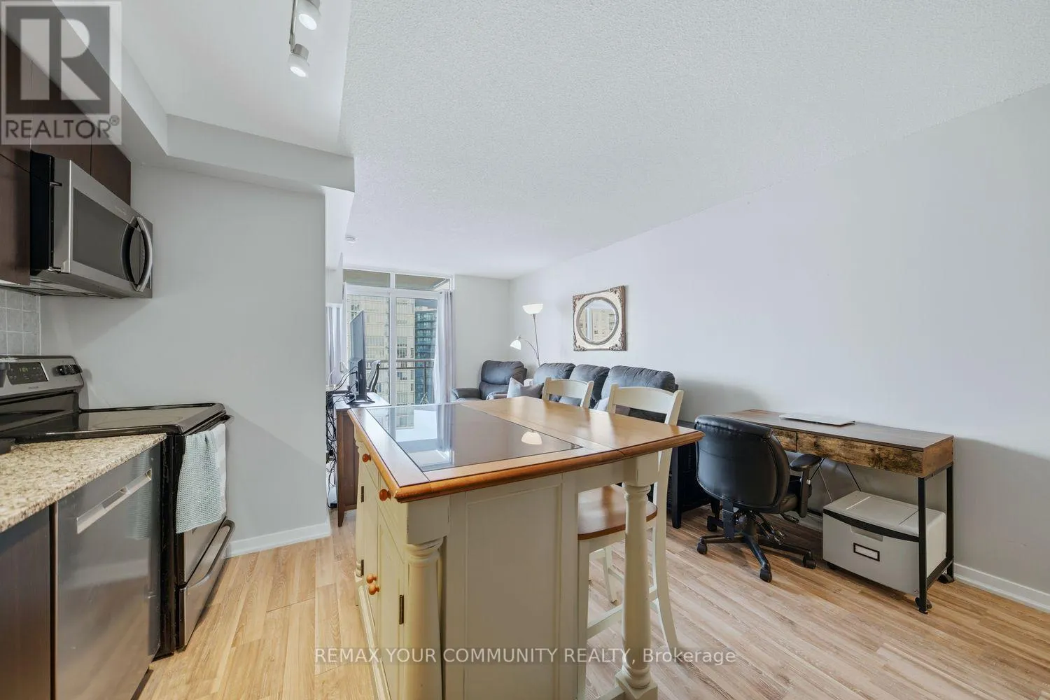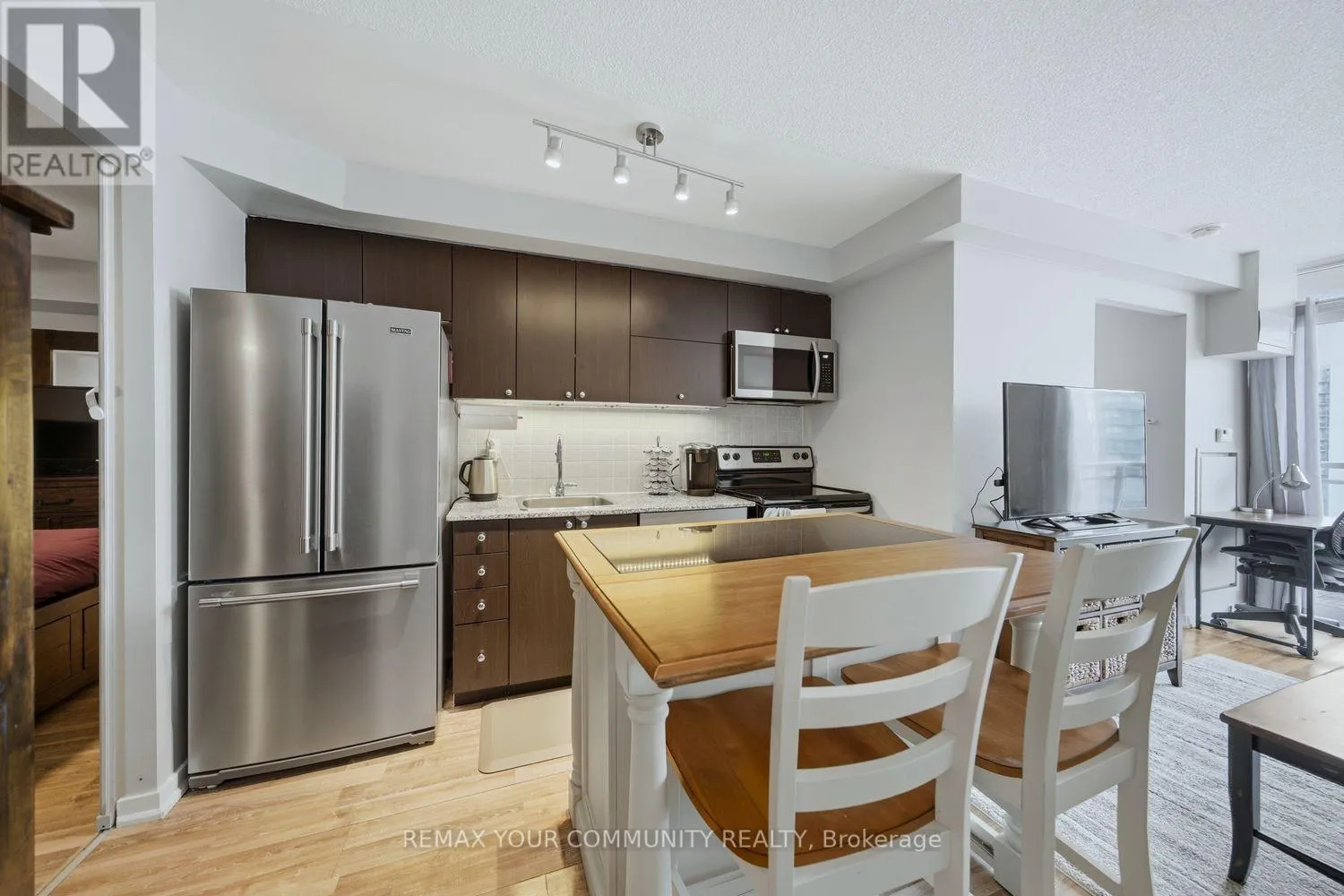King W and Dufferin Welcome to The Bridge Condos, where the best of King West and Liberty Village collide. This bright and functional 2-bedroom, 1-bath suite offers a highly functional split-bedroom layout and breathtaking views of the CN Tower and Toronto skyline. The open-concept living and dining area is filled with natural light and has more than enough space for a desk! The kitchen features stainless steel appliances and ample storage. Both bedrooms are generously sized and share a convenient semi-ensuite 4-piece bathroom, creating a smart and functional layout for comfortable living. The best value for a 2-bedroom in the City of Toronto, this is an incredible opportunity to own a suite with spectacular views in one of the city's most vibrant and connected neighbourhoods. The unit includes 1 parking space and 1 locker. Residents enjoy excellent amenities including a gym & indoor pool. Just steps to shops, restaurants, and cafés. Grocery and TTC at your doorstep + the future King-Liberty SmartTrack GO Station. Easy access to the Gardiner Expressway makes commuting effortless. Sellers upgraded A/C in the unit to have vents in both bedrooms. (id:27476)