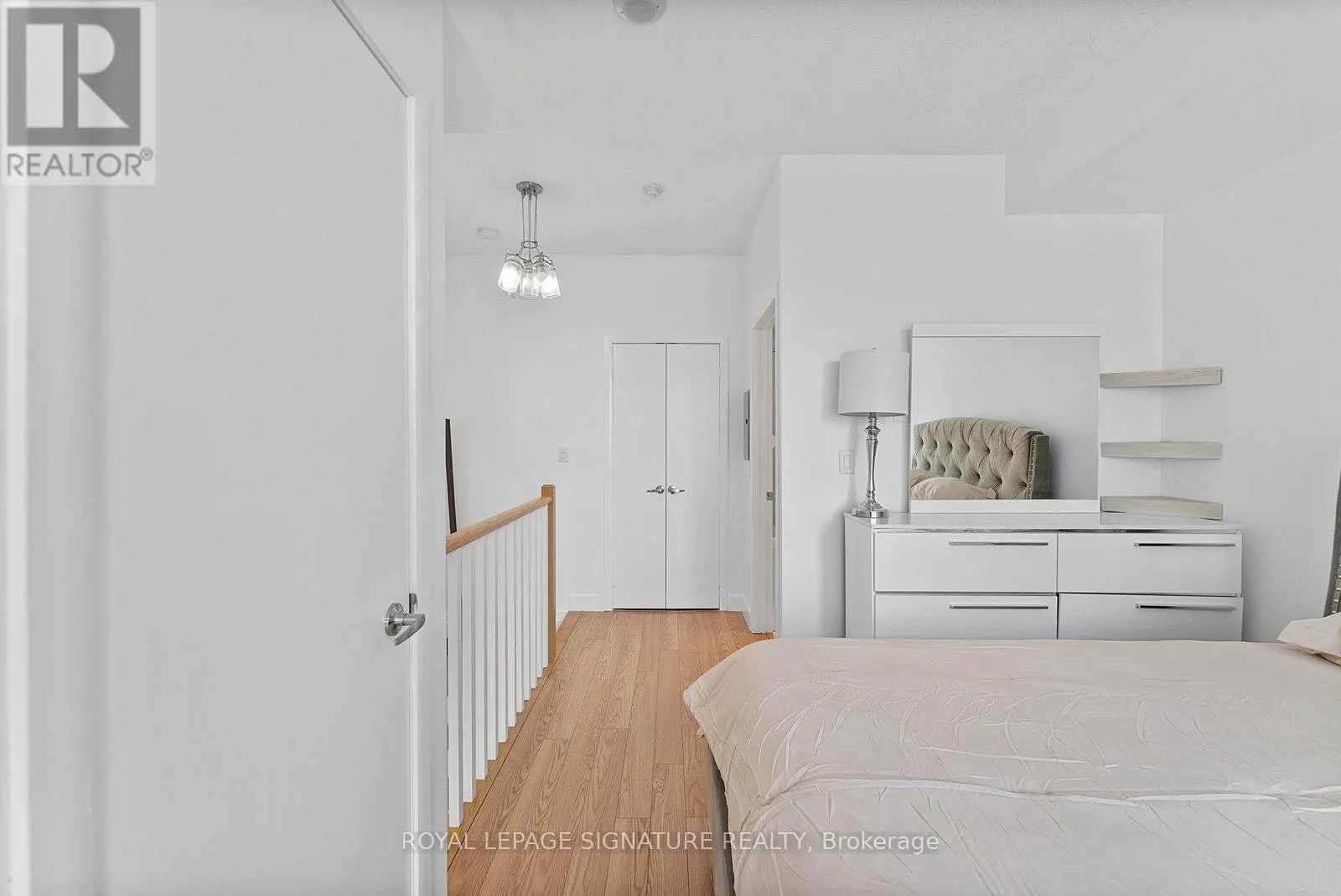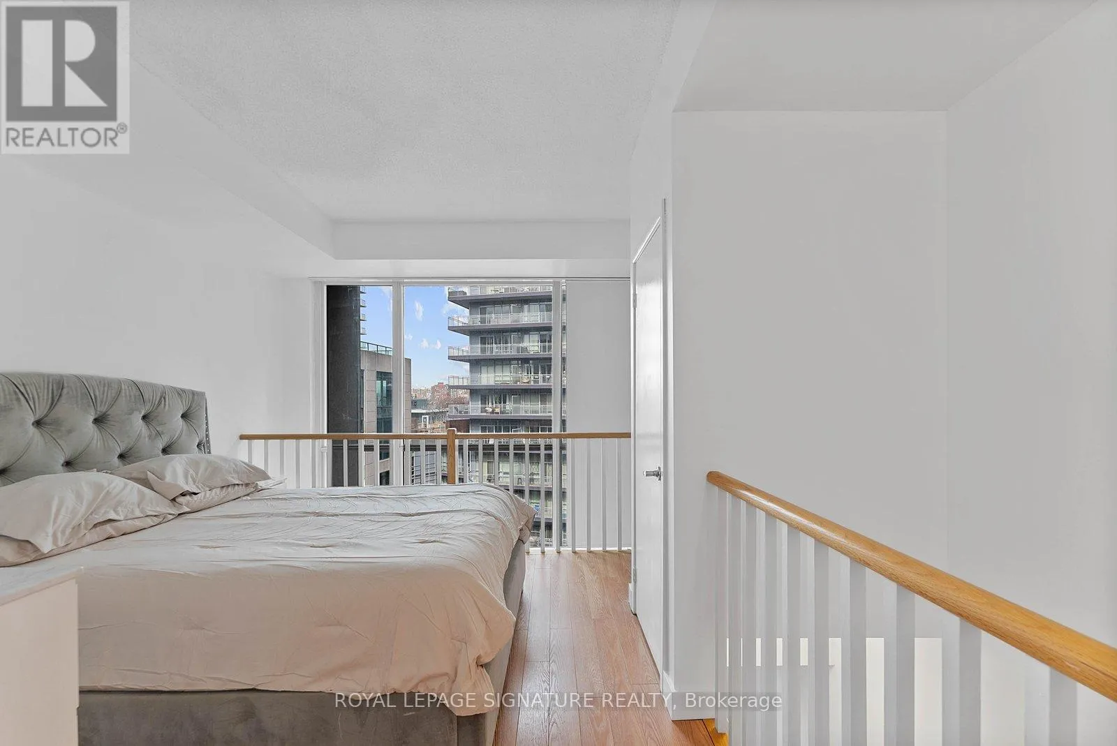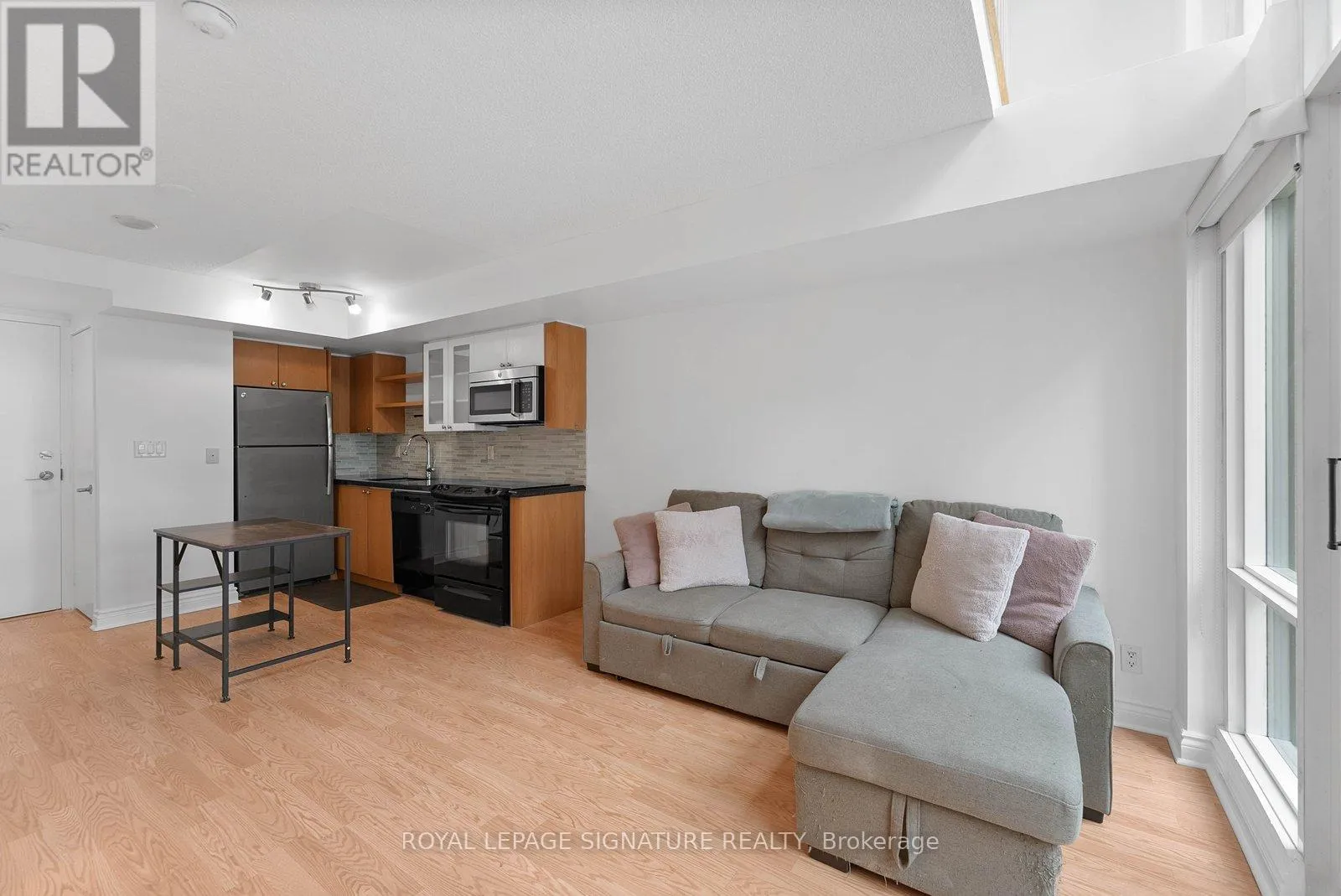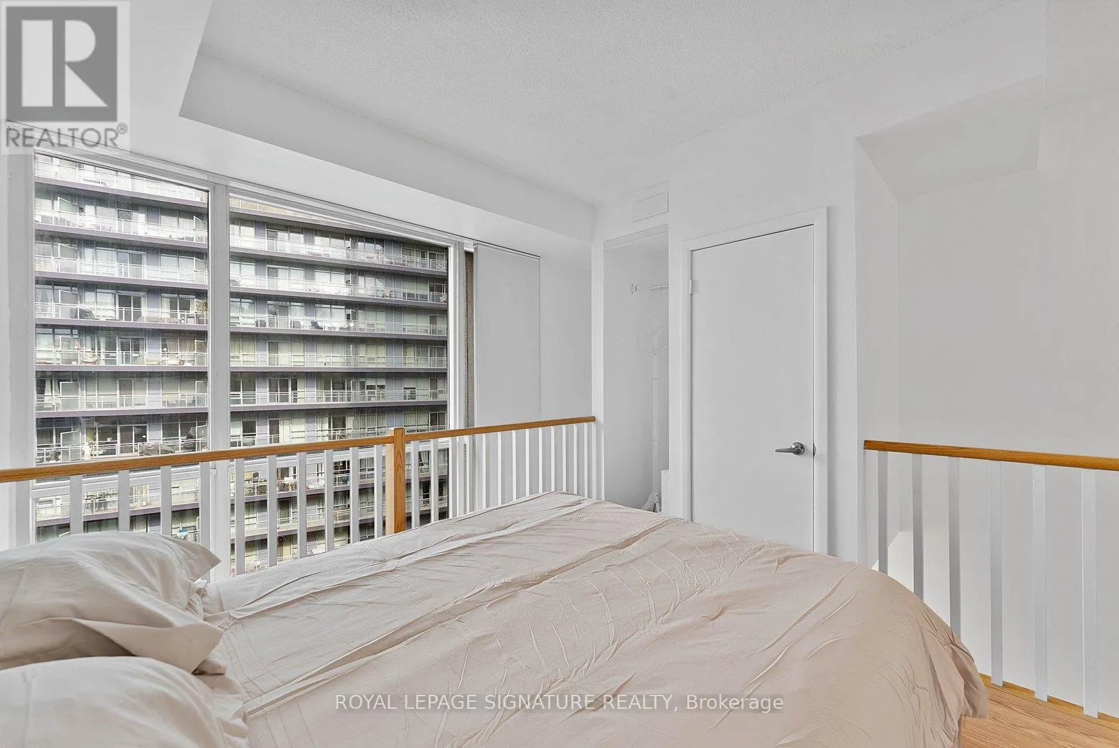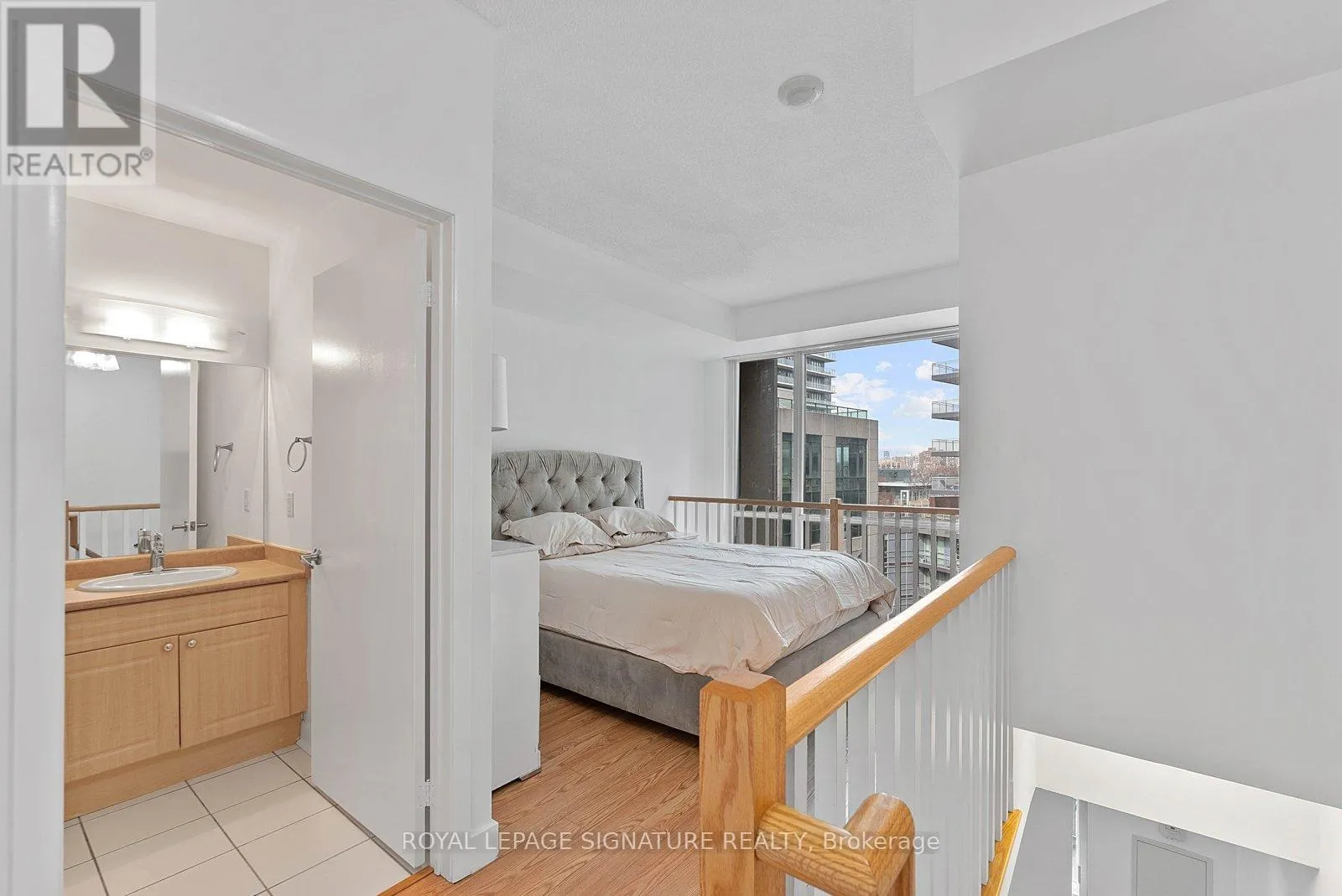 Bathurst And Lake Shore Turn-key and freshly painted, this bright two-storey suite offers a functional layout and exceptional natural light. The kitchen is generously sized and overlooking the living room, creating an open and connected main living space . The living room features a walk-out to the balcony and dramatic two-storey, floor-to-ceiling windows that fill the suite with natural light. A convenient 2-piece powder room completes the main level. Upstairs, the spacious bedroom includes in-suite laundry and a private ensuite bath, offering a comfortable and practical retreat. Ideally located close to everyday amenities, with Loblaws across the street and the Fleet streetcar at your doorstep. Enjoy being minutes from the waterfront and green space at Coronation Park. Parking and locker included. (id:27476)