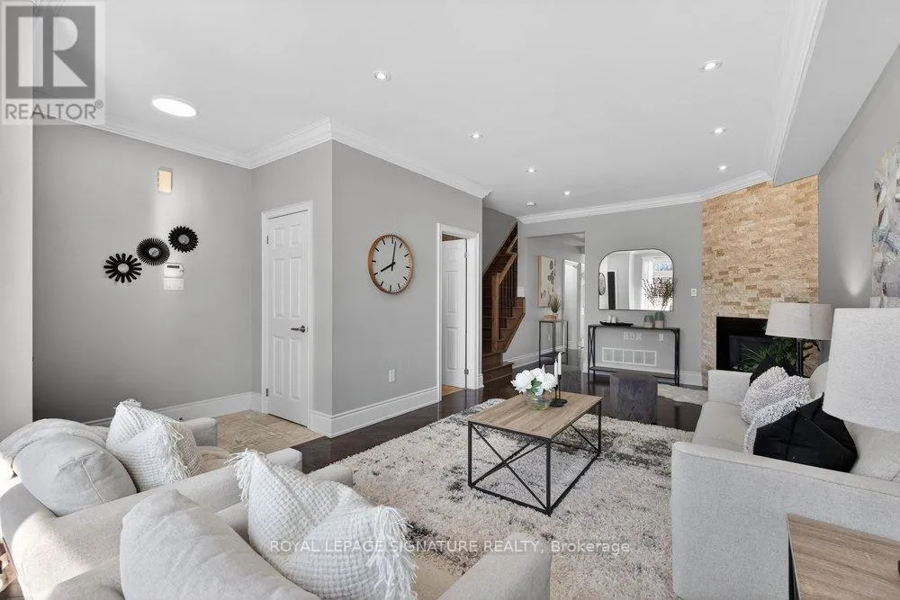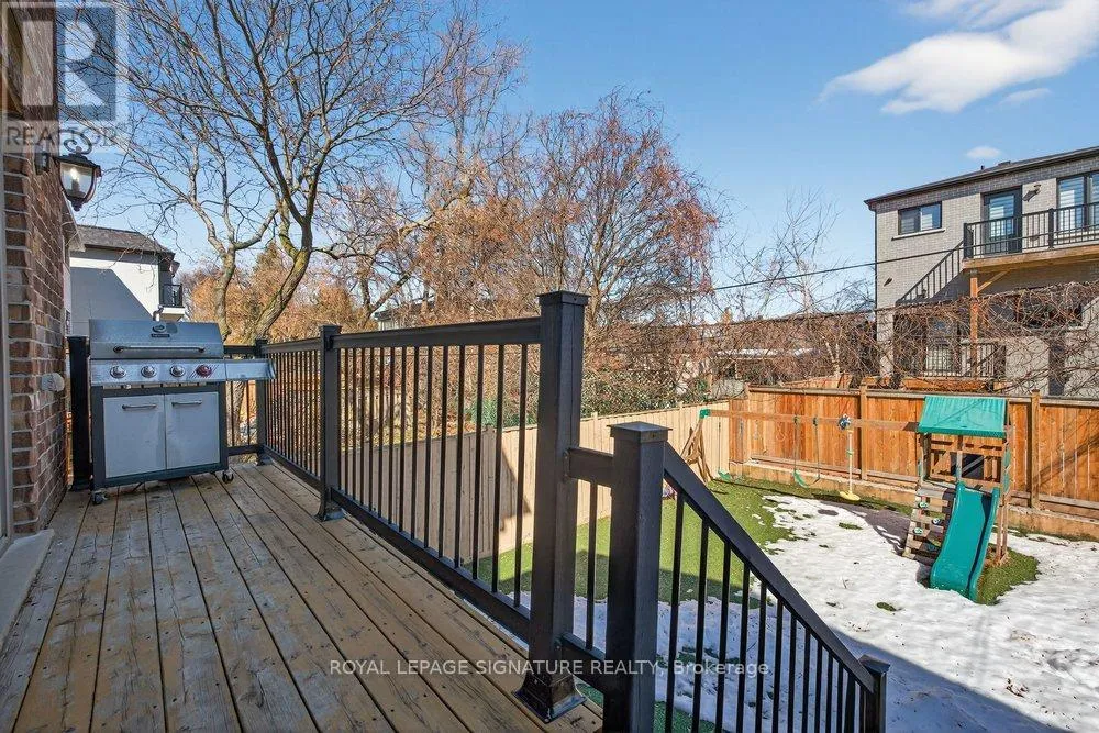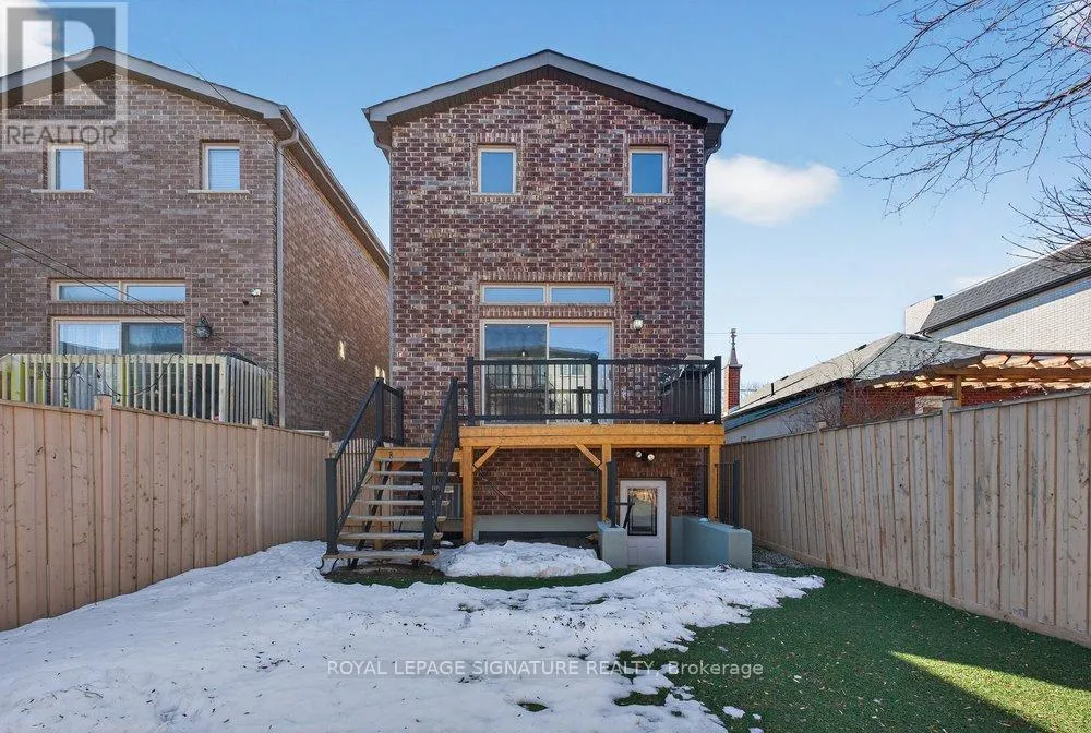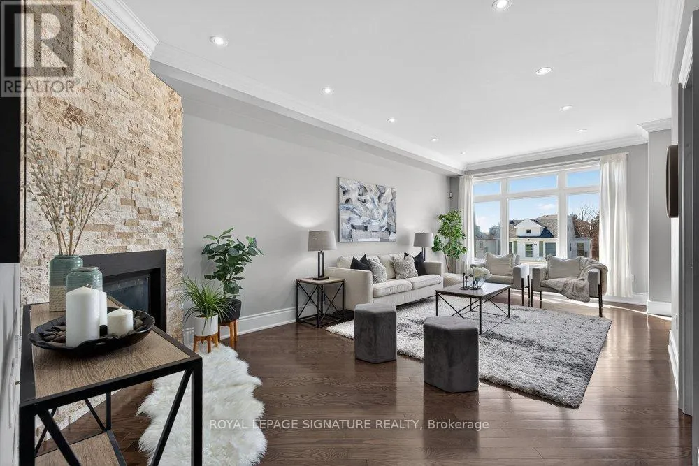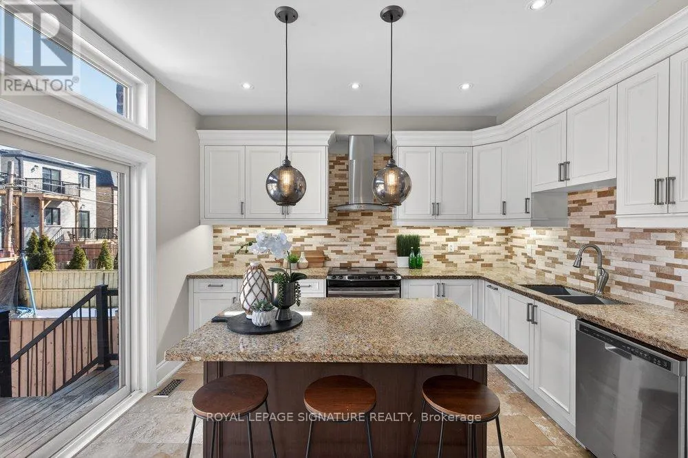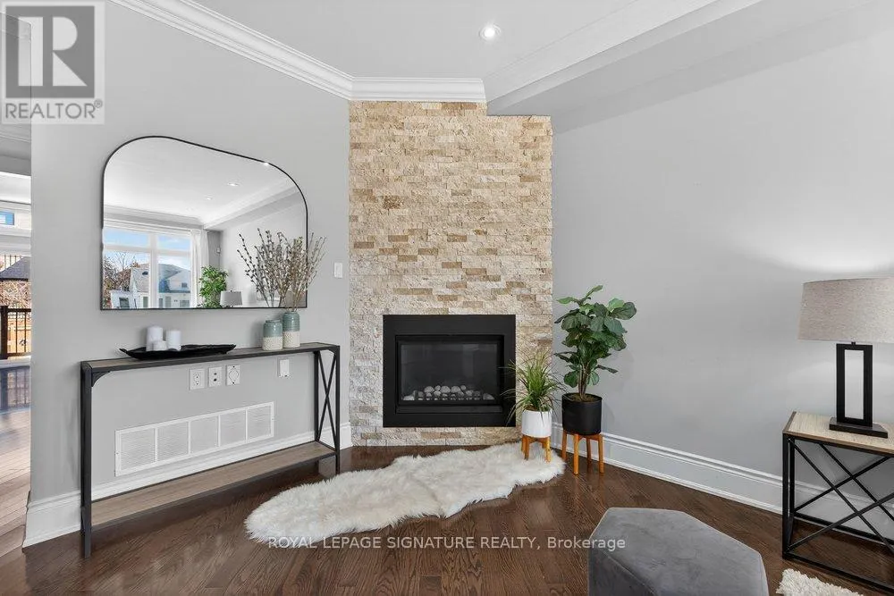 Victoria Park & St.Clair Ave. Nestled in the desirable Clairlea community, this elegant Bexhill residence showcases thoughtful design and exceptional craftsmanship throughout. Refined finishes include crown mouldings, LED lighting, rich hardwood flooring, and expansive windows that fill the home with natural light. The living room is both stylish and inviting, centred around a built-in gas fireplace set against a striking stone feature wall. A separate dining room offers an intimate setting for family meals and entertaining. The chef's kitchen blends form and function with granite countertops, a centre island with seating for three, built-in stainless steel appliances, and dramatic floor-to-ceiling sliding doors that open to a spacious deck overlooking the landscaped backyard. The primary suite is a serene retreat featuring a vaulted ceiling, crown moulding, double closets, and a spa-inspired 5-piece ensuite with a double vanity and Jacuzzi tub. Two additional bedrooms share a well-appointed Jack & Jill 5-piece bathroom, ideal for family living. The fully finished lower level offers a bright, open-concept space with large above-grade windows and a walkout to the private, fenced backyard. The Basement includes a full washroom and can be used as a 4th bedroom or better yet, add a small kitchen to the laundry room and have a separate bachelor unit! Designed for ease and enjoyment, the backyard is finished with low-maintenance turf-perfect for outdoor entertaining and everyday living. (id:27476)