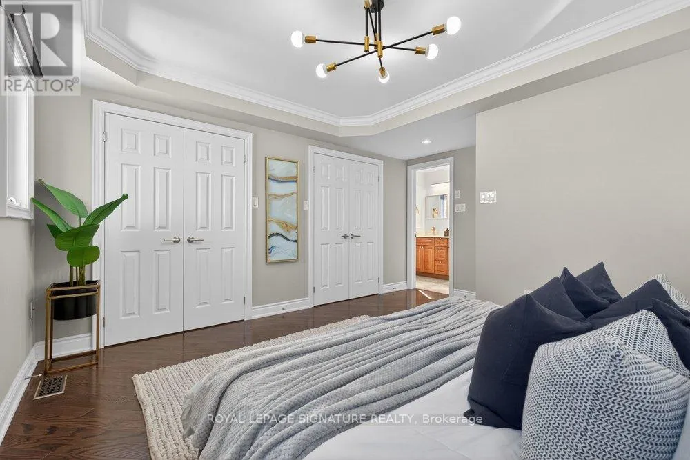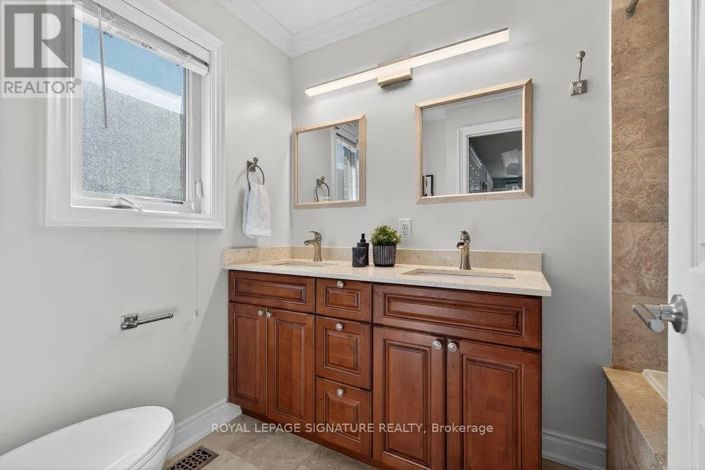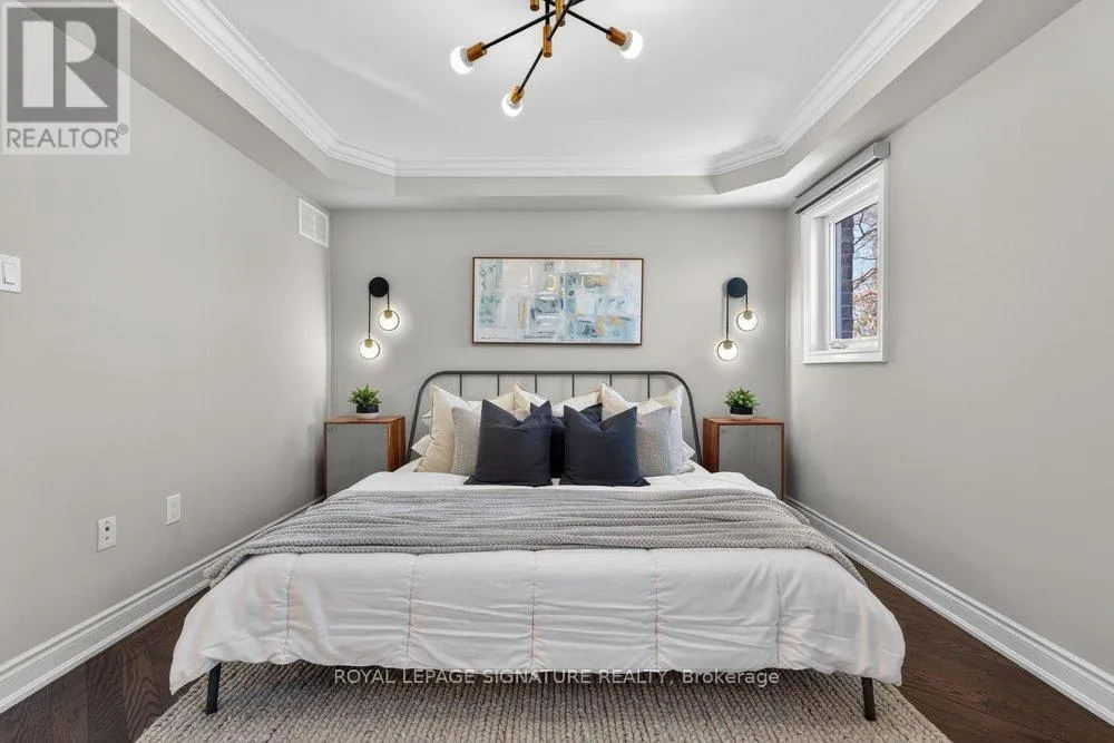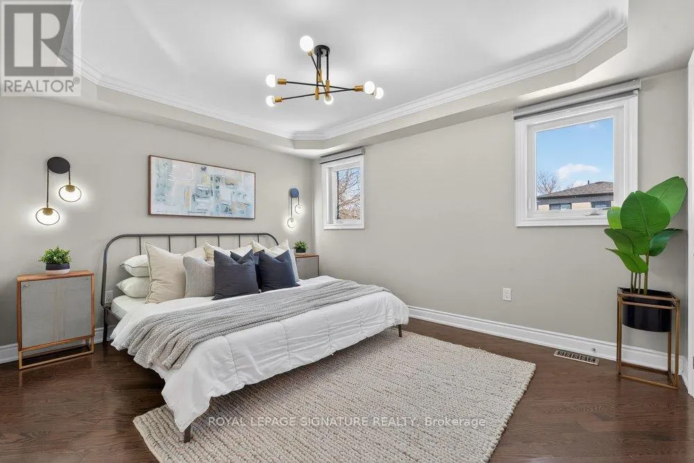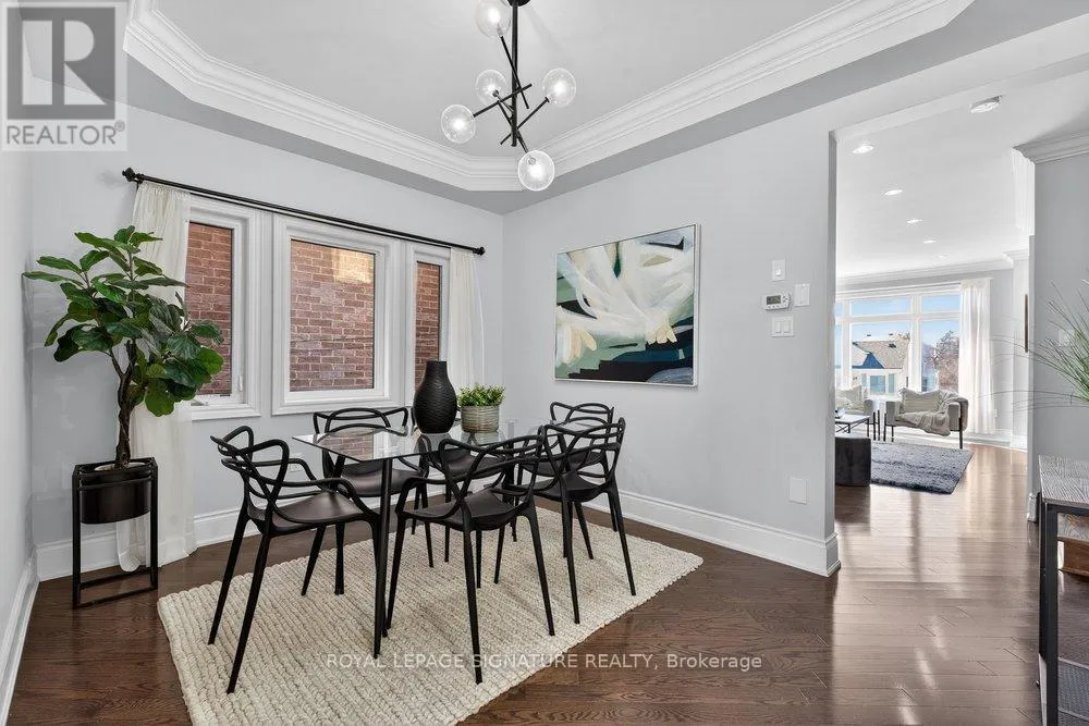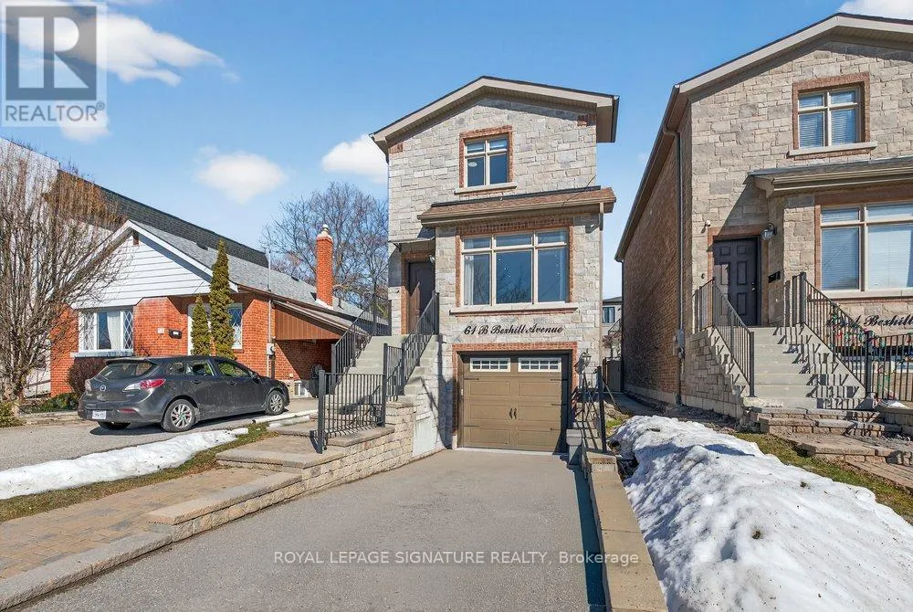 Victoria Park & St.Clair Ave. Nestled in the desirable Clairlea community, this elegant Bexhill residence showcases thoughtful design and exceptional craftsmanship throughout. Refined finishes include crown mouldings, LED lighting, rich hardwood flooring, and expansive windows that fill the home with natural light. The living room is both stylish and inviting, centred around a built-in gas fireplace set against a striking stone feature wall. A separate dining room offers an intimate setting for family meals and entertaining. The chef's kitchen blends form and function with granite countertops, a centre island with seating for three, built-in stainless steel appliances, and dramatic floor-to-ceiling sliding doors that open to a spacious deck overlooking the landscaped backyard. The primary suite is a serene retreat featuring a vaulted ceiling, crown moulding, double closets, and a spa-inspired 5-piece ensuite with a double vanity and Jacuzzi tub. Two additional bedrooms share a well-appointed Jack & Jill 5-piece bathroom, ideal for family living. The fully finished lower level offers a bright, open-concept space with large above-grade windows and a walkout to the private, fenced backyard. The Basement includes a full washroom and can be used as a 4th bedroom or better yet, add a small kitchen to the laundry room and have a separate bachelor unit! Designed for ease and enjoyment, the backyard is finished with low-maintenance turf-perfect for outdoor entertaining and everyday living. (id:27476)