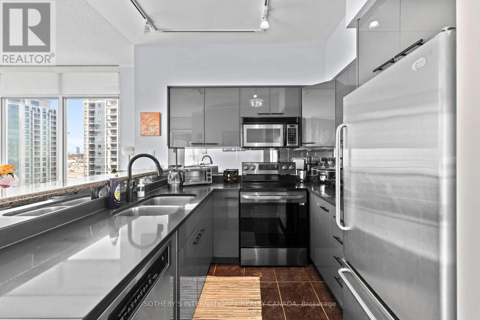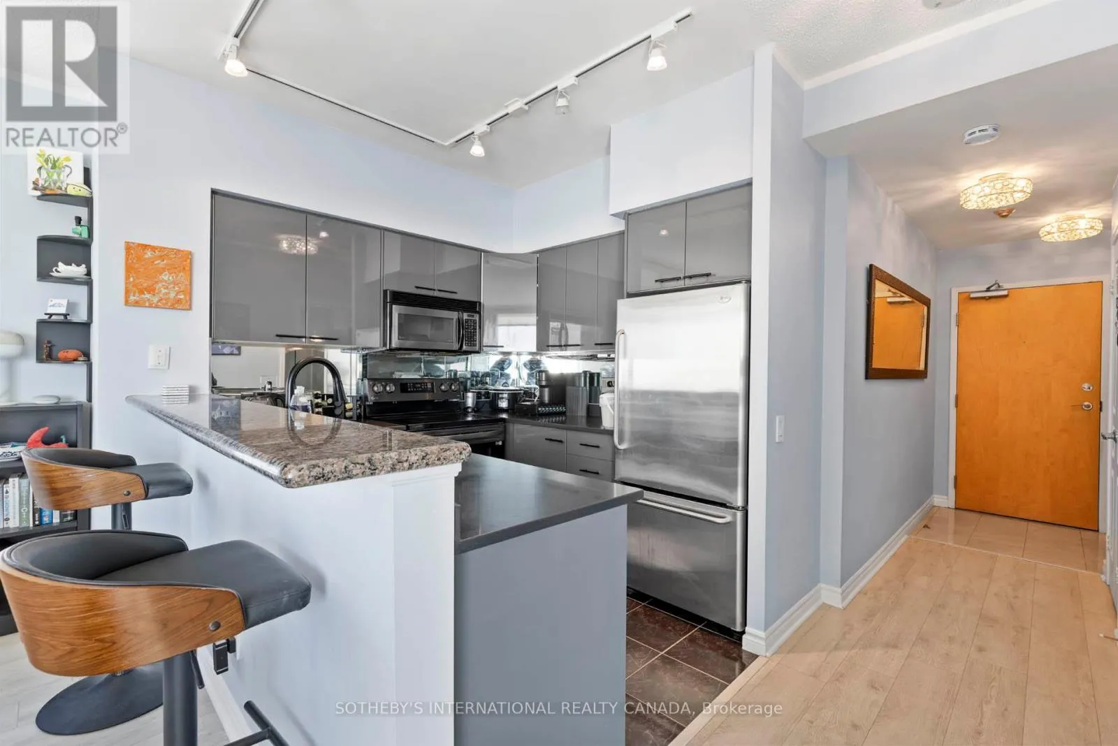 Lakeshore And Parklawn Lakefront Living At Grenadier Landing! Bright south-facing suite offering beautiful lake views in a highly sought-after waterfront community, enjoyed from the living room and private balcony. Upgraded modern kitchen with stainless steel appliances & cozy gas fireplace in the sun-filled living area. Spacious bedroom with California shutters & ample closet space. Wide plank flooring throughout. Includes parking & locker. Maintenance fees include utilities. Well-managed building with excellent amenities including concierge, gym, party room, guest suites, visitor parking & outdoor deck. Located in the vibrant Mimico waterfront community, steps to parks, scenic trails, the lake, shops, restaurants, grocery stores & transit with easy access to downtown. A perfect blend of nature and city convenience.Some photos have been virtually staged. (id:27476)