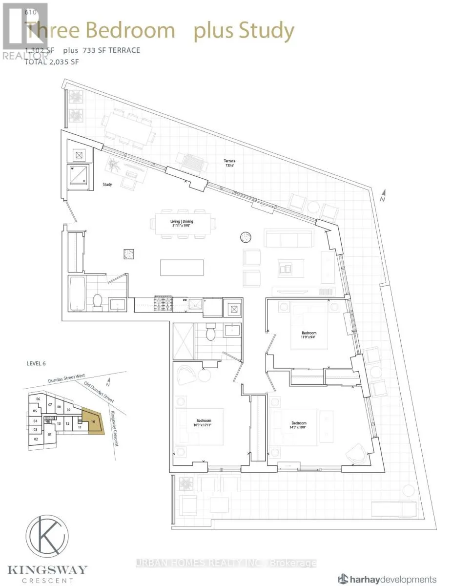 Dundas St W & Royal York Rd This condo is 1,302 square feet and faces North, East and South, benefiting from natural light at all times of the day. The kitchen features beautiful Scavolini cabinetry with Fisher & Paykel appliances (double door fridge, full sized gas oven, and wide sink) an island with lots of storage and natural stone counter tops complete the kitchen. With plenty of room for entertaining, the condo benefits from 9 foot smooth finished ceilings and hardwood flooring throughout. Outside you will love the 733 square foot terrace equipped with a gas BBQ connection and a water hose bib. (id:27476)