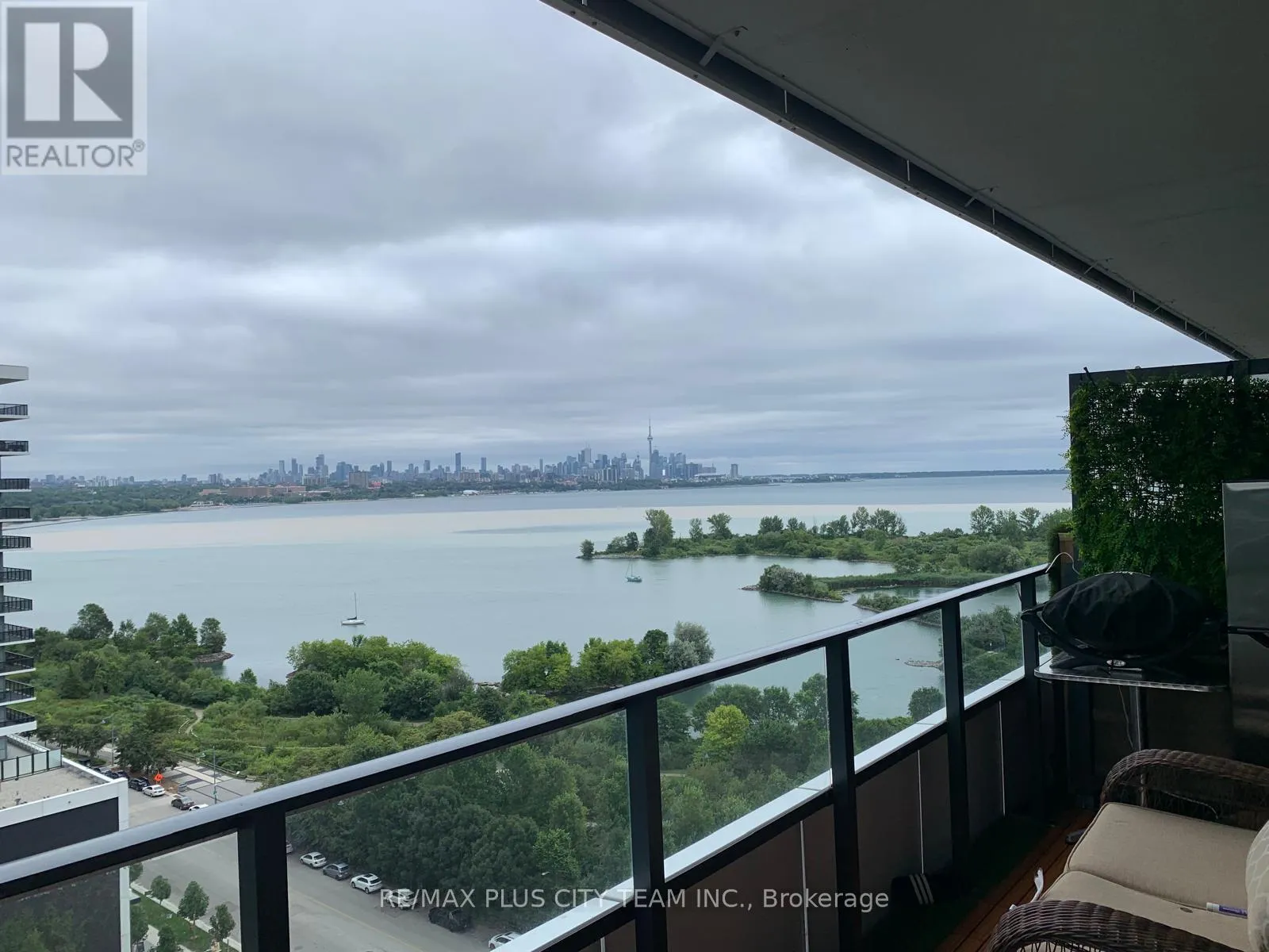 Lake Shore Blvd W & Park Lawn Rd Live in one of Humber Bay Shores' most recognizable waterfront residences at Eau Du Soleil. This well-designed 1-bedroom + den suite offers a functional layout with modern finishes and comfortable living space. Hardwood flooring runs throughout the unit, while the contemporary kitchen features quartz countertops, stainless steel appliances, and ample cabinetry for storage. The open living and dining area is bright and inviting, with access to a private balcony that offers lake and city outlooks. The separate den provides flexibility for a home office, study space, or additional sitting area. The spacious bedroom includes generous closet space and easy access to the main bathroom. Residents of Eau Du Soleil enjoy access to an impressive collection of amenities, including two fully equipped fitness centres, an indoor pool, hot tub, sauna and steam rooms. The building also offers a variety of entertainment and lifestyle spaces such as private theatres, party rooms, guest suites, business lounge, children's playroom, spinning and training studios, and the exclusive Water Lounge, all supported by 24-hour concierge and security. Located steps from the waterfront, scenic trails, cycling routes to downtown Toronto, restaurants, TTC transit, Mimico GO Station, and major highways, this home offers convenient access to everything the vibrant Humber Bay Shores community has to offer. (id:27476)