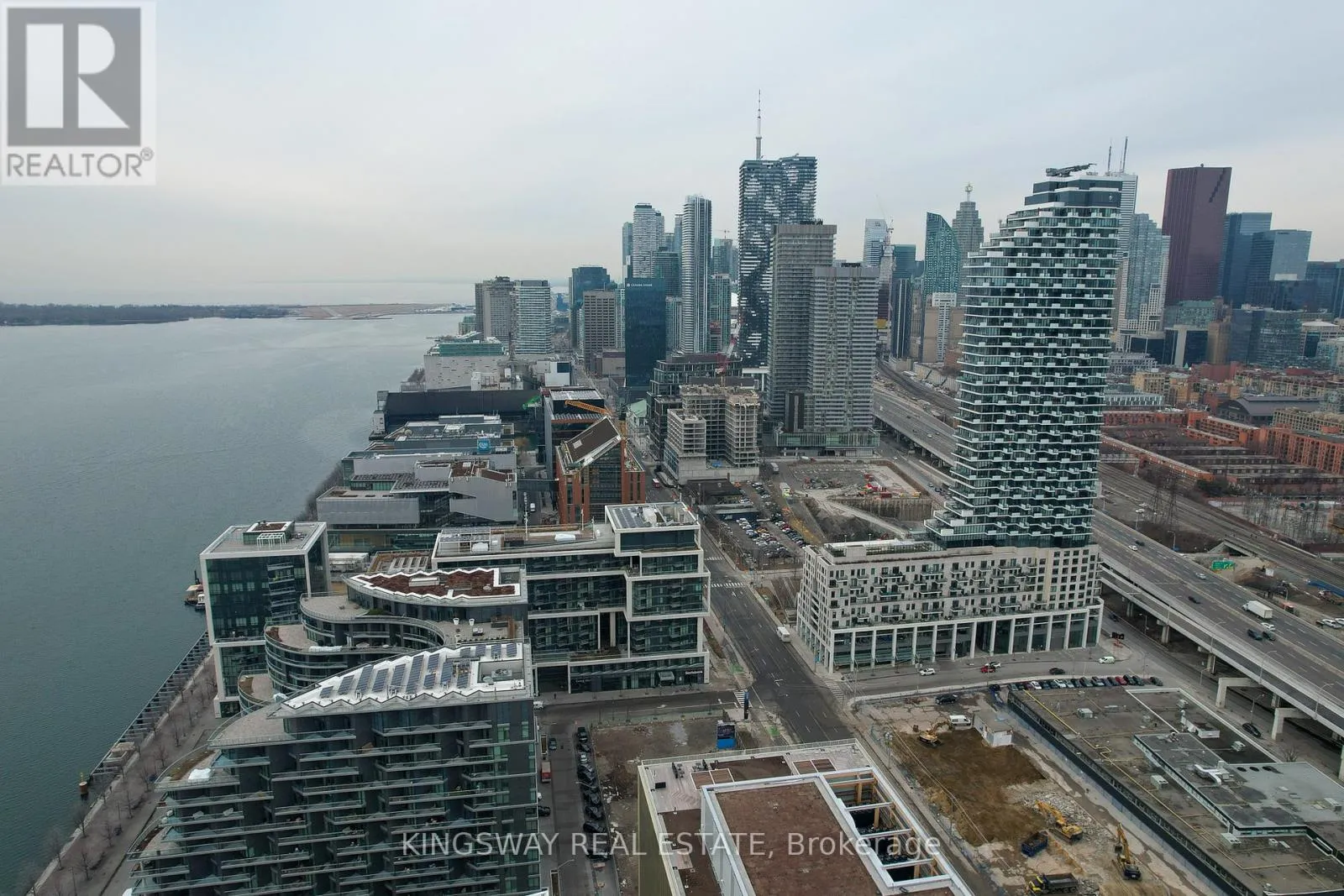 Queen Quay East/ E of Jarvis Welcome to Modern Aquavista at Bayside waterfront residence offering unobstructed Lake Ontario view. This thoughtfully designed one-bedroom suite features 10 feet Ceiling Height, Huge windows and Walk-out balcony, creating a seamless indoor-outdoor lifestyle. The efficient open layout includes a stylish kitchen with integrated stainless-steel appliances, Quartz Counter Top, En-suite laundry/storage room. 24-hours concierge, fitness centre, sauna, pool, rooftop terrace, media and party rooms. Steps to Sugar Beach, Sherbourne Common, and the waterfront promenade, with easy access to TTC, Union Station, and the Gardiner Expressway. Experience lakefront tranquility while remaining minutes from CN Tower/downtown, A superbly managed building with exceptional resort-quality amenities. MUST SEE!! (id:27476)