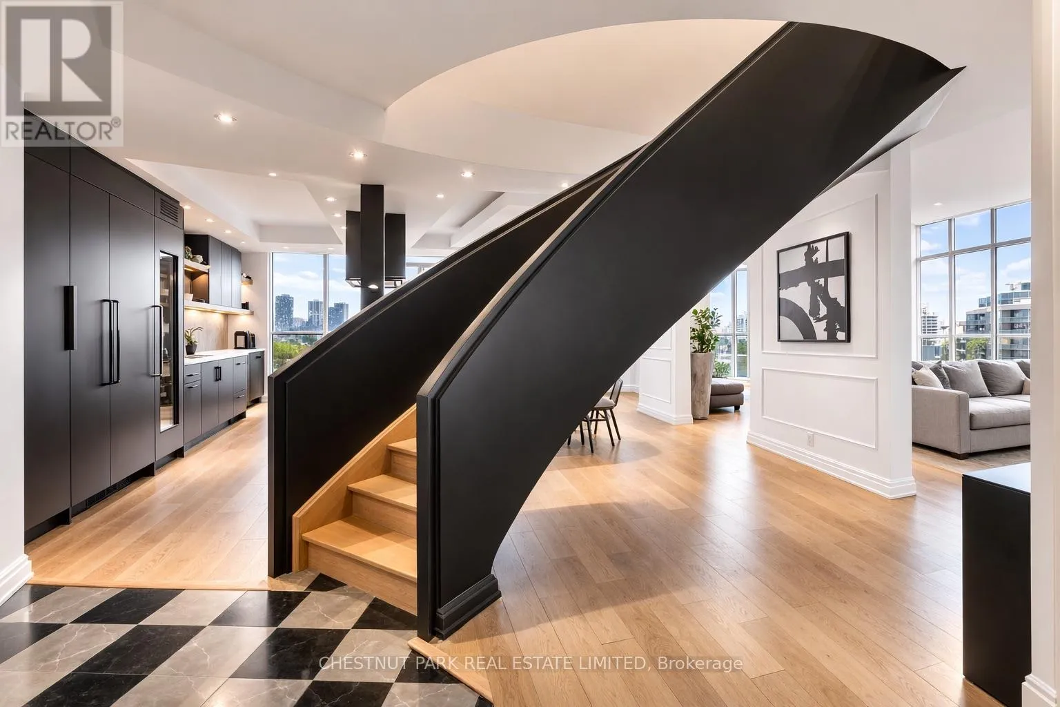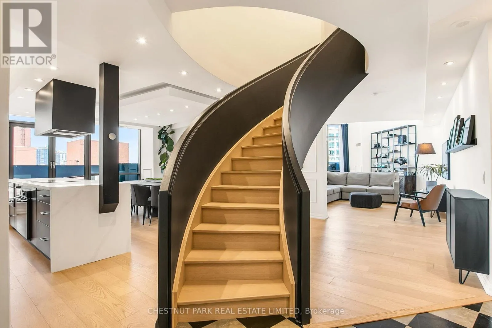 Cross Streets: Davenport Rd. & Bay St. ** Directions: Bay & Davenport. Experience luxury in this exceptionally renovated penthouse, exquisitely reimagined to evoke the refined elegance & glamour of a Manhattan home in the sky. Nestled in Yorkville -Toronto's most coveted enclave of high-end fashion &world-class dining, this prestigious suite offers an elevated urban lifestyle. Thoughtfully re-designed with an emphasis on space, light & premium materials, this expansive 2-storey penthouse with 3 bedrooms & 3 renovated bathrooms, impresses with 2,256 sq ft of sophisticated interior living space. Enter through a gracious foyer into a luminous interior where an architectural staircase makes a statement & abundant natural light create an atmosphere of calm & grandeur. Wide plank 6.5" white oak engineered hardwood floors extend throughout, enhanced by dramatic arched & floor-to-ceiling windows that frame the city skyline. The designer kitchen features Caesarstone counters, a micro cement concrete finished backsplash, top-tier appliances (Liebherr, Gaggenau & Fisher & Paykel) & custom cabinetry tailored for both culinary passion & curated entertaining. Elegant transitions between spaces make every corner feel intentional & luxurious. The family room has dramatic double height 18'6" ft ceilings, a walkout to the terrace & a separate space that could be partitioned off to create a main floor office. Upstairs, a generous primary suite features wrap-around windows, 2 walk-in closets & an oversized spa-like bathroom with a soaker tub, double vanities & a custom glass shower ensuring comfort without compromise. 2 additional bedrooms & a renovated 3 pc bathroom complete the 2nd floor. Step onto your private balconies -these outdoor living spaces provide the perfect backdrop for morning coffee or evening soirées. With 2 parking spots, a locker, & access to building amenities, this residence is an exceptional opportunity for the discerning buyer seeking turnkey elegance, architectural character & the unmistakable feel of a penthouse in the sky. (id:27476)
