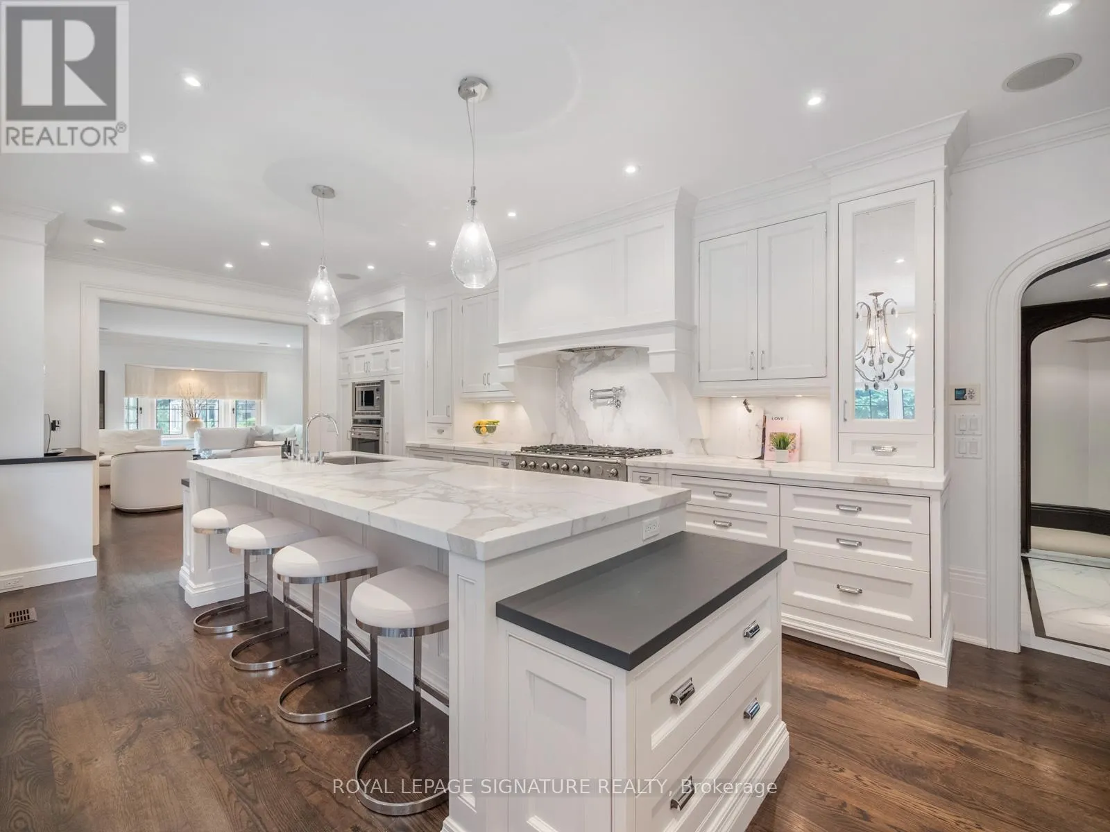 BROWSIDE AVE & OLD FOREST HILL RD This landmark Tudor residence is located on one of the most prestigious streets in Forest Hill South. Owned by only two families since its original construction, the home has been taken back to the studs and redesigned with an uncompromising commitment to quality. Every element has been elevated blending timeless architectural charm with refined, modern finishes. Offering over 5,000 sq.ft. above grade (plus a fully finished lower level), the home opens with a grand marble-clad foyer framed by classic wood-panelled walls. The main level includes formal living and family rooms, both with gas fireplaces, and an entertainers dream kitchen featuring marble countertops and backsplash, gas-burning stove, oversized island, and top-tier built-in appliances. The formal dining room comfortably seats 12 and connects seamlessly to a private, landscaped backyard terrace. The second level is anchored by a tranquil primary suite with dual walk-in closets, a spa-inspired five-piece ensuite, and a gas fireplace. A second bedroom offers its own ensuite, dressing area, and an adjacent home office. The third floor features three more bedrooms with custom built-ins and a spacious family/rec room. The lower level includes a nanny/in-law suite, custom wine cellar, gym, laundry, storage, and a mudroom with direct access to the built-in two-car garage and private side entrance. Located just moments from Forest Hill Village, top-rated schools, and the area's finest parks and amenities, this is a rare opportunity to own one of Toronto's most iconic and sophisticated homes. (id:27476)