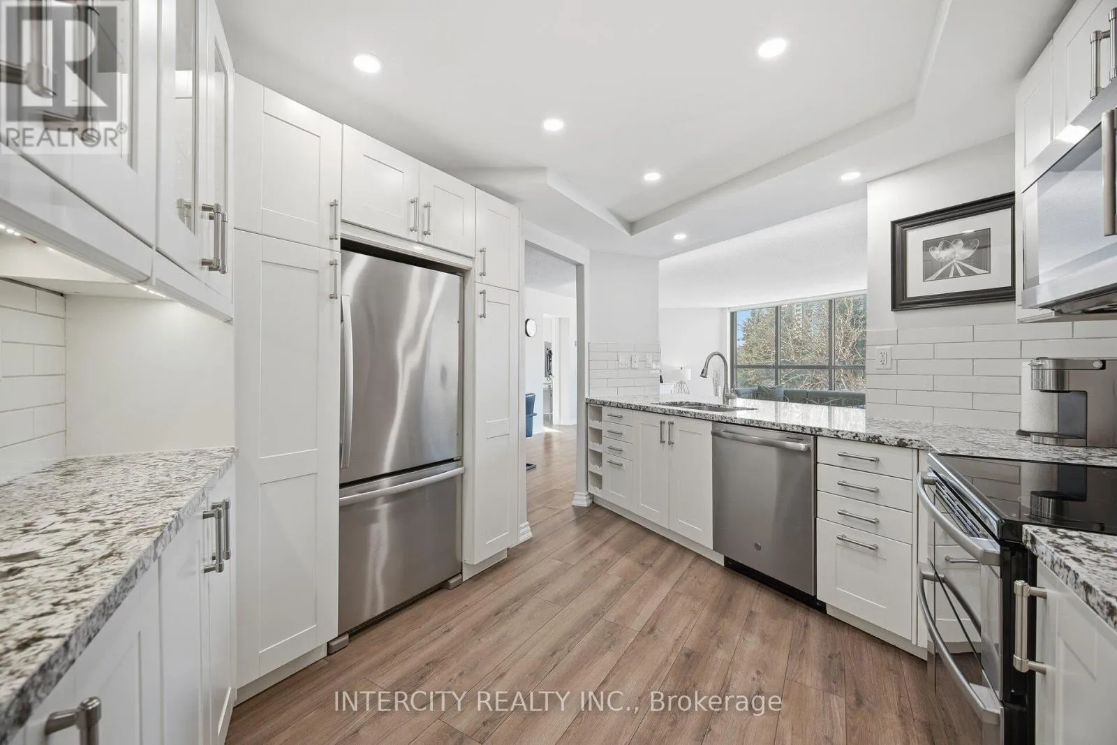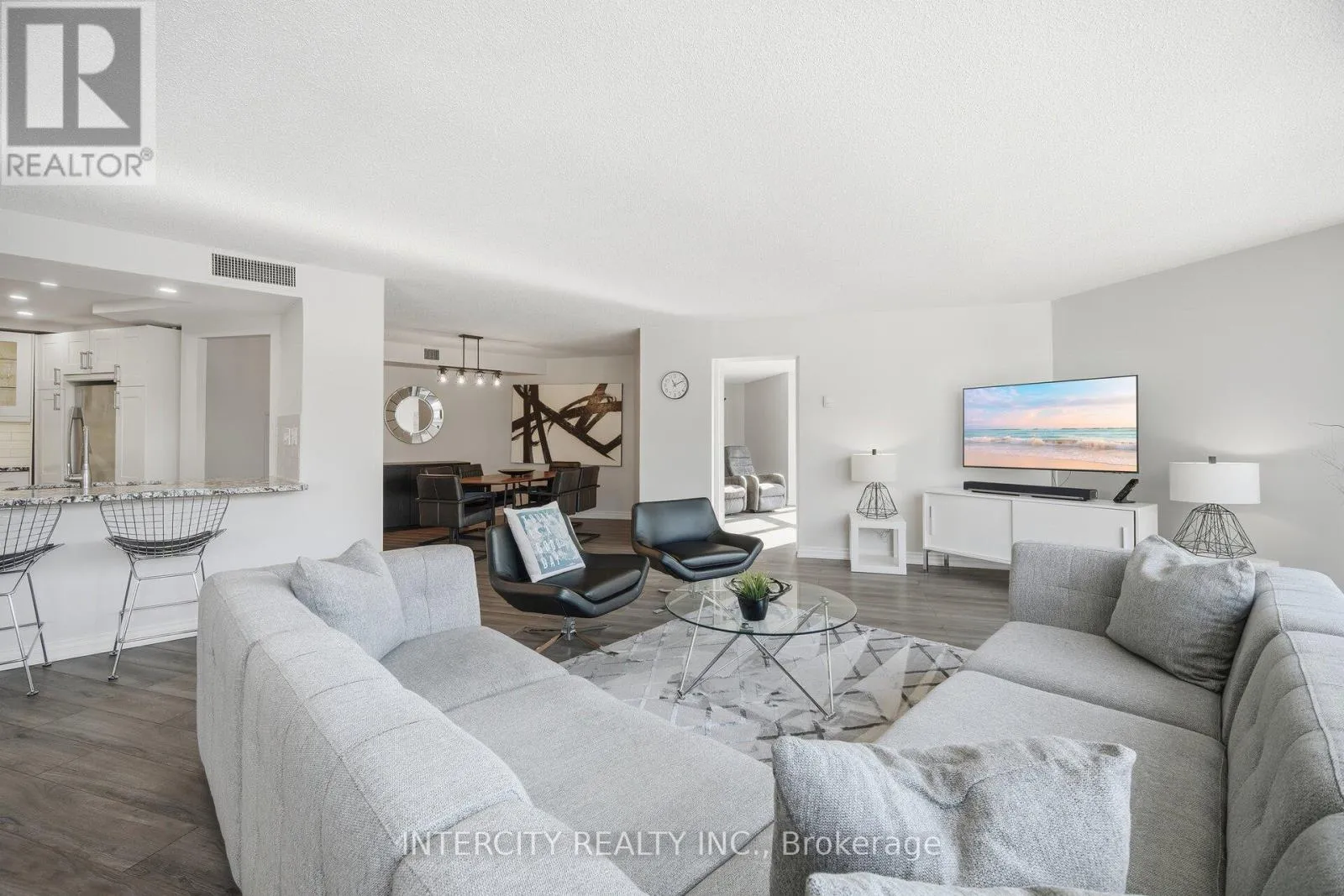 Islington/Hwy 401 "Lifestyle & Luxury" Resort Living Meets Urban Convenience in the Heart of Etobicoke Experience the perfect blend of nature and luxury in this sprawling, sun-filled residence. Nestled within 9.5 acres of award-winning gardens, this isn't just a condo-it's a lifestyle. Enjoy your morning coffee on the private balcony with serene, tree-lined views that make you forget you're in the city. With 22,000 sq. ft. of world-class amenities-including three tennis courts, indoor/outdoor pools, and a premier recreation center-it truly feels like living in a private country club. This "home-in-a-condo" has been meticulously updated, featuring a modern kitchen with granite countertops, sleek stainless steel appliances, and elegant pot lights throughout. Freshly painted and boasting fully renovated bathrooms, the layout offers both style and function with the added convenience of ensuite storage. (id:27476)
