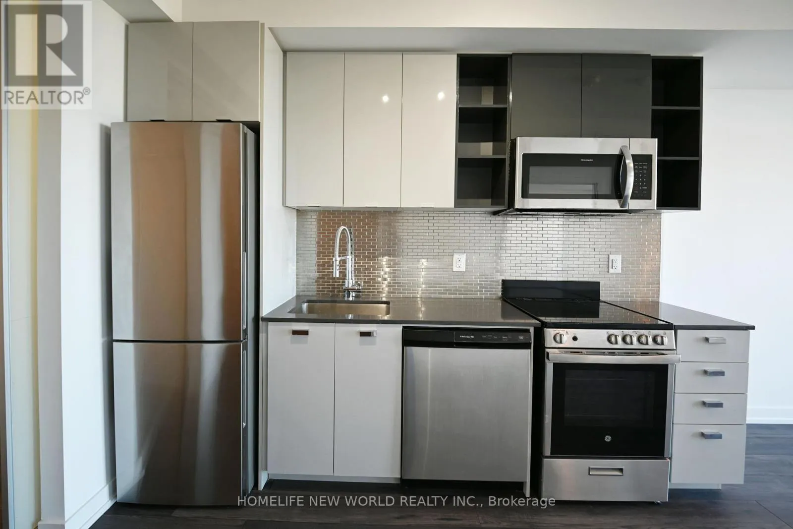 Cross Streets: Sheppard Ave W/Allen Road. ** Directions: North of Sheppard, West of Allen Rd. Luxury condo near Downsview TTC Station. This four year new 2-bed, 2-bath suite at Avro Condos features 9-foot ceilings, laminate flooring, and custom roller blinds. One bathroom includes a tub, while the other has a shower stall. The unit also comes with one parking space and one locker. Enjoy unobstructed east-facing views, including a view of the CN Tower from the balcony. Amenities including 24-hr concierge, gym, party room, rooftop garden, BBQ area, pet-washing station, and secure bicycle storage. Steps to Sheppard West subway station, Downsview GO Station, and easy access to Hwy 400 and Hwy 401. School bus access to SC Dublin Elementary, and walking distance to William Lyon Mackenzie CI and Centennial College. It is only two subway stops to York University and 30 mins to downtown. Nearby shopping options include Yorkdale Mall, Costco, and Walmart. *Internet service is also included in the condo fees. (id:27476)