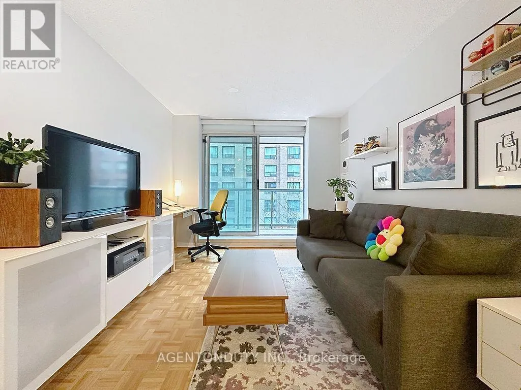 Cross Streets: Jarvis. ** Directions: south of front, east of jarvis. Welcome to Suite 626 at 109 Front St E - a rare opportunity in the heart of downtown Toronto, just steps from the iconic St. Lawrence Market. This extremely well-maintained building offers exceptional urban living in one of the city's most vibrant neighbourhoods. The suite features a highly functional one-bedroom layout with no wasted space, ideal for first-time buyers, professionals, or investors. The open-concept layout maximizes efficiency and flow. A standout feature is the rare open balcony - a true bonus in this building - overlooking a quiet courtyard with beautiful eastern exposure. Enjoy peaceful sunrise views and your own private outdoor retreat, a true oasis in the middle of the city. Unbeatable downtown location with easy access to the DVP and Gardiner Expressway. Walking distance to the Financial District, Harbourfront, Union Station, subway transit, and countless restaurants, cafés, and shops. Everything you need is right at your doorstep. Experience the perfect blend of convenience, comfort, and vibrant city living. Owned parking#P3-69/locker#A43 included! (id:27476)