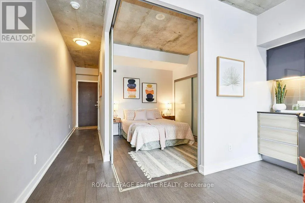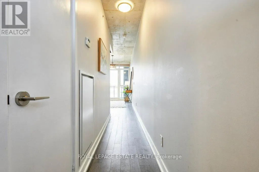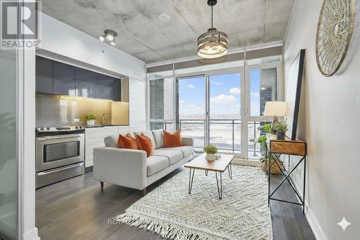 Cross Streets: Dundas & Carlaw. ** Directions: North East Corner. Experience the ultimate Leslieville lifestyle at The Carlaw, an impeccably designed condo-loft where industrial chic meets modern convenience and effortless connectivity. This sun-drenched suite defines sophisticated urban living with 9-foot exposed concrete ceilings, floor-to-ceiling windows, and a sleek kitchen outfitted with quartz countertops and integrated appliances. The layout is thoughtfully balanced by practical essentials, including a dedicated hall closet, a separate laundry cupboard, and a rare private covered balcony with a gas BBQ hookup-perfect for year-round outdoor dining. Beyond the building's excellent 24-hour concierge and stunning rooftop terrace with views of the CN Tower, you are perfectly positioned for a seamless commute with the Queen Streetcar and major transit routes just steps away, linking you to the downtown core in minutes. Whether you are embracing the outdoors for a stroll on Queen St. or visiting local favorites like Withrow Park, everything is at your doorstep-including the iconic Piano Piano (yum!). This is a functional, highly walkable entry point into one of Toronto's most coveted, social, and park-filled neighbourhoods. (id:27476)