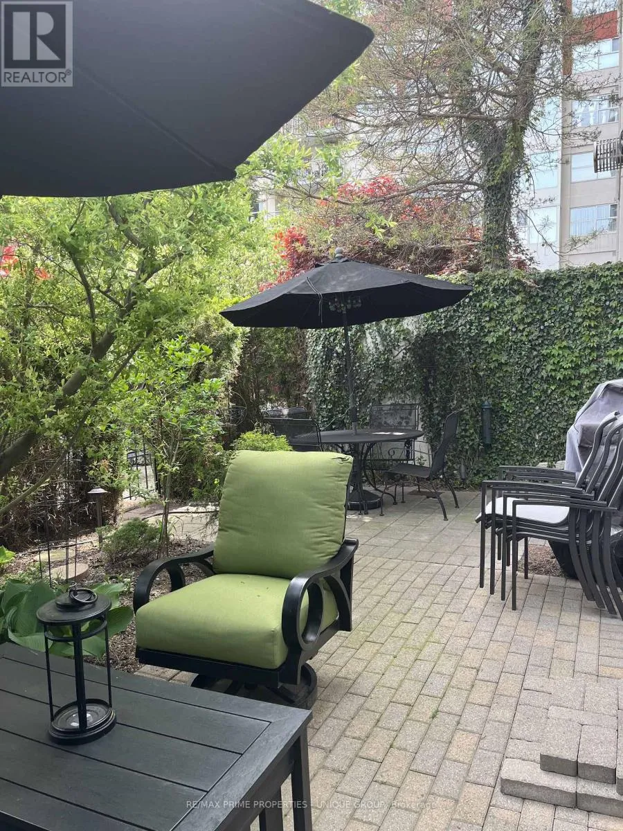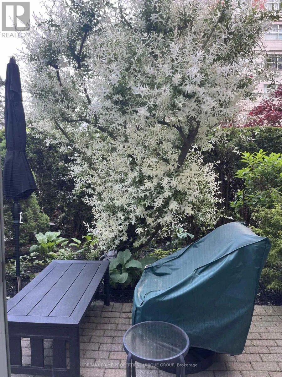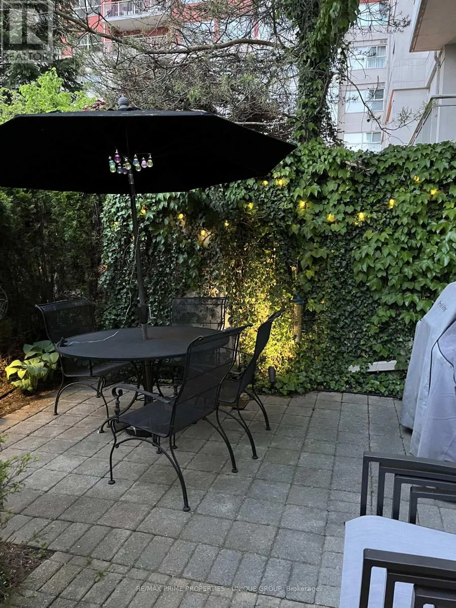 Cross Streets: Wynford/Eglinton/DVP. ** Directions: North of Eglinton/East of DVP. Rarely offered spacious 1 bdrm, 2 bath, approx. 906 SF & generous private patio. Gated building nestled on ravine/protected conservation area offer both an escape and invitation. Few condos offer such unique livability. An entertainer's paradise boasting secluded backyard with substantial private patio, gas BBQ line & personal garden. A true sanctuary and ideal setting for intimate gatherings & lively entertaining. Enjoy summer nights hosting dinners, sunset cocktails, morning coffee or back in the sun. Living rm fireplace adds a warm, relaxing touch for cozy evenings. Well-designed for entertaining with open kitchen connecting seamlessly to liv & din rms. Sunroom currently used as dining rm or use as home office. Floor-to-ceiling windows bring abundant natural light and walk-out leads to serene retreat ~ your own backyard! Garden or lounge on your patio behind the privacy of your trees. Large bdrm fits king bed, has 3 pc enste & 3 closets. Laundry Rm offers x-tra storage, in addition to 3 lockers. Pkg conveniently located on suite level, steps away. No waiting for elevator. Perfect for first time buyers or downsizers looking for comforts of a house. Ste adjacent to landscaped Courtyard & pond. Well-established building cherished for its sense of community and spa like amenities. Residents enjoy whirlpool, indoor salt water pool, gym, billiard and card rms, workshop, fully furnished guest suite. Elegant party room w/full kitchen, wet bar, dance floor, fireplace & terrace. Stunning library filled with excellent assortment of books & videos. Tennis court, car wash bay, dog run and 24 Hr Concierge/Security. Socially active building hosts dinners, parties, BBQs, exercise classes, aqua fit, book club, movie nights and more! Walk to Grocers, Coffee Shops, Aga Khan Centre. Close to Shops at Don Mills, Restaurants, VIP Theatre. LRT Convenient to DVP/401, Hike/Bike. (id:27476)