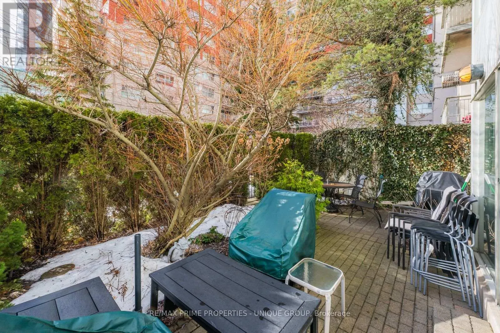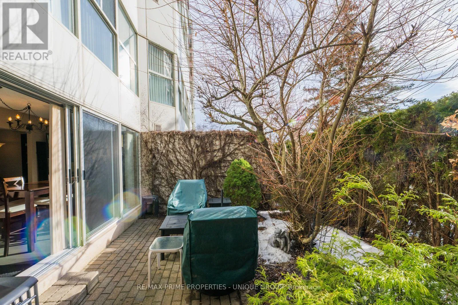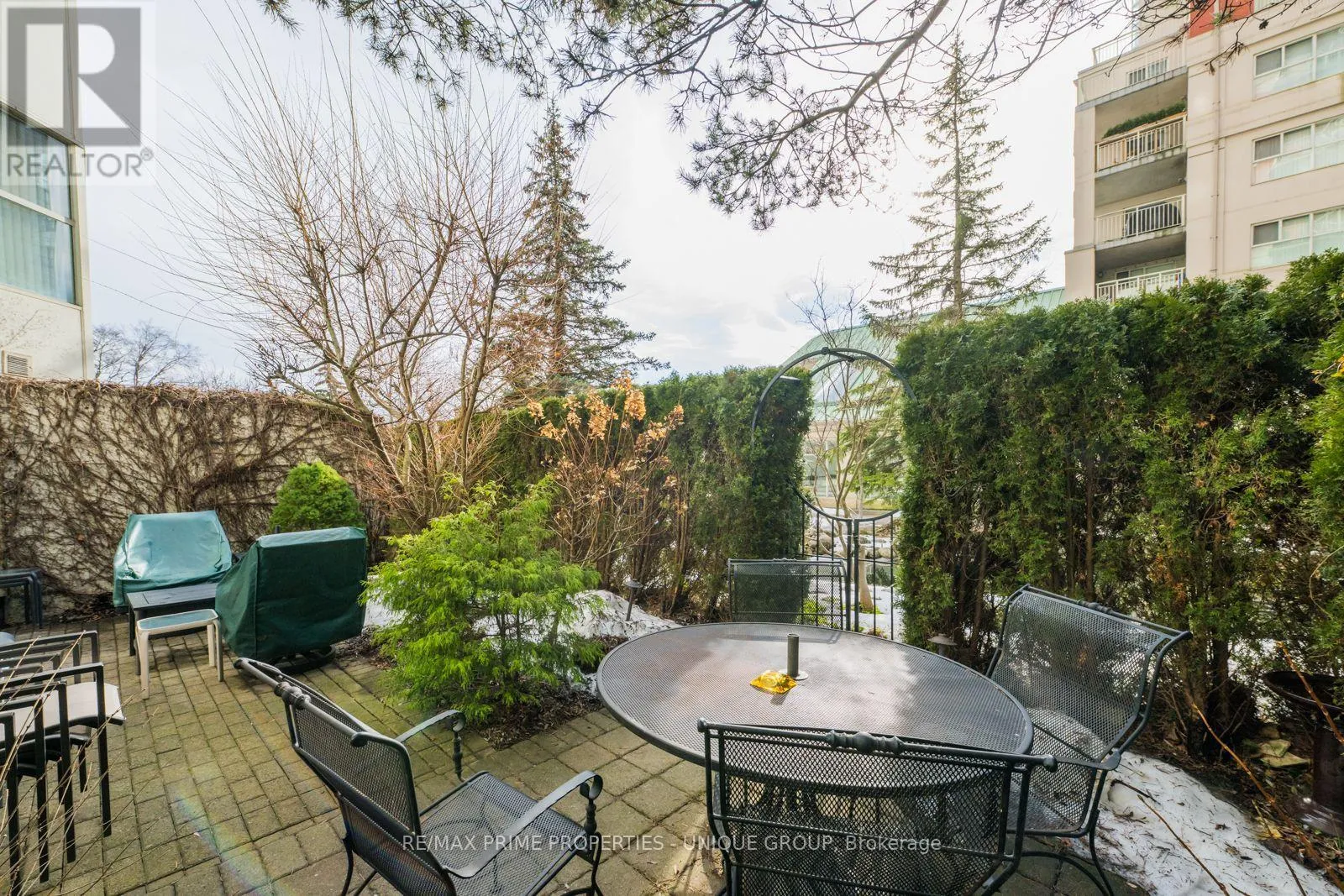 Cross Streets: Wynford/Eglinton/DVP. ** Directions: North of Eglinton/East of DVP. Rarely offered spacious 1 bdrm, 2 bath, approx. 906 SF & generous private patio. Gated building nestled on ravine/protected conservation area offer both an escape and invitation. Few condos offer such unique livability. An entertainer's paradise boasting secluded backyard with substantial private patio, gas BBQ line & personal garden. A true sanctuary and ideal setting for intimate gatherings & lively entertaining. Enjoy summer nights hosting dinners, sunset cocktails, morning coffee or back in the sun. Living rm fireplace adds a warm, relaxing touch for cozy evenings. Well-designed for entertaining with open kitchen connecting seamlessly to liv & din rms. Sunroom currently used as dining rm or use as home office. Floor-to-ceiling windows bring abundant natural light and walk-out leads to serene retreat ~ your own backyard! Garden or lounge on your patio behind the privacy of your trees. Large bdrm fits king bed, has 3 pc enste & 3 closets. Laundry Rm offers x-tra storage, in addition to 3 lockers. Pkg conveniently located on suite level, steps away. No waiting for elevator. Perfect for first time buyers or downsizers looking for comforts of a house. Ste adjacent to landscaped Courtyard & pond. Well-established building cherished for its sense of community and spa like amenities. Residents enjoy whirlpool, indoor salt water pool, gym, billiard and card rms, workshop, fully furnished guest suite. Elegant party room w/full kitchen, wet bar, dance floor, fireplace & terrace. Stunning library filled with excellent assortment of books & videos. Tennis court, car wash bay, dog run and 24 Hr Concierge/Security. Socially active building hosts dinners, parties, BBQs, exercise classes, aqua fit, book club, movie nights and more! Walk to Grocers, Coffee Shops, Aga Khan Centre. Close to Shops at Don Mills, Restaurants, VIP Theatre. LRT Convenient to DVP/401, Hike/Bike. (id:27476)