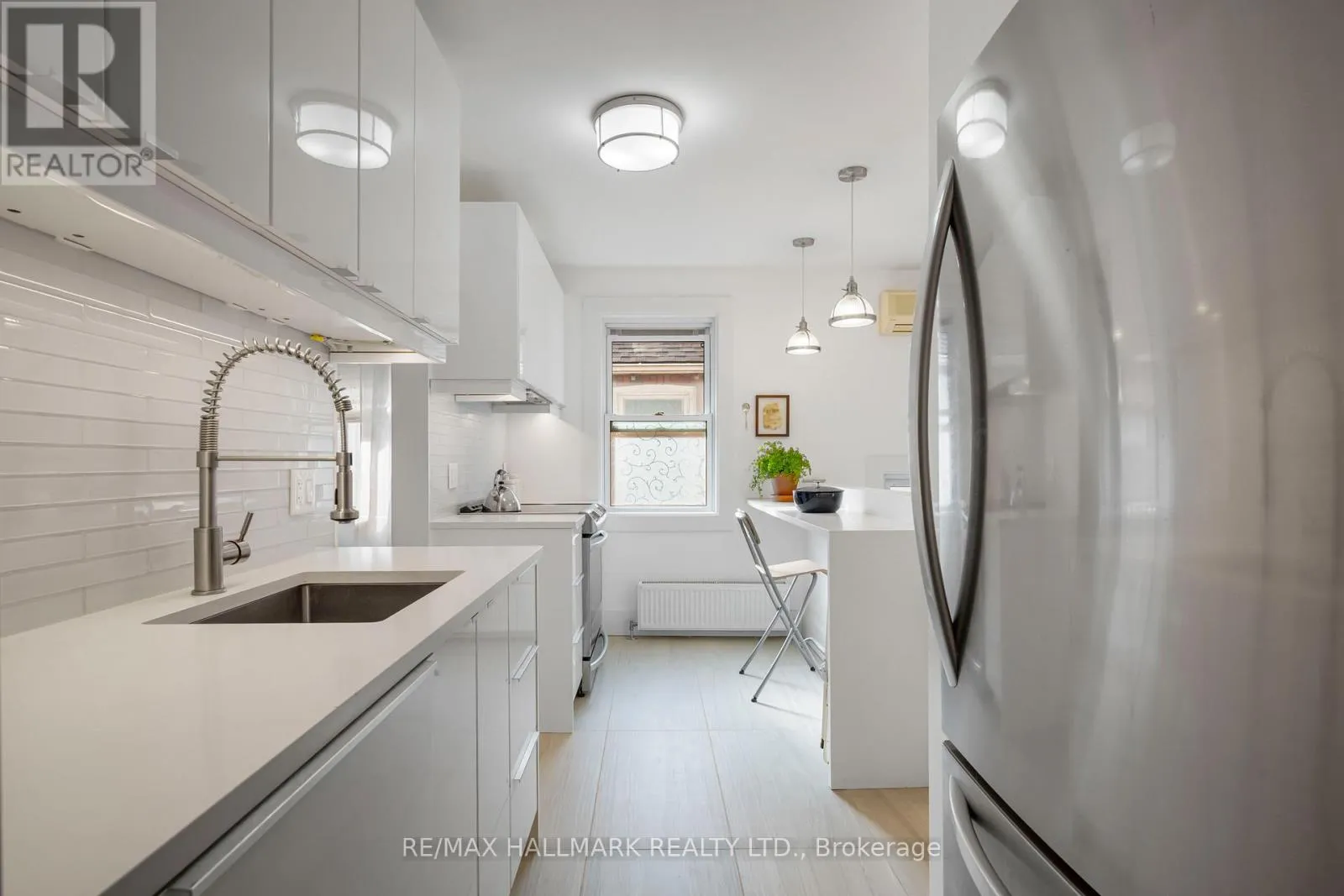 Cross Streets: Queen St E & Glen Manor Dr. ** Directions: Steps from Hubbard and boardwalk. Co-ownership - a great opportunity to live in a prime Beach(es) location south of Queen Street! This bright and spacious two bedroom upper level unit is in an incredible location, just steps from the boardwalk and water. It's approximately 1,000 square feet and beautifully updated. Features include a custom kitchen and breakfast bar, stainless steel appliances, hardwood floors throughout, large living areas and generous sized bedrooms. A lovely gas fireplace in the living room is ideal for those cozy evenings, and there's a walkout to a private 94 sq ft. front balcony for warm and gentle summer breezes to go along with great view of the water, beach and boardwalk. Heated floor in bathroom. The backyard is a shared common space with the lower unit. Street Permit Parking Is Available. The unit also comes with a large storage area in the basment. Each unit has a separate hydro meter. (id:27476)