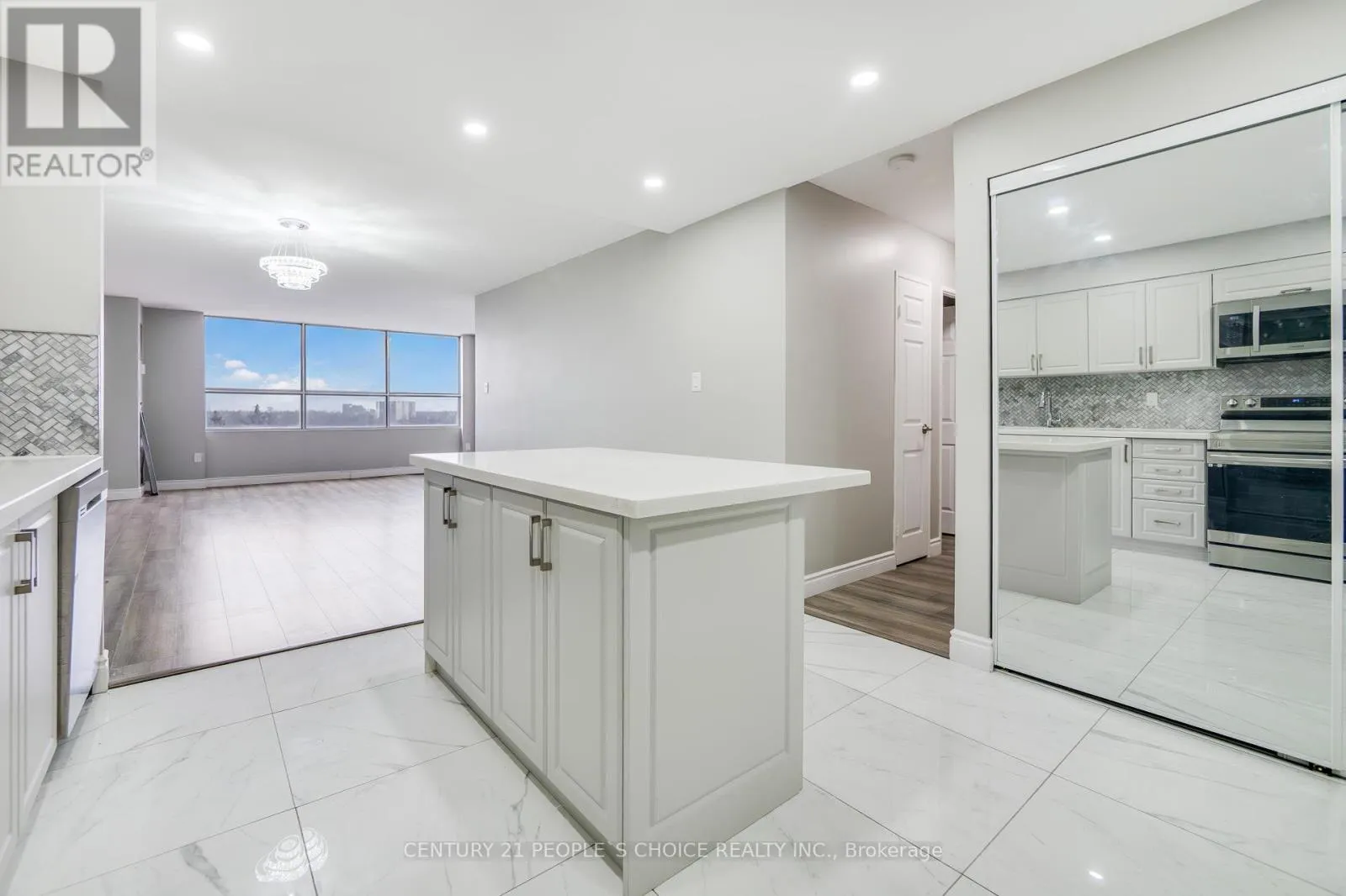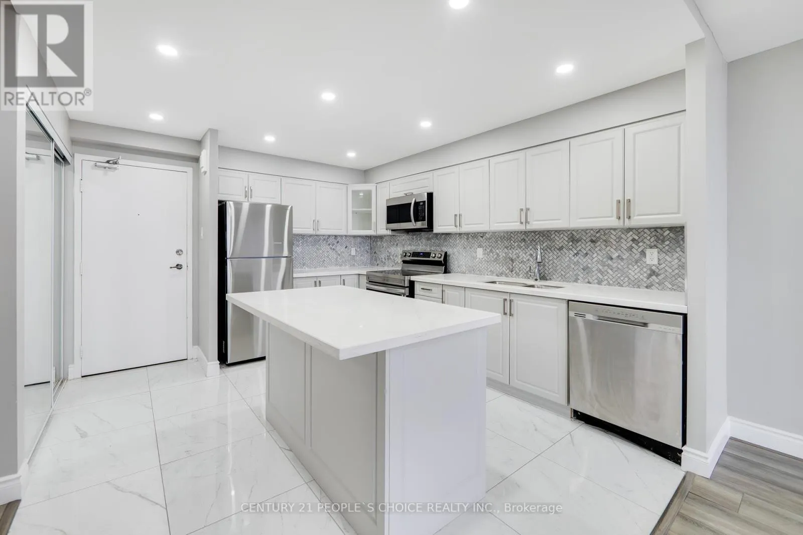 Cross Streets: Kipling & Finch. ** Directions: From Finch Ave turn right onto Kipling Ave, turn left onto Panorama Court. Beautifully upgraded and spacious 2 bedroom, 1 bathroom condo in a prime location in Etobicoke. Featuring a modern open-concept layout, this bright and functional unit offers a combined living and dining area with walkout to a large open balcony, perfect for relaxing or entertaining. The contemporary kitchen offers quartz countertops, a large center island, stylish backsplash and pot lights. Generous sized bedrooms with laminate flooring throughout the unit. The primary bedroom includes a walk in closet. Enjoy the convenience of an ensuite laundry and the rare inclusion of two parking spaces. Excellent top tier building amenities included are a gym, games room, indoor pool, and two party rooms. Conveniently located close to transit, New Finch LRT, major highways, shopping, schools, and everyday essentials, making it an ideal choice for first-time buyers, downsizers, or investors. (id:27476)