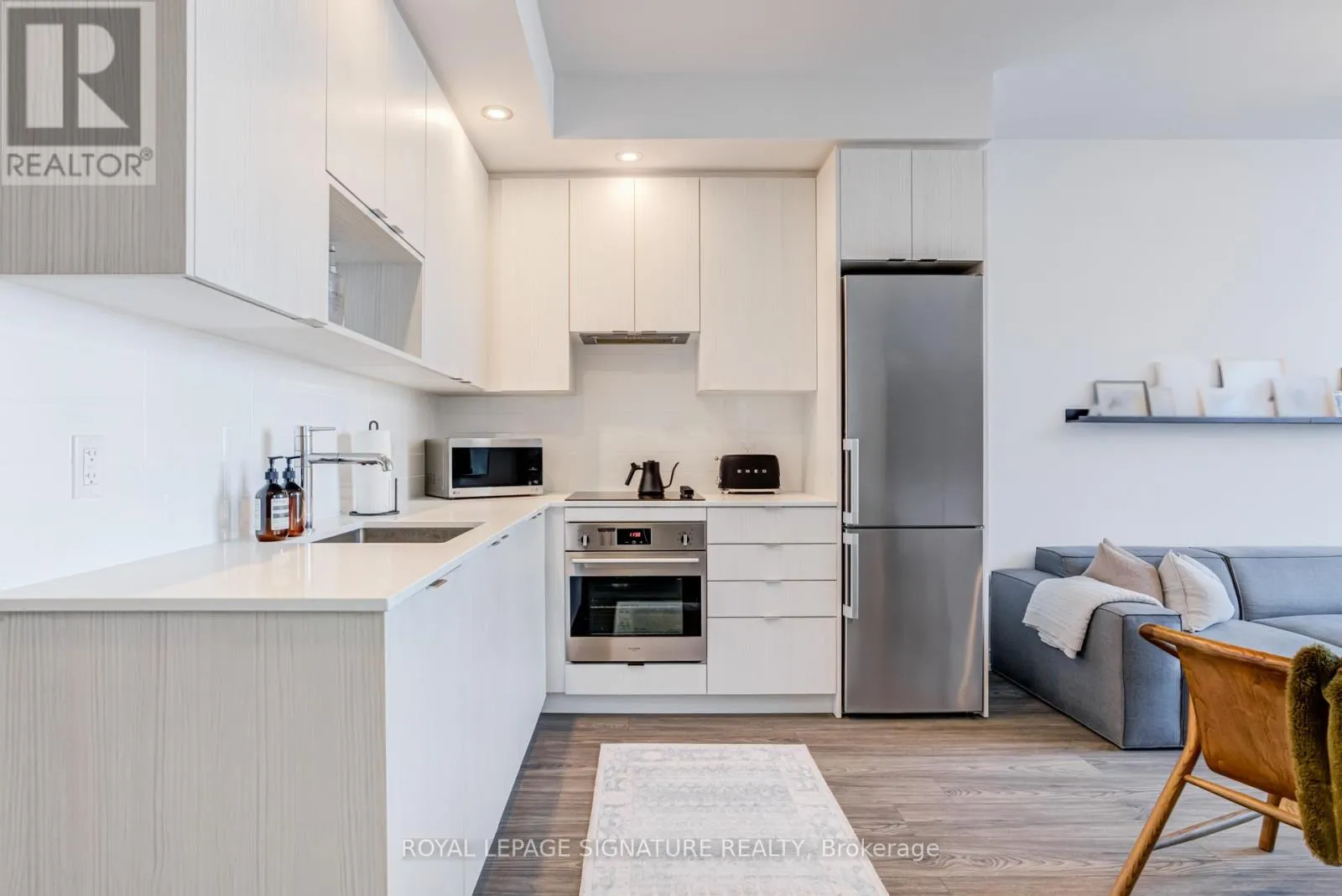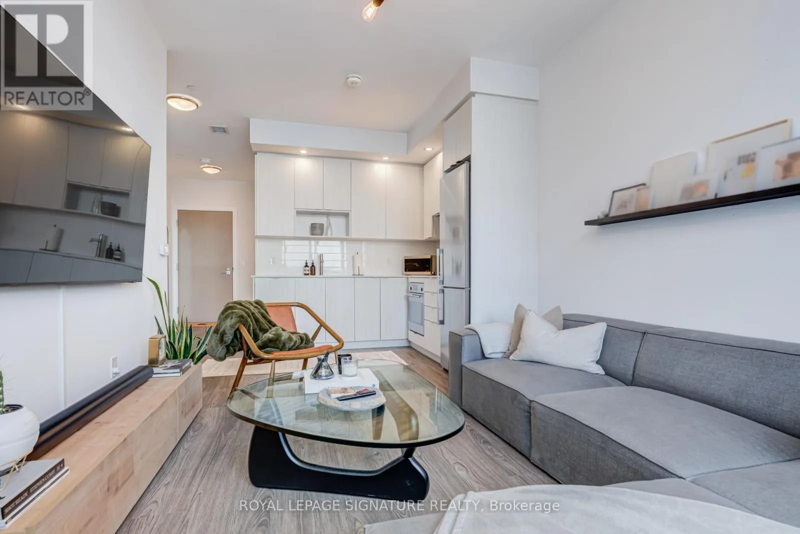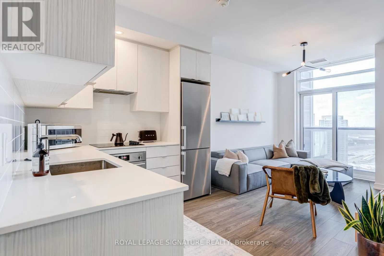 Kennedy Rd/Hwy 401 Bright penthouse unit with 9 ft ceilings and a smart, open-concept layout. Floor-to-ceiling windows bring in tons of natural light and open to a Juliette balcony for fresh air and city views. Modern kitchen with integrated appliances and quartz countertops, comfortable bedroom, and a sleek bathroom. Includes a prime parking spot with a column on one side and no adjacent vehicle on the other, offering extra space and easy access. Well-managed building with great amenities, steps to TTC, parks, shopping, and quick access to the 401. Effortless, low-maintenance living in a prime location. (id:27476)