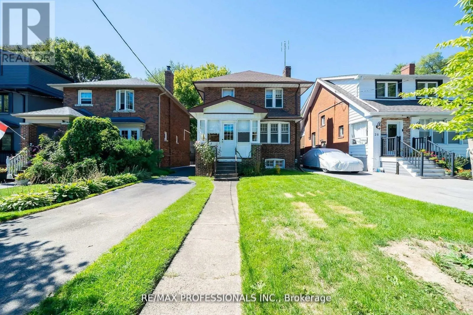 Cross Streets: Lakeshore Blvd W/Royal York Rd. ** Directions: Lakeshore Blvd W/Royal York. Opportunity knocks at 24 Queens Ave - a 4 Bedroom home in Old Mimico with a ton of Character and Charm. This Detached, 2-storey, solid brick home sits on an incredible 34 x 134 foot lot, features a 4+ car private driveway and is located directly across the street from Vimy Ridge Parkette and War Memorial (a protected and Historic site), and steps to The Lakeshore with close access to Lake Ontario. The home features original hardwood flooring throughout, 4 great size upper-level bedrooms, elegant dining and living room with original solid-oak wainscoting, staircase, trim and french doors! - ready for your to restore this original elegant charm! The home also features an enclosed front porch, separate/side door entrance with access to large/full unfinished basement- potential for creating a separate apartment/additional living space. *Updated/newer roof* Well maintained home- been in the same family for over 75 years! The large backyard has a ton of potential- create your own oasis or potential to construct a large garage/ garden suite or both! Opportunities are endless. Old Mimico- one of Toronto's most historic communities. Steps to TTC transit/ close to Mimico GO Station and nearby schools and parks. Quick access to Gardiner/QEW. Walk along the Lakeshore with all of the amenities you need - shops, eateries and much more. Take the virtual tour! (some photos virtually staged) (id:27476)