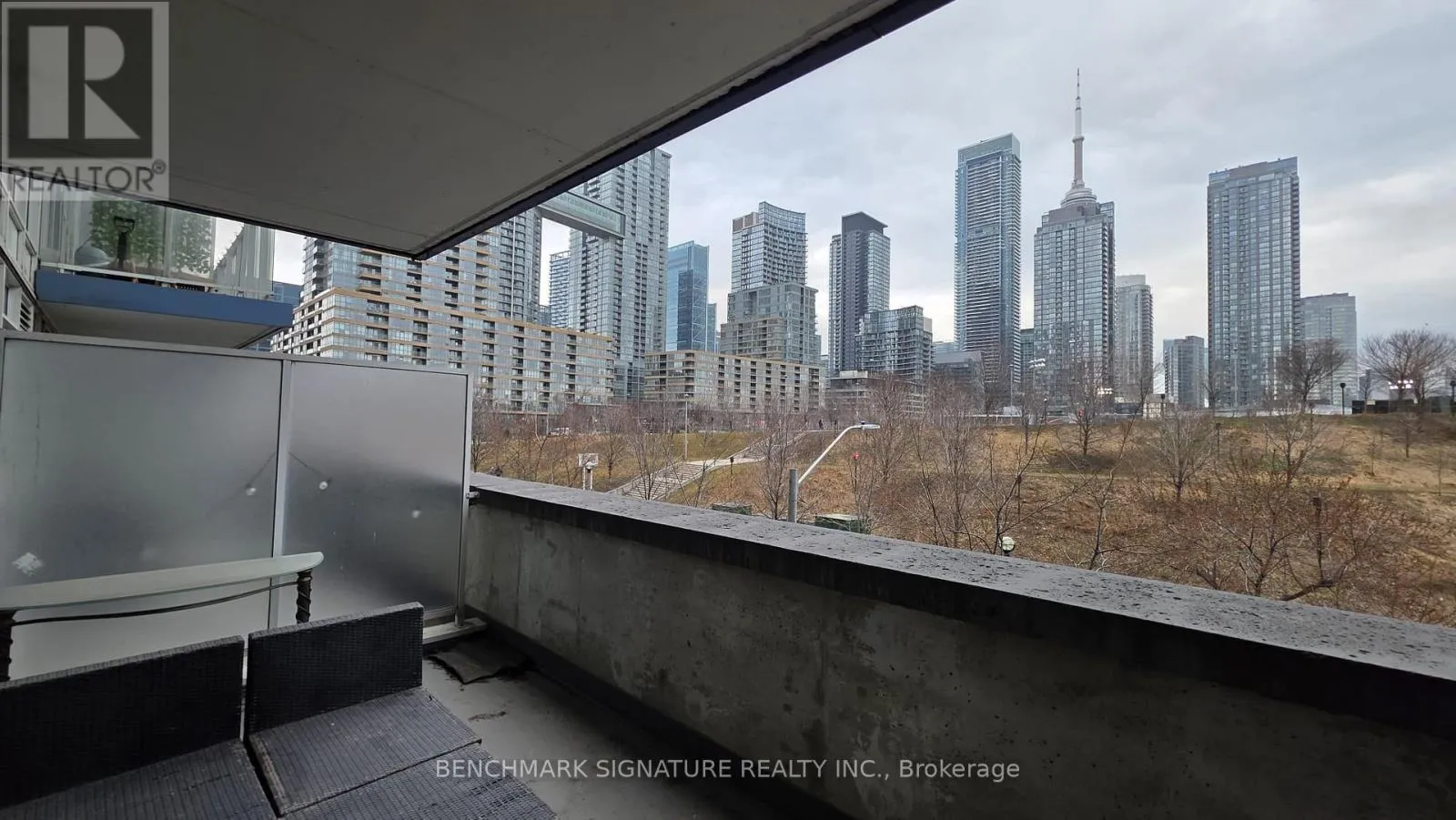 Cross Streets: Lakeshore Blvd W/Dan Leckie Way. ** Directions: North of Lakeshore/ West of Dan Leckie. Freshly Updated & Move-In Ready. Unit 205 at 75 Queens Wharf is a spacious 1-bedroom plus den suite that avoids the typical "condo-sized" compromises. Recently refreshed with brand-new flooring and a professional coat of paint, this unit offers a clean, modern aesthetic from the moment you walk in. The expansive interior features a dedicated den-ideal for a proper home office-and a large primary bedroom. One of the standout features is the oversized private terrace facing East, offering a peaceful green view over Canoe Landing Park. Positioned on the 2nd floor, it's a practical choice for those who value quick access to the outdoors and want to avoid the wait for high-rise elevators. Residents enjoy full access to the premium Prisma Club amenities, including a full gym, indoor pool, and basketball court. Enjoy effortless travel with Billy Bishop Airport just minutes away. Steps to Loblaws/LCBO, park, the Waterfront, and the world-class shopping and dining at The Well. (id:27476)